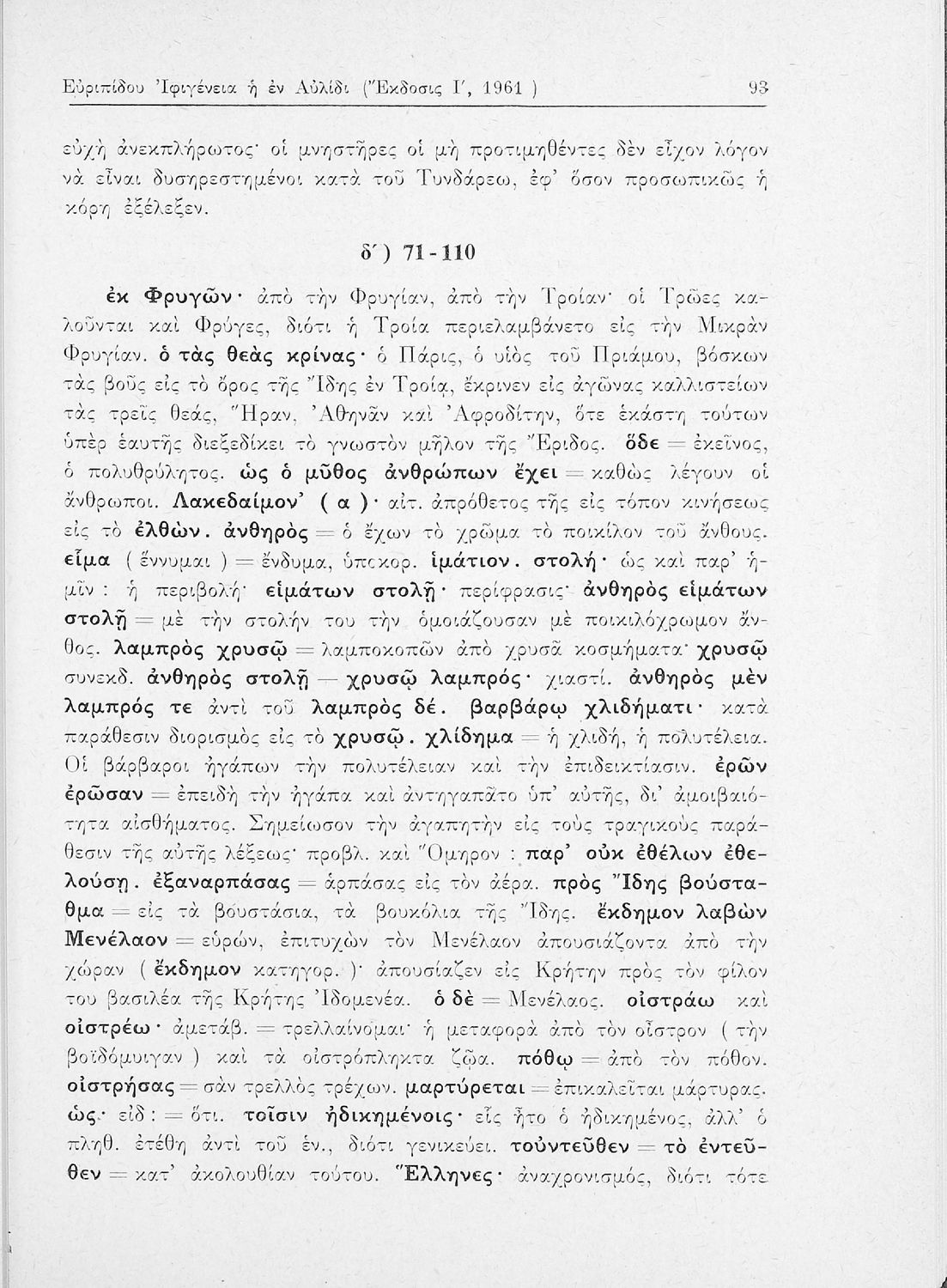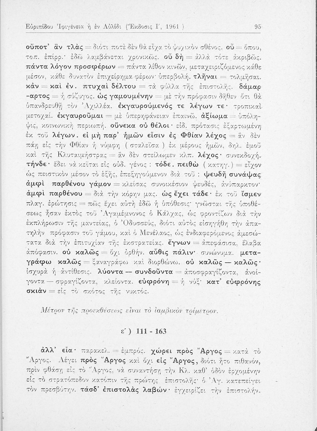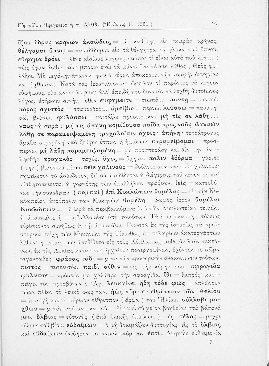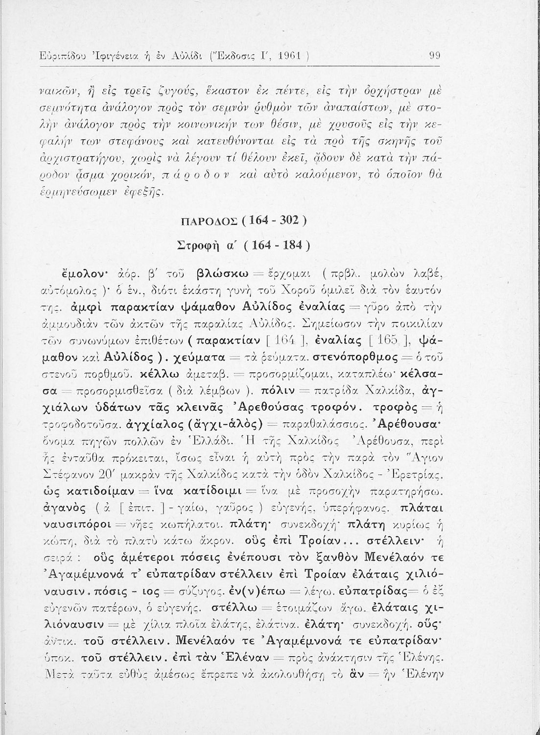 Μαθητικό βοήθημα Αρχαίων Ελληνικών για την Ε' Γυμνασίου που περιλαμβάνει μετάφραση, ερμηνευτικά, γραμματικά και συντακτικά σχόλια στην Ιφιγένεια η εν Αυλίδι.