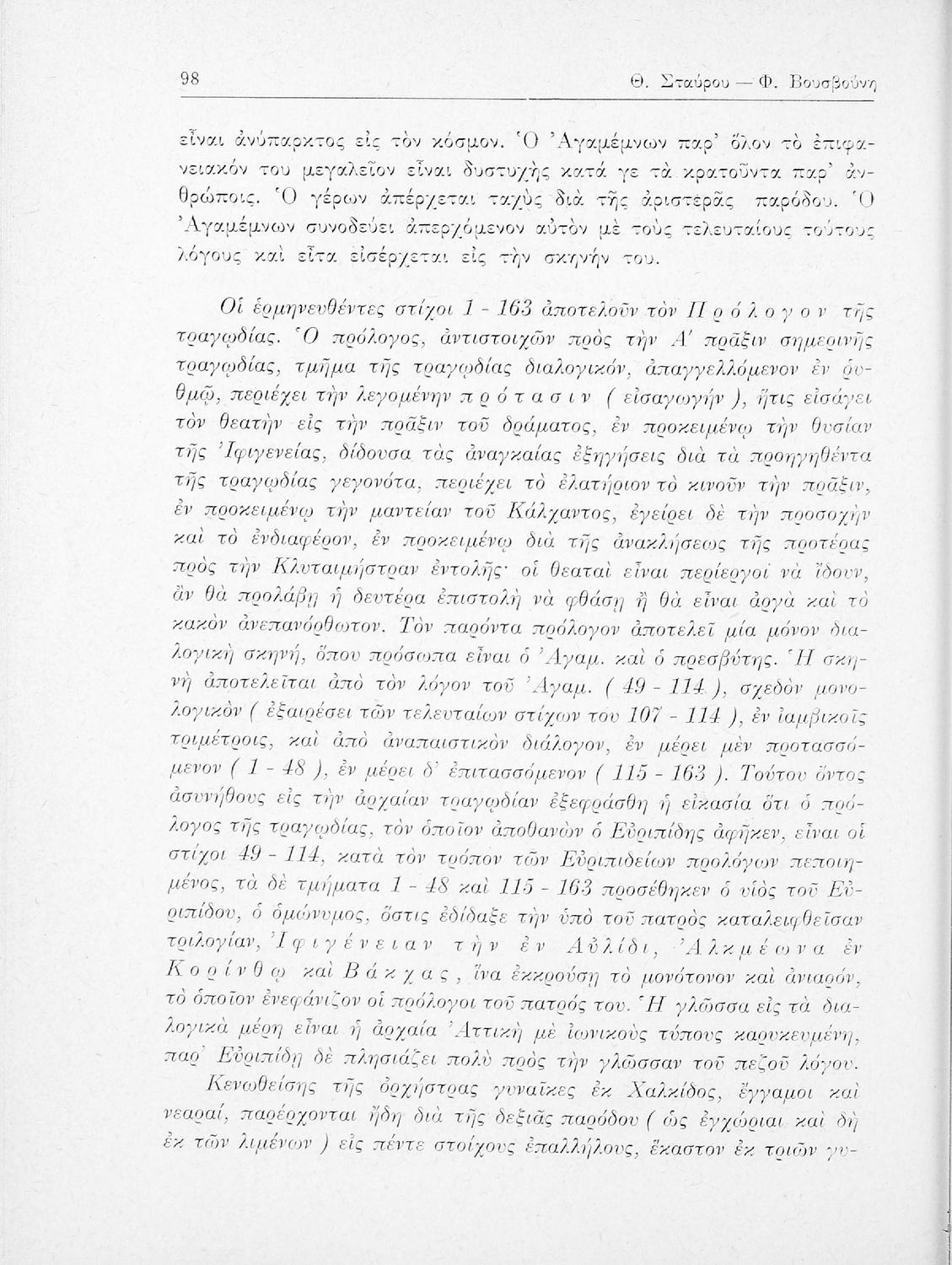 Ευριπίδης, Θ. Σταύρου, Φ Βουσβούνης (σχόλια)