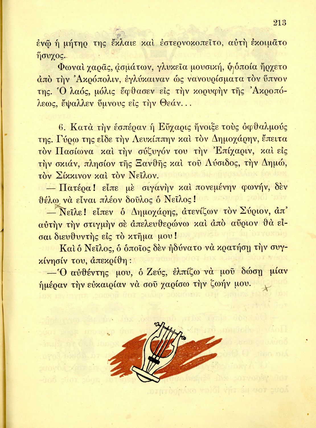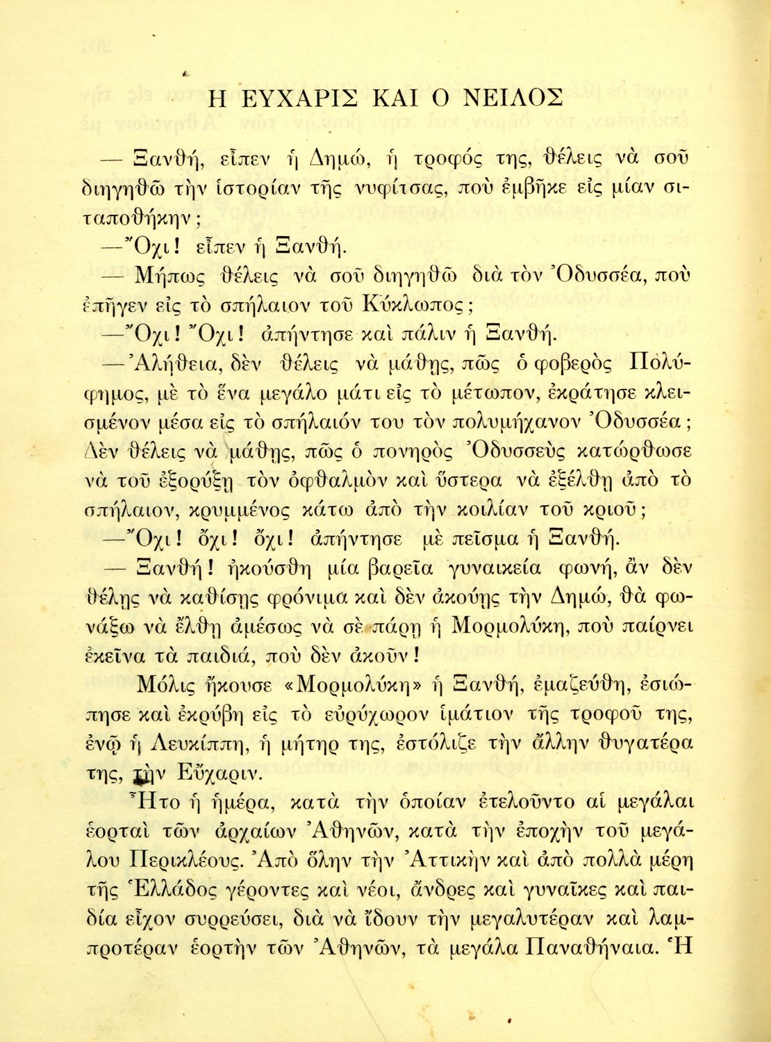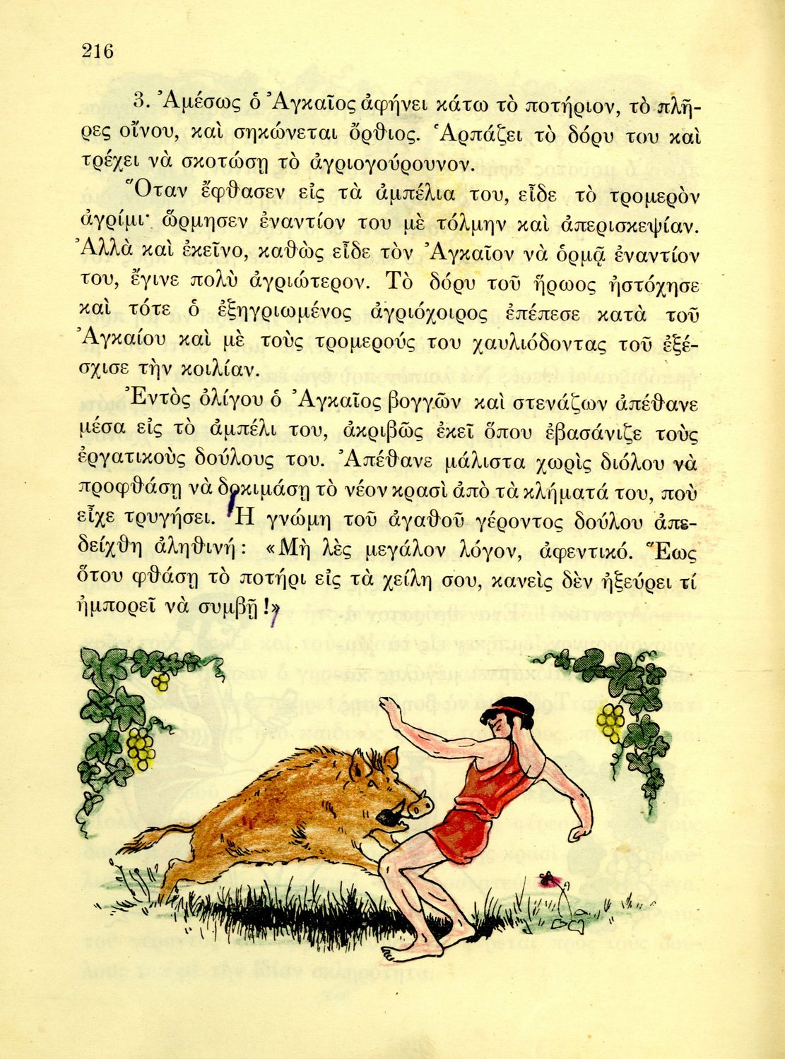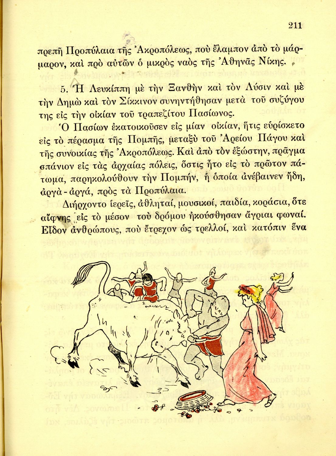 Αναγνωστικό Δ΄ Δημοτικού που περιέχει πεζά και ποιήματα εμπνευσμένα από την ελληνική ιστορία και μυθολογία, την κοινωνική ζωή και την ελληνική φύση.