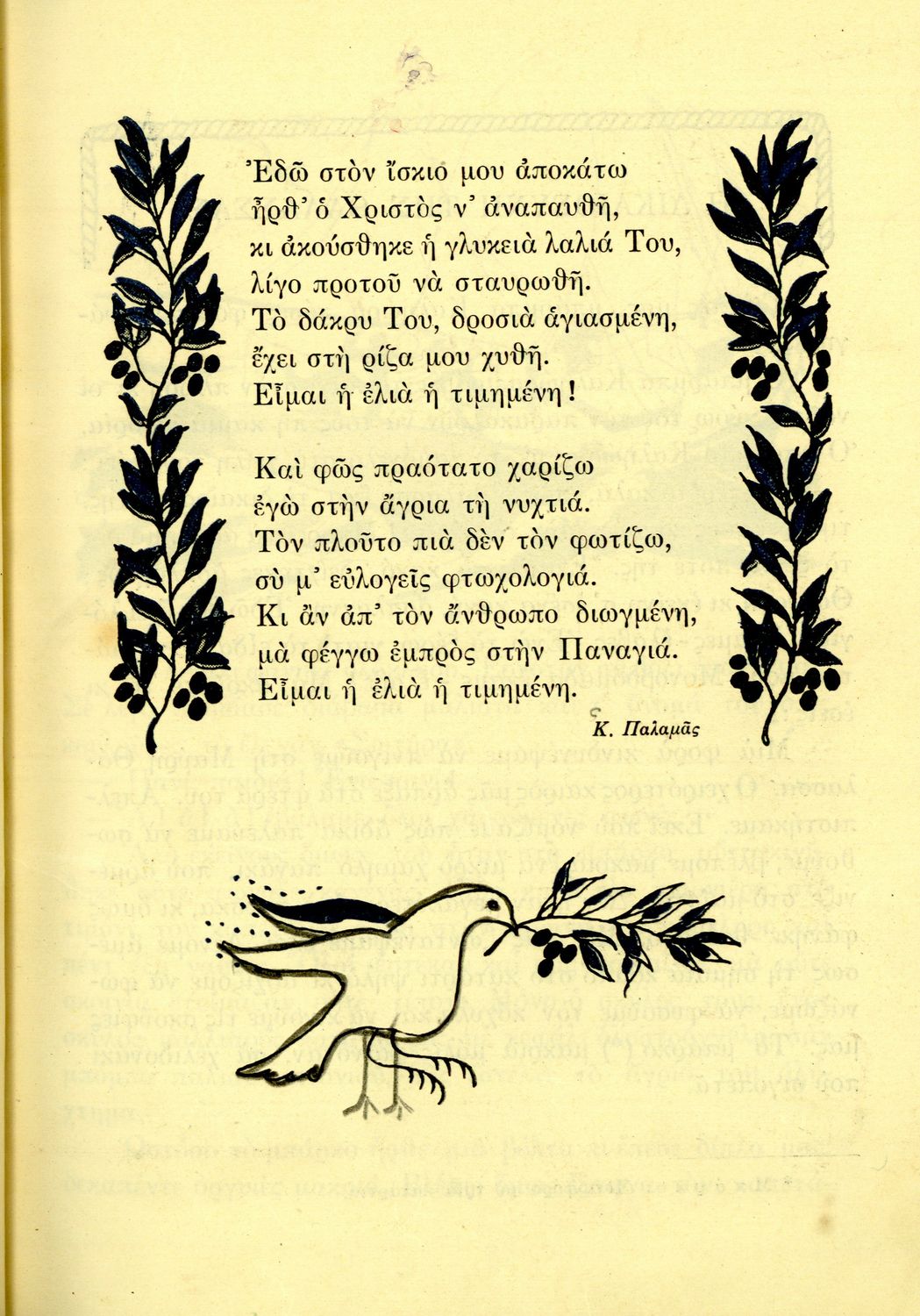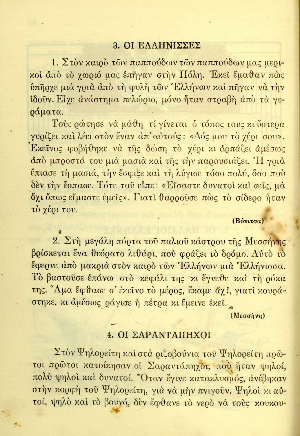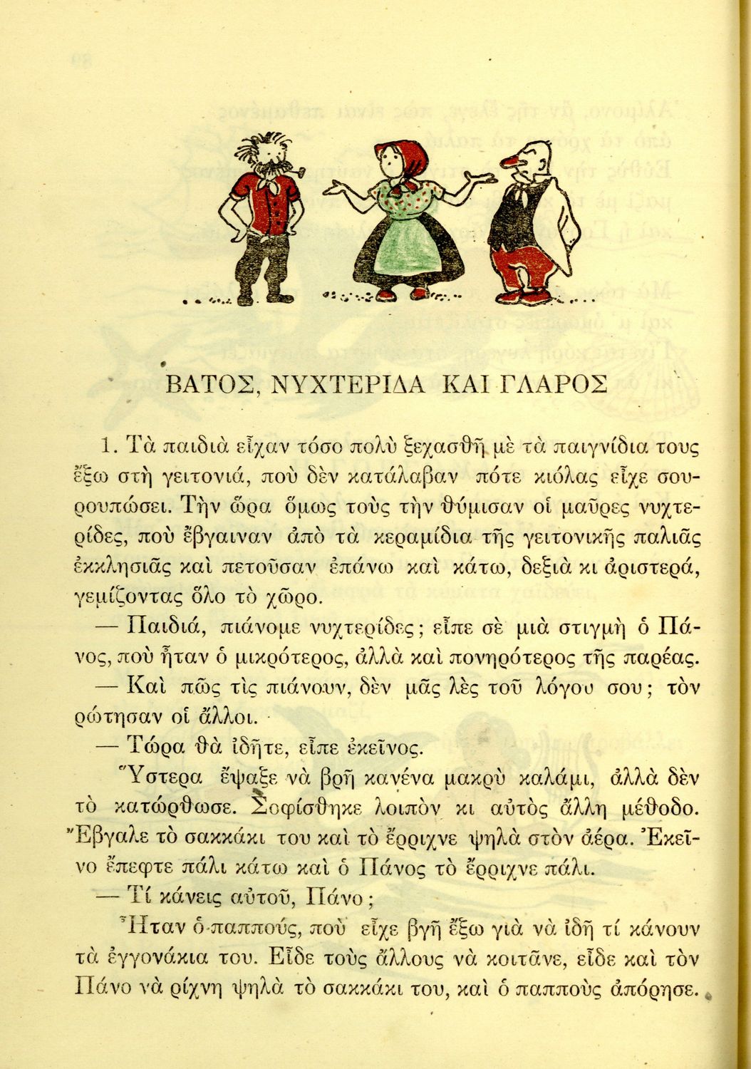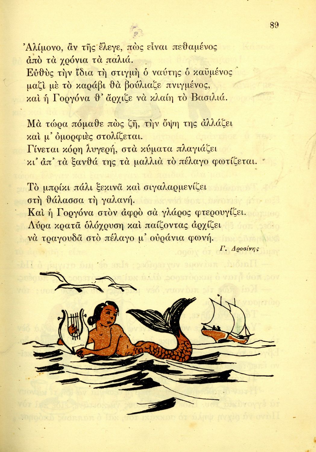 Αναγνωστικό Δ΄ Δημοτικού που περιέχει πεζά και ποιήματα εμπνευσμένα από την ελληνική ιστορία και μυθολογία, την κοινωνική ζωή και την ελληνική φύση.