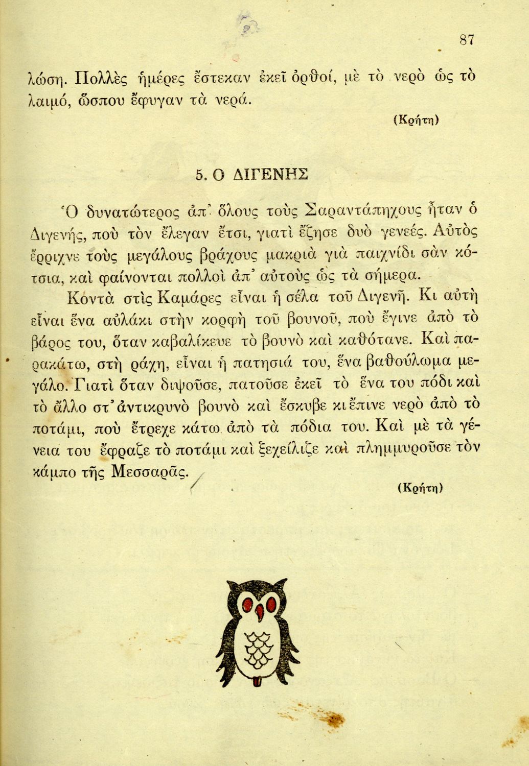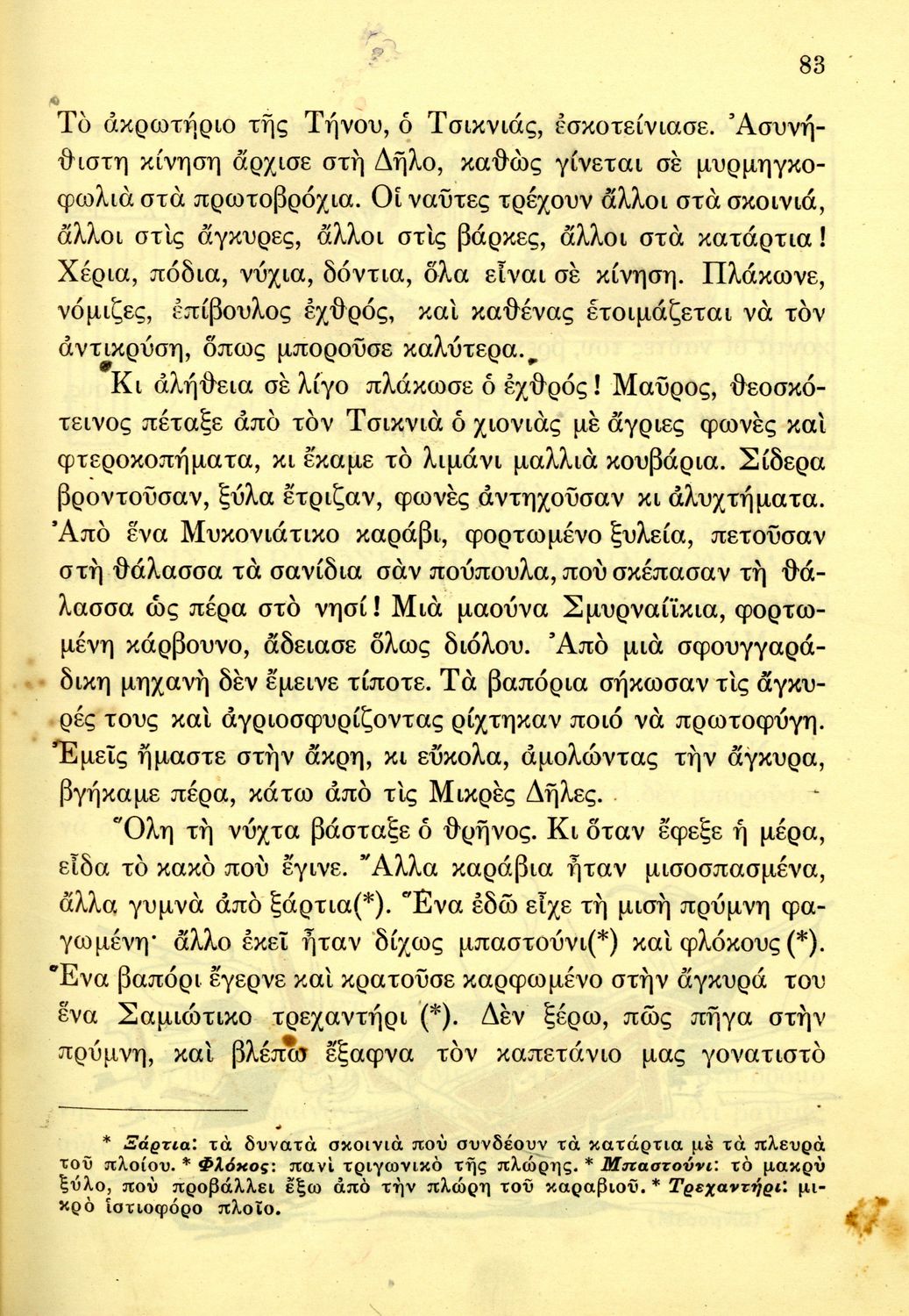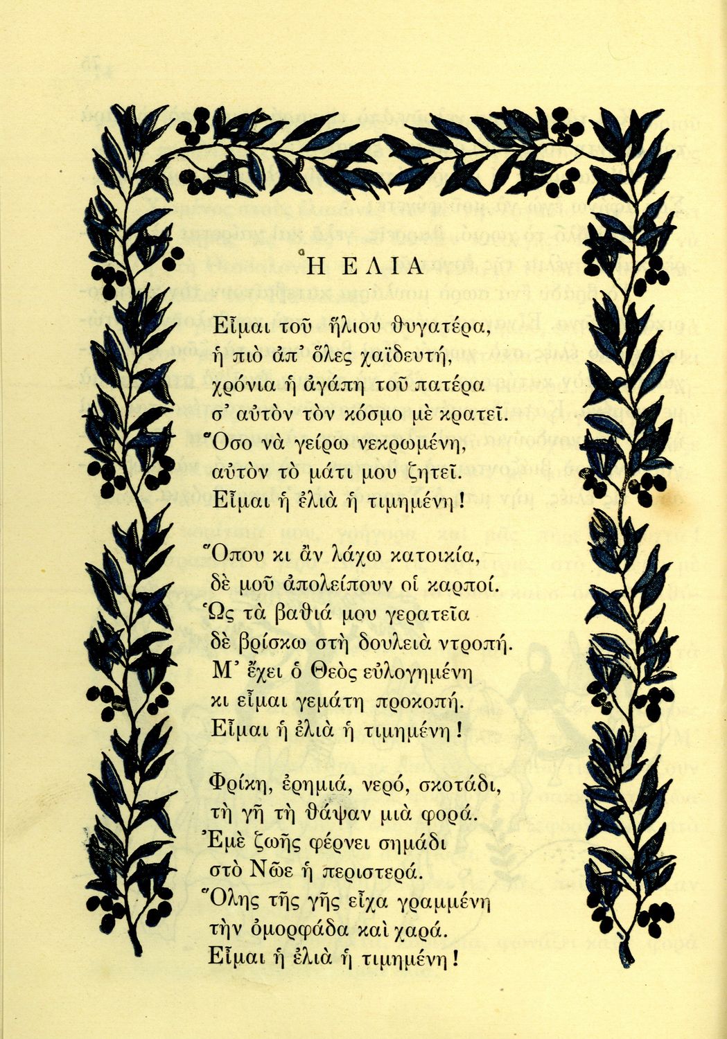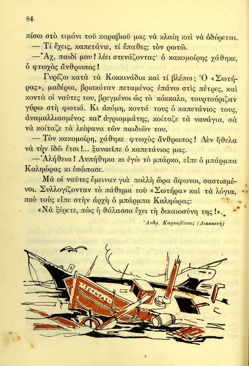 Αναγνωστικό Δ΄ Δημοτικού που περιέχει πεζά και ποιήματα εμπνευσμένα από την ελληνική ιστορία και μυθολογία, την κοινωνική ζωή και την ελληνική φύση.