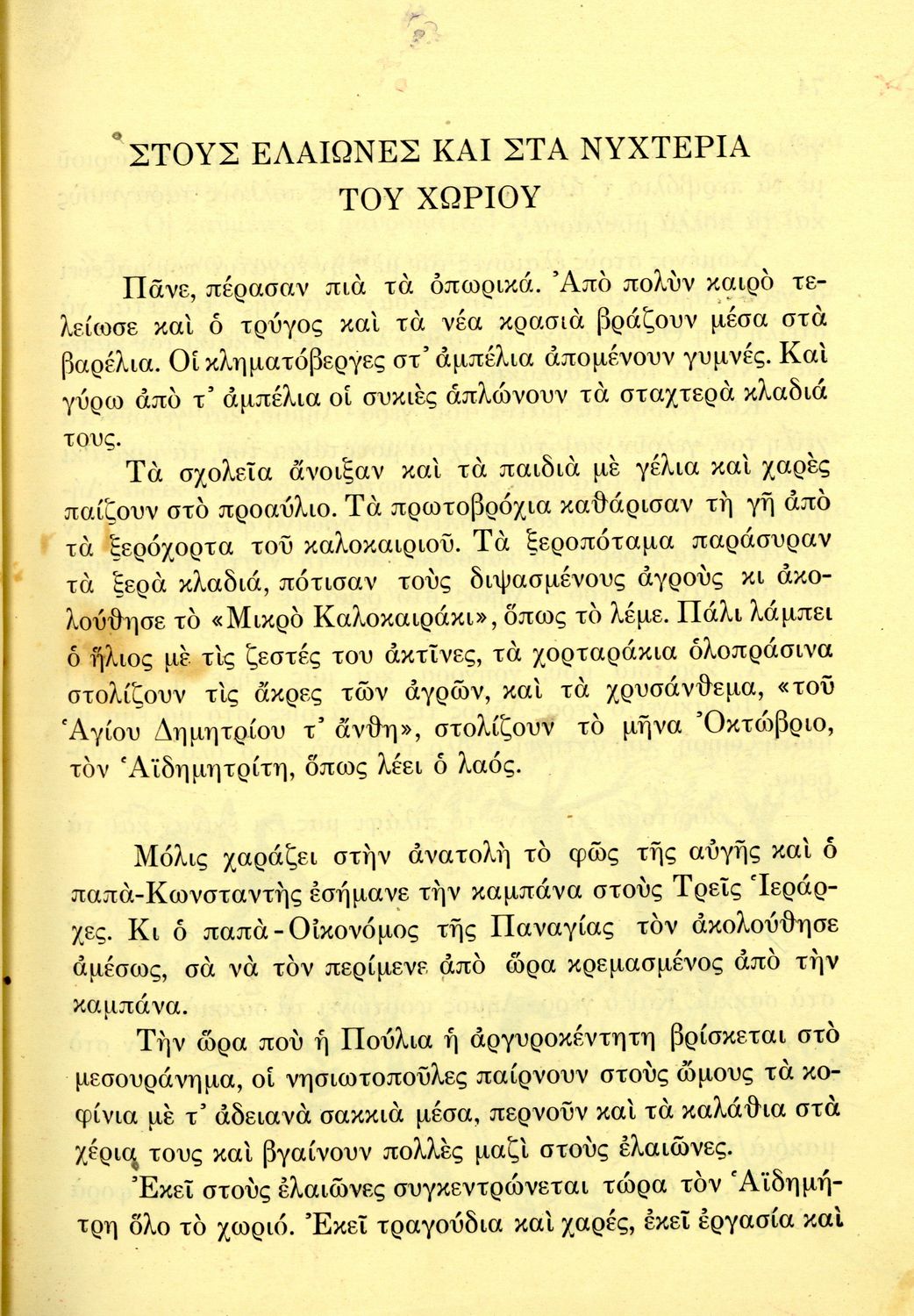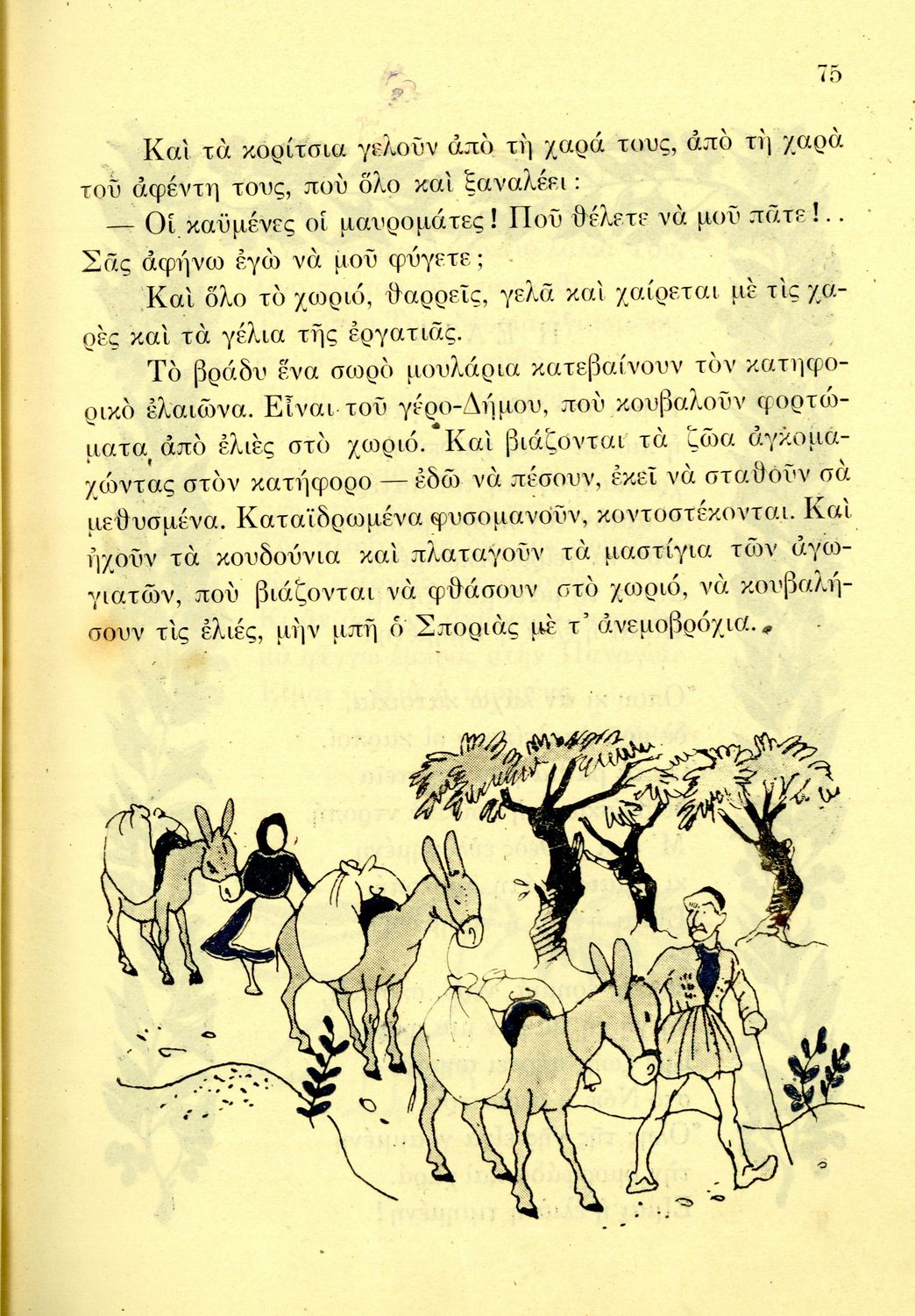 Αναγνωστικό Δ' Δημοτικού που περιλαμβάνει πεζά και ποιήματα Ελλήνων λογοτεχνών εμπνευσμένα από την ζωή στην ύπαιθρο, τις θρησκευτικές και εθνικές γιορτές και την οικογενειακή ζωή.