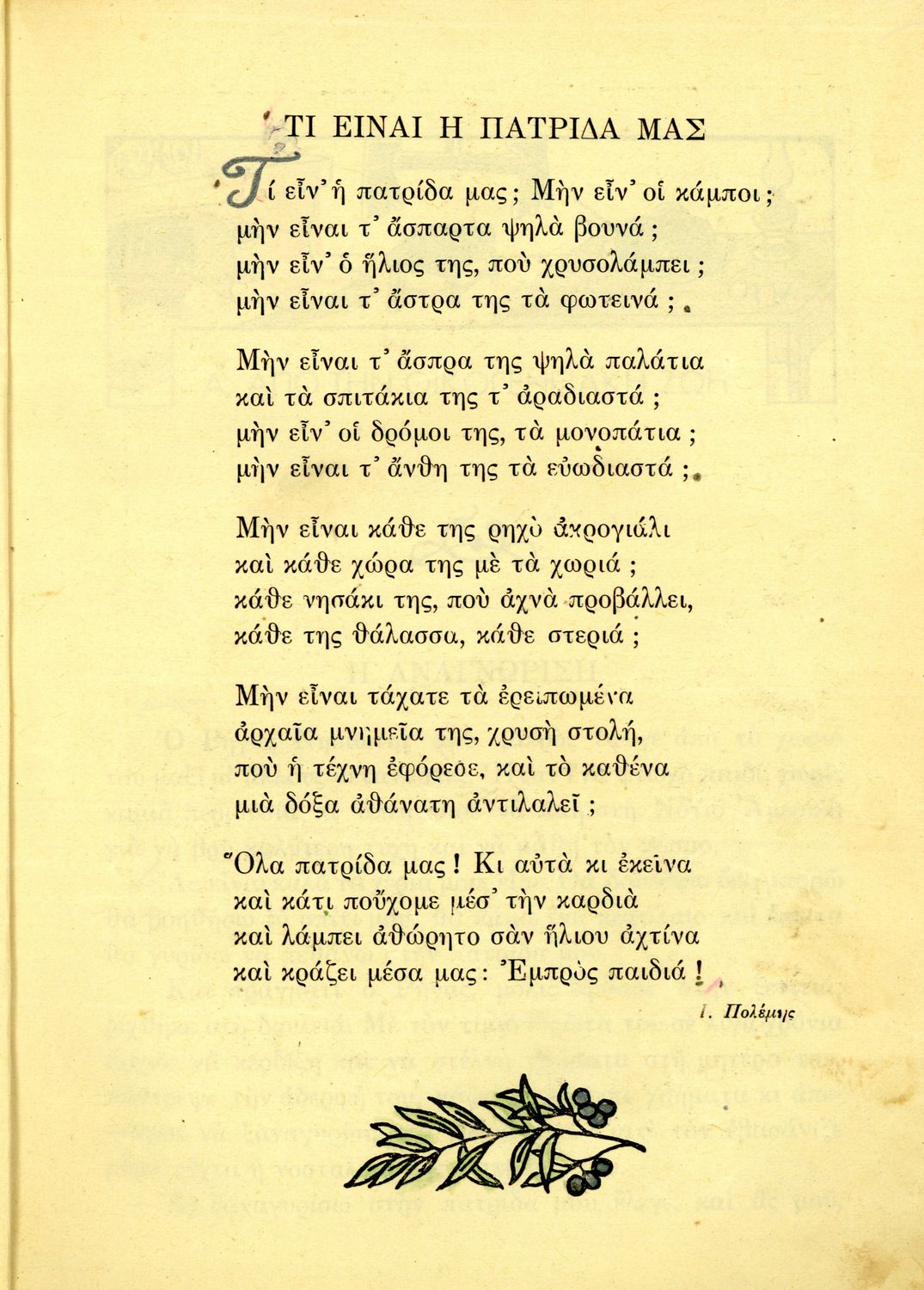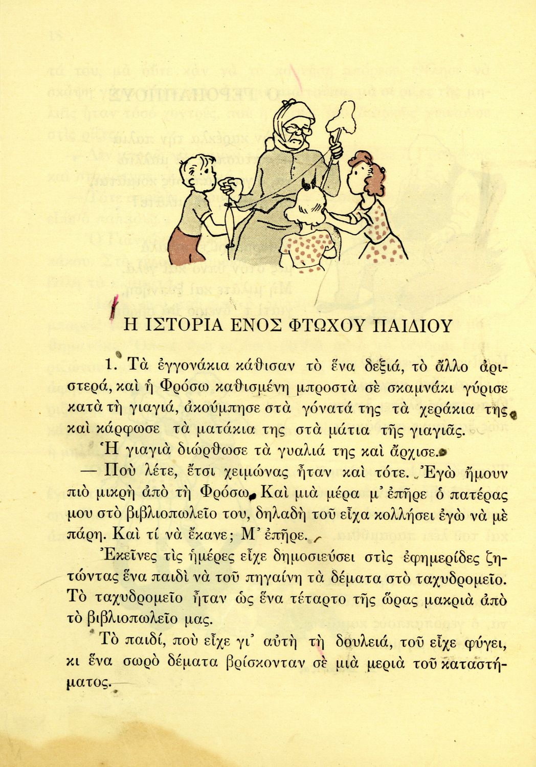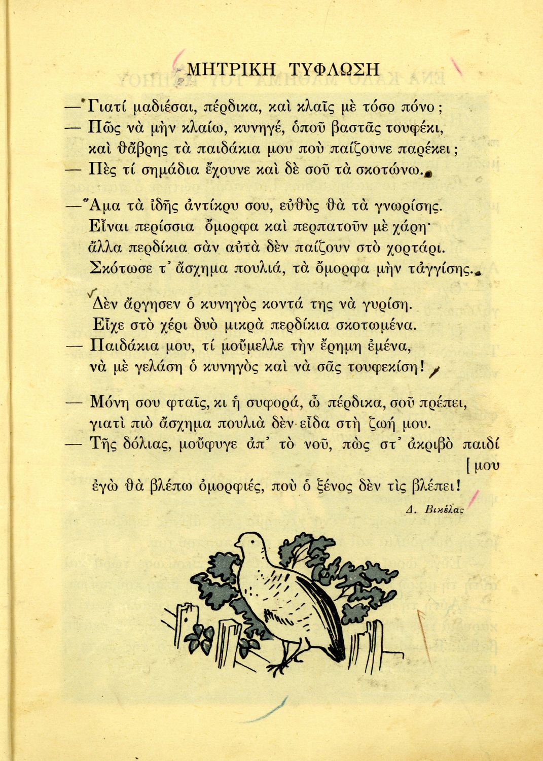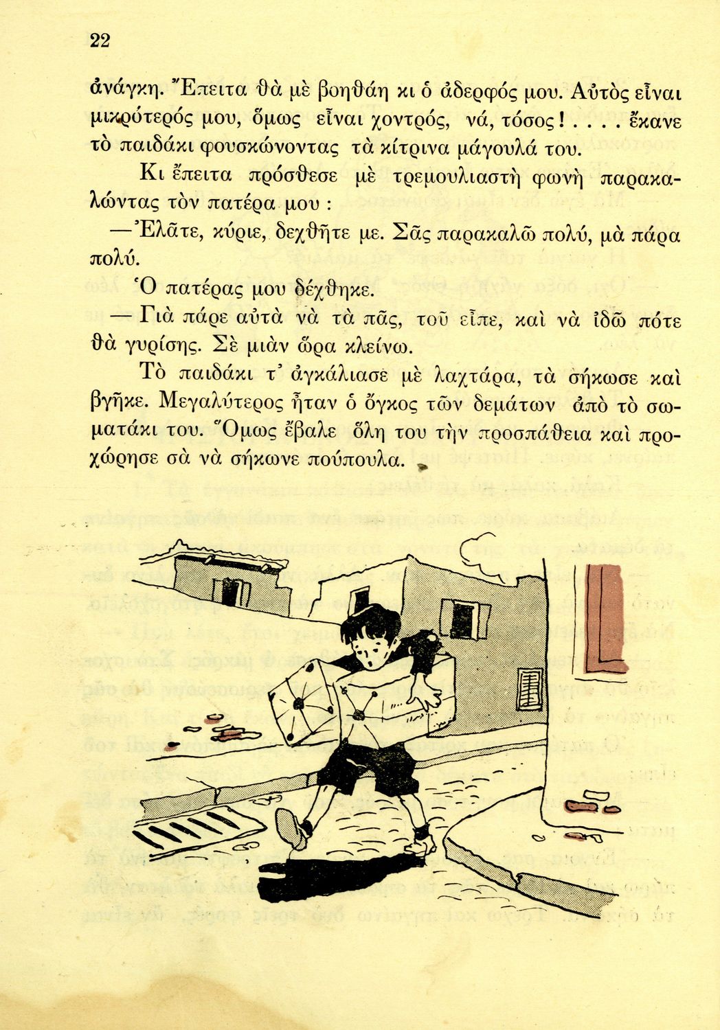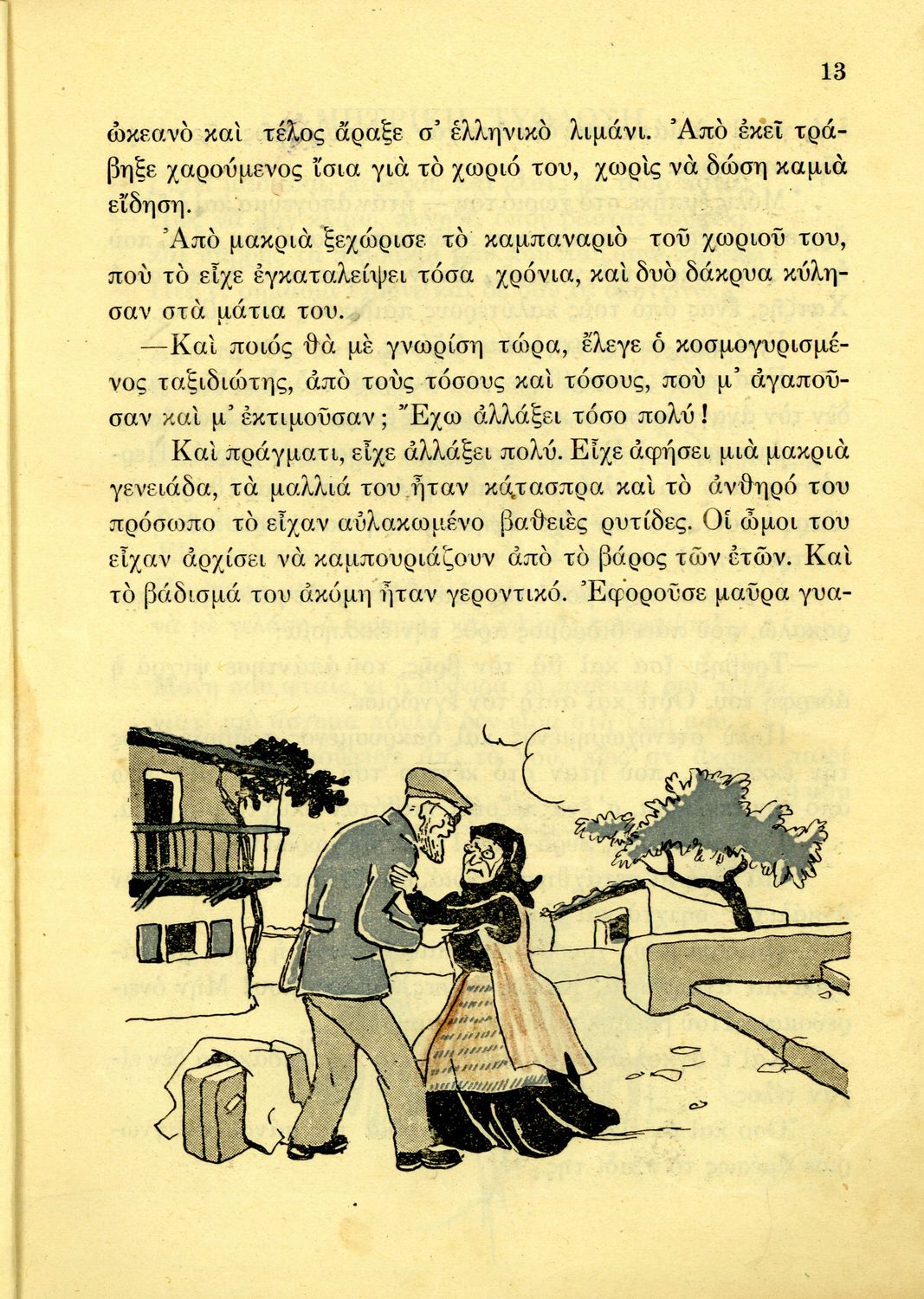 Αναγνωστικό Δ' Δημοτικού που περιλαμβάνει πεζά και ποιήματα Ελλήνων λογοτεχνών εμπνευσμένα από την ζωή στην ύπαιθρο, τις θρησκευτικές και εθνικές γιορτές και την οικογενειακή ζωή.