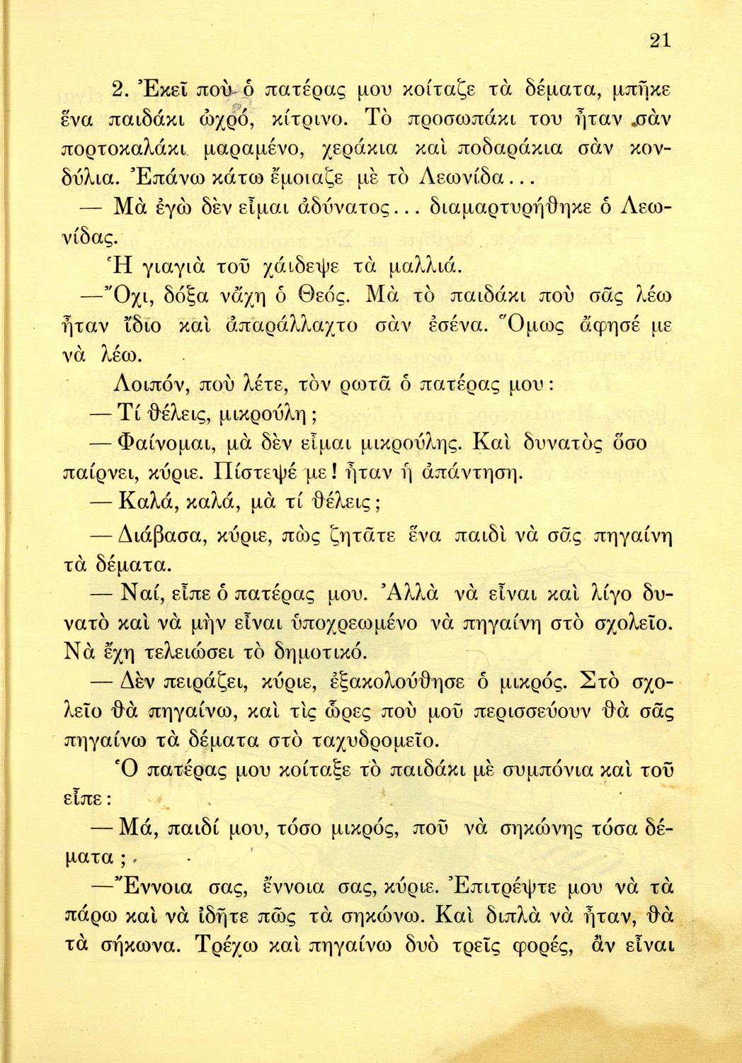 LDR 01318 2200217 4500 035 ## _a20-01343 040 ## _aΚΕΝΕΚ - Εταιρεία Σπουδών Νεοελληνικού Πολιτισμού και Παιδείας 041 ## _ael 100 ## _aΔ. Ζήσης _aΚ. Ρωμαίος 110 ## _a1343 245 0# _aΑναγνωστικό της Δ΄ Δημοτικού 250 ## _a1η Έκδοση 260 ## _aΑθήνα _bΟργανισμός Εκδόσεως Σχολικών Βιβλίων _c1949 300 ## _a240 _bΕξώφυλλο (έγχρωμο), Σκίτσα (έγχρωμα) _c19 520 ## _aΑναγνωστικό Δ' Δημοτικού που περιλαμβάνει πεζά και ποιήματα Ελλήνων λογοτεχνών εμπνευσμένα από την ζωή στην ύπαιθρο, τις θρησκευτικές και εθνικές γιορτές και την οικογενειακή ζωή. 521 ## _aΔ' Δημοτικού 522 ## _aΕλλάδα 546 ## _aΔημοτική 563 ## _aΜαλακό Εξώφυλλο 650 #4 _aΒίος και έργα των αρχαίων _aΕλληνική ιστορία _aΖωή στη φύση και στην ύπαιθρο _aΘρησκεία _aΟικογένεια _aΠατρίδα 700 ## _aΣ. Πολενάκης