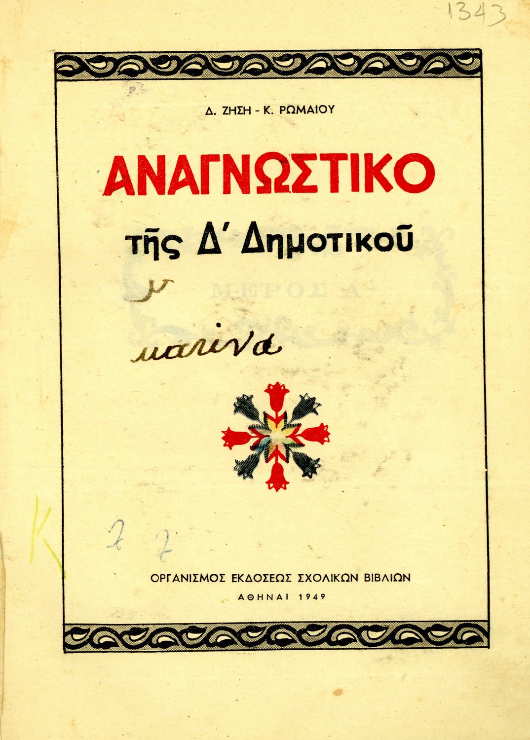 Κωδικός αναγνώρισης: 20-01343 Τίτλος: Αναγνωστικό της Δ΄ Δημοτικού Συγγραφέας: Δ. Ζήσης, Κ. Ρωμαίος Εικονογράφος: Σ. Πολενάκης Μέγεθος και υπόστρωμα: Σχολικό εγχειρίδιο, 19εκ., μαλακό εξώφυλλο, 240 σελίδες. Εξώφυλλο (έγχρωμο), σκίτσα (έγχρωμα). |