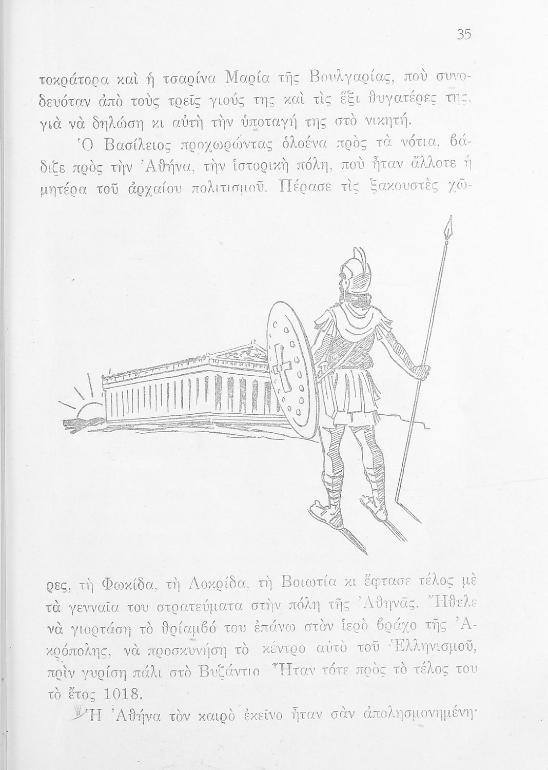 Αναγνωστικό Ε΄ Δημοτικού που περιλαμβάνει εξιστορήσεις πολεμικών γεγονότων εμπνευσμένες από την περίοδο του Βυζαντίου και των Βαλκανικών Πολέμων.