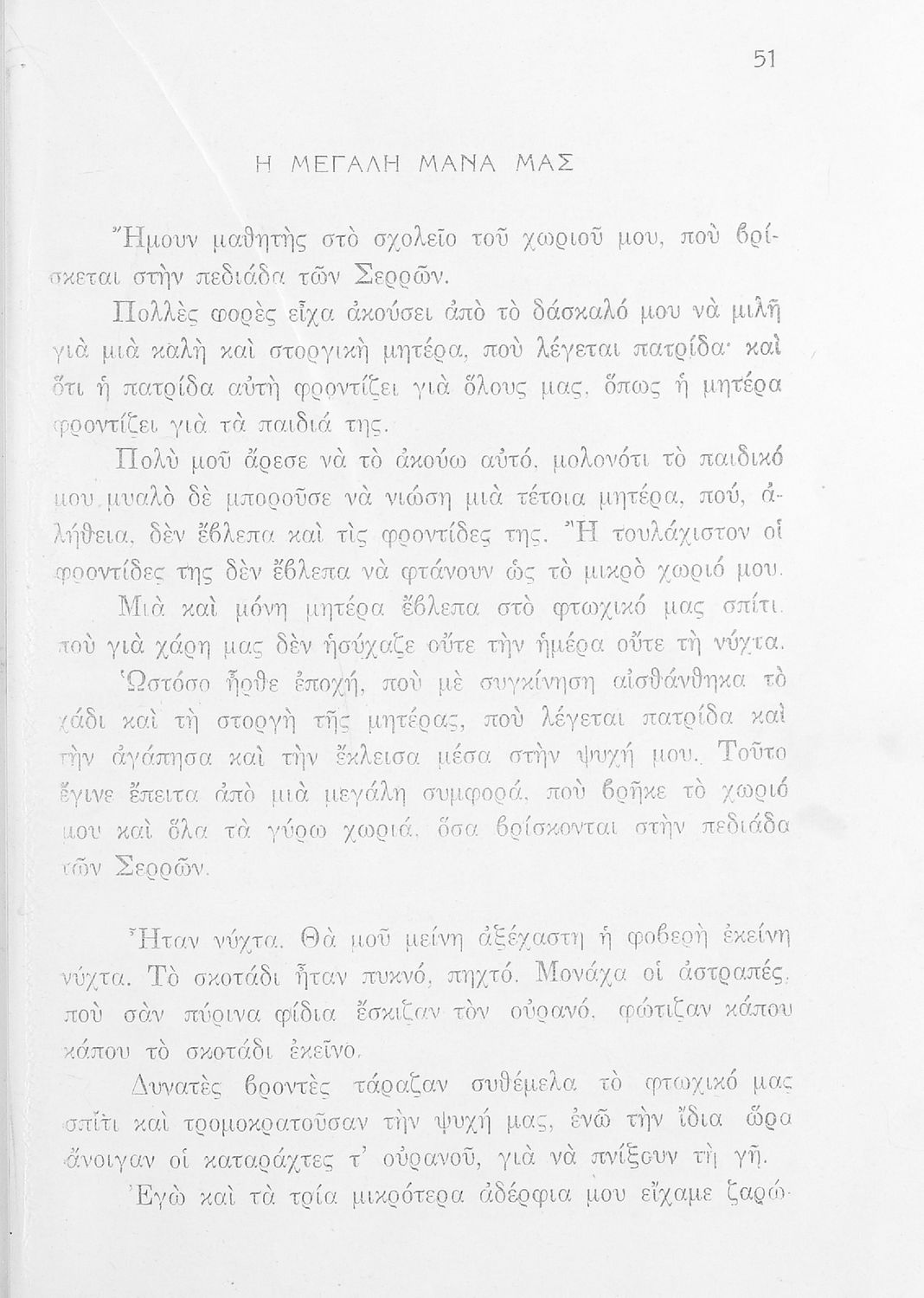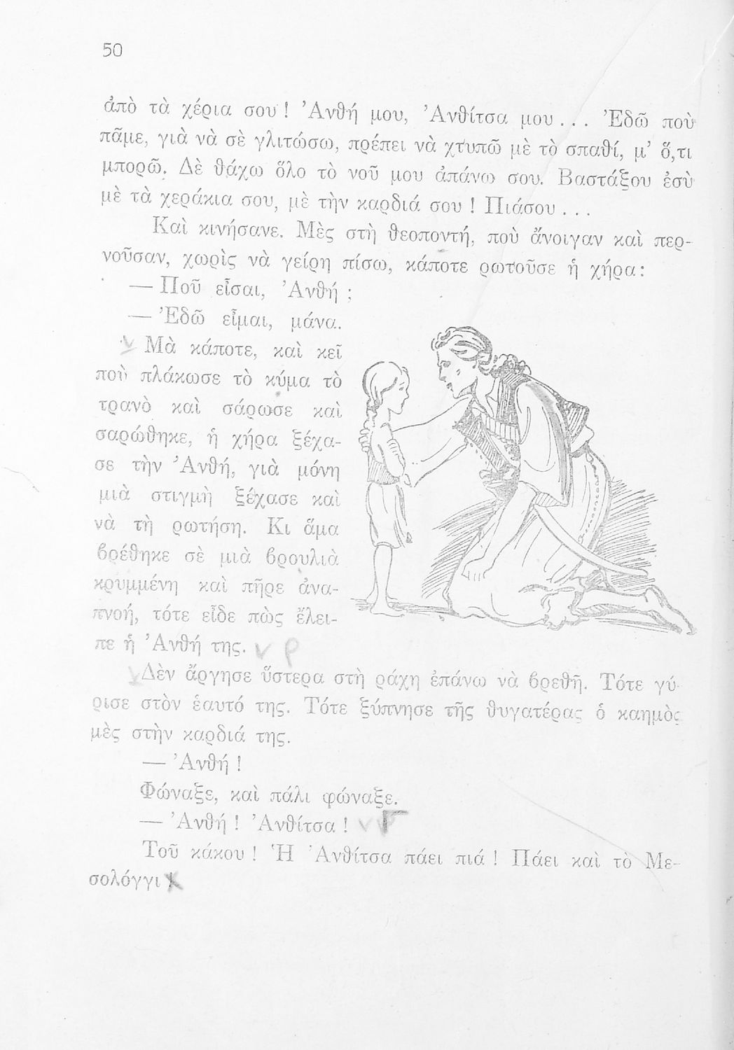 Αναγνωστικό Ε΄ Δημοτικού που περιλαμβάνει πεζογραφήματα γραμμένα στη δημοτική και στη καθαρεύουσα. Τα πρώτα εστιάζουν σε θέματα από την ελληνική φύση και την αγροτική ζωή. Τα δεύτερα αντλούν την θεματολογία τους από το τρίπτυχο "Πατρίς-θρησκεία-οικογένειαα".