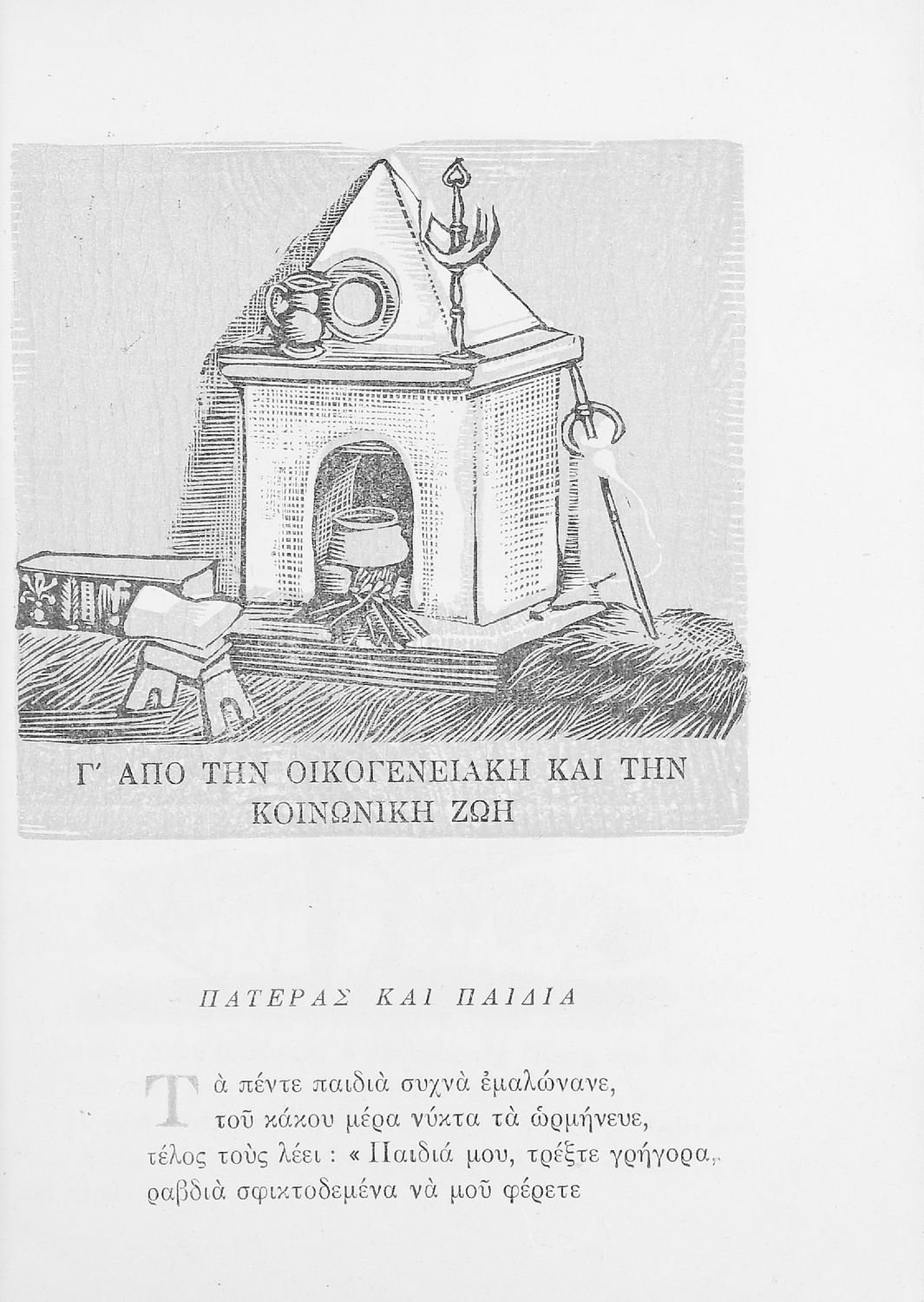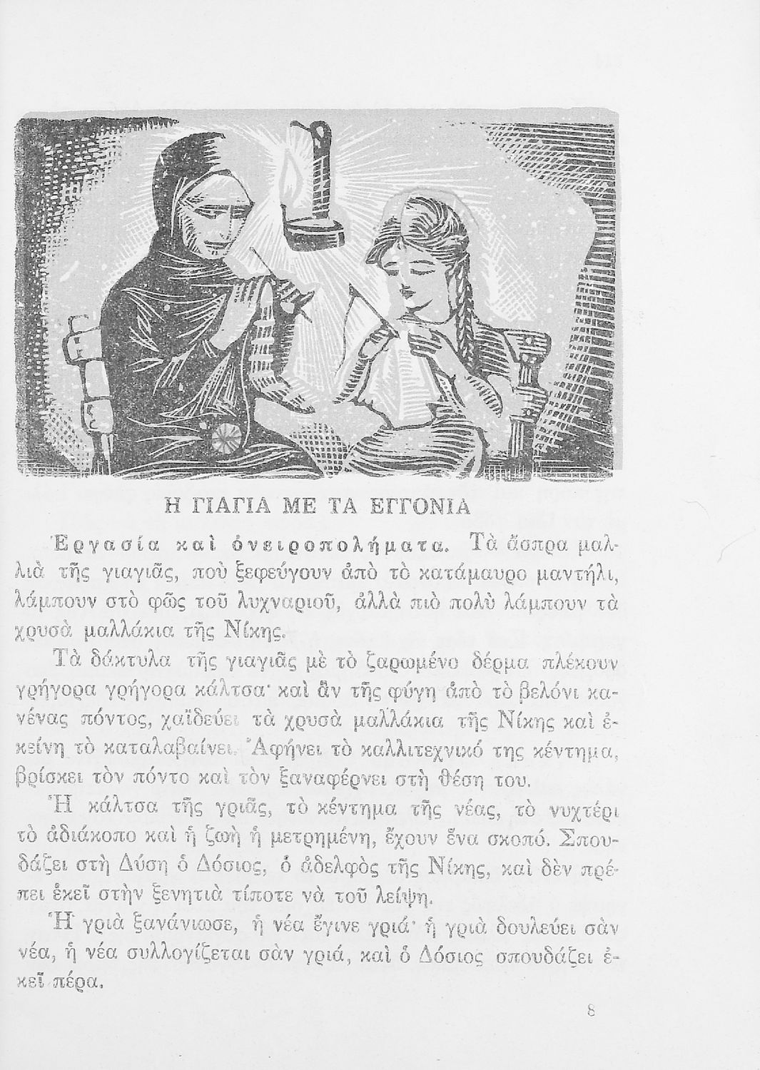 Αναγνωστικό Ε΄ Δημοτικού που περιλαμβάνει πεζογραφήματα εμπνευσμένα από την ελληνική φύση, την αγροτική ζωή και από το τρίπτυχο "Πατρίς- θρησκεία- οικογένεια".