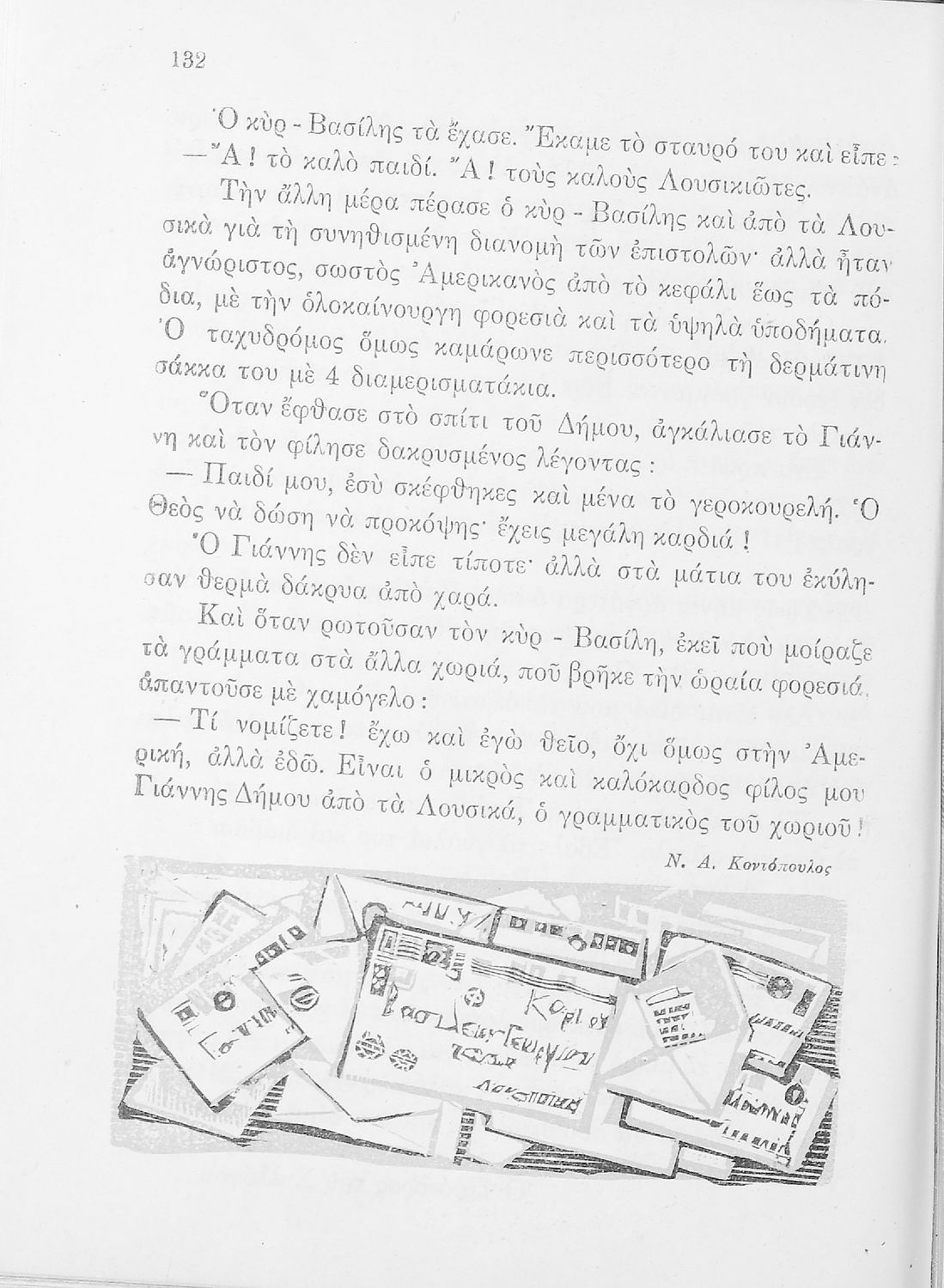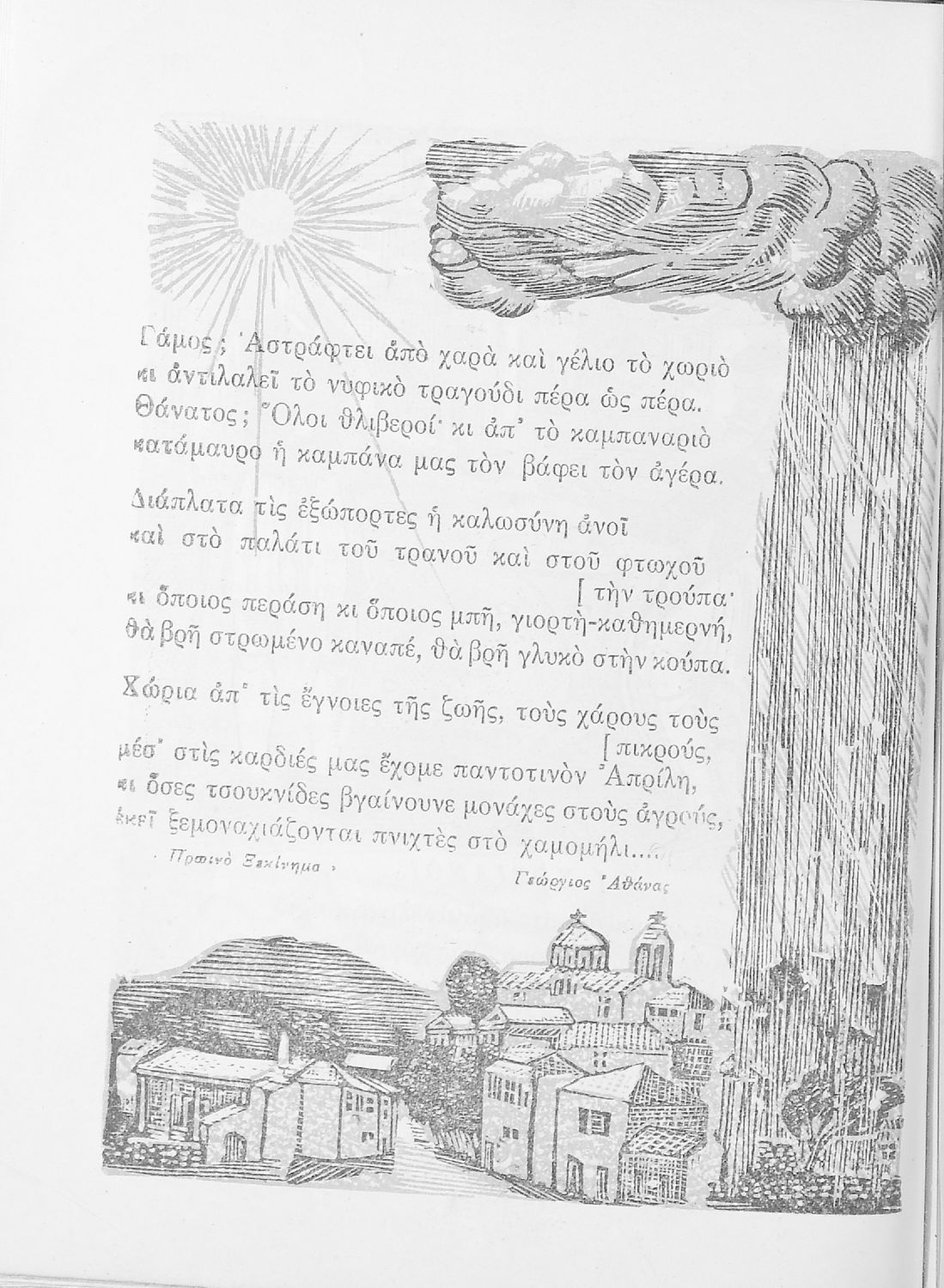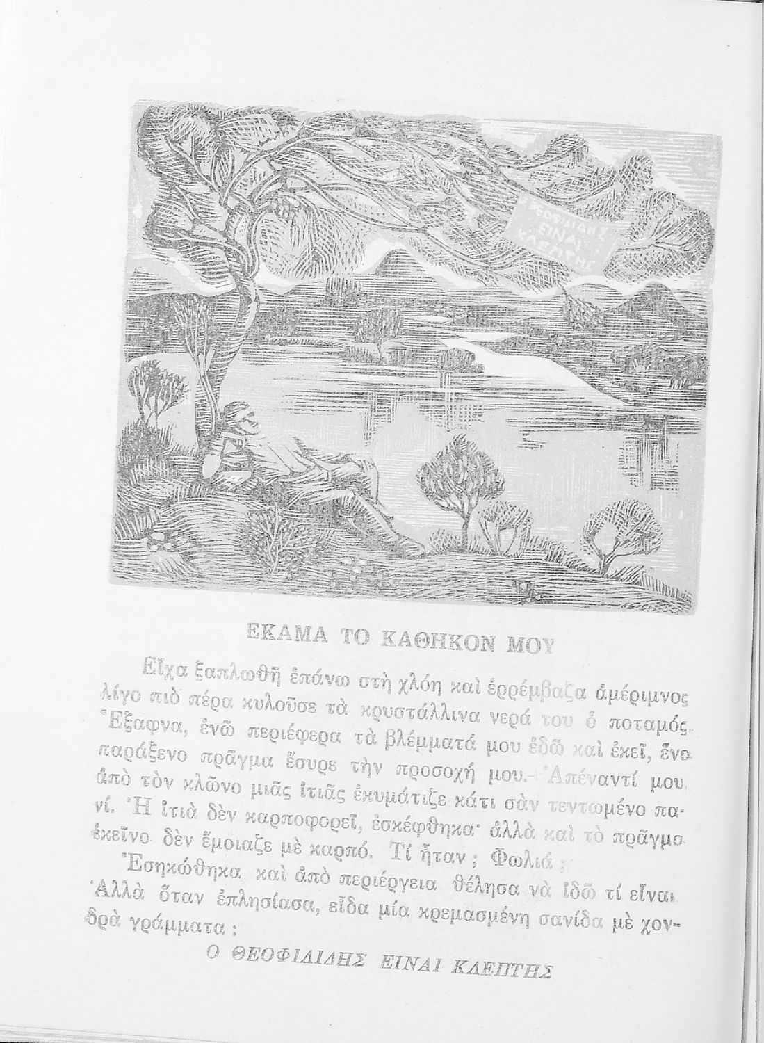 Αναγνωστικό Ε΄ Δημοτικού που περιλαμβάνει πεζογραφήματα εμπνευσμένα από την ελληνική φύση, την αγροτική ζωή και από το τρίπτυχο "Πατρίς- θρησκεία- οικογένεια".