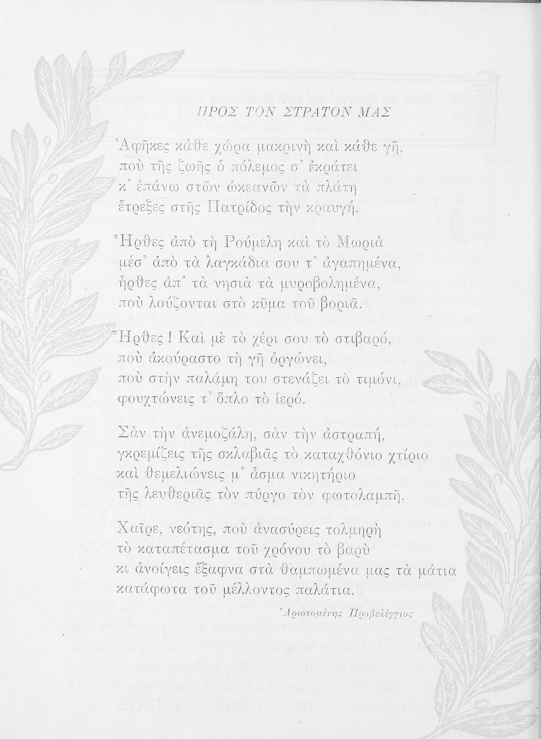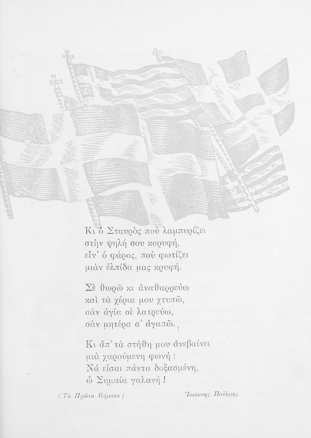 Αναγνωστικό Ε΄ Δημοτικού που περιλαμβάνει πεζογραφήματα εμπνευσμένα από την ελληνική φύση, την αγροτική ζωή και από το τρίπτυχο "Πατρίς- θρησκεία- οικογένεια".