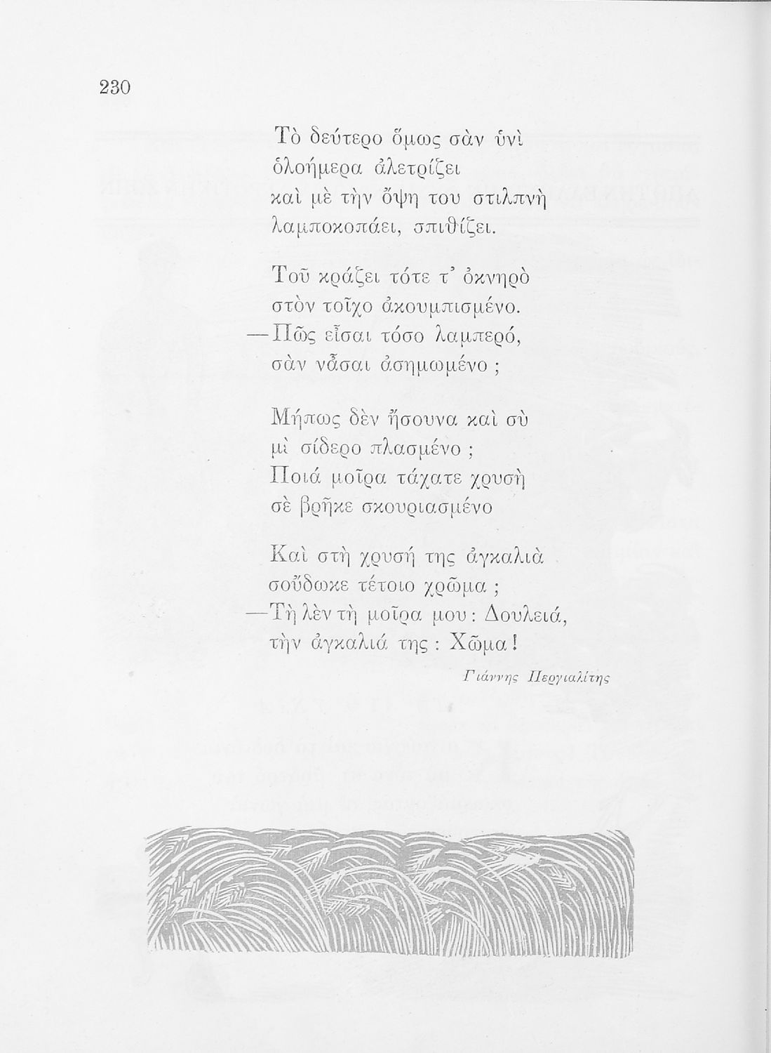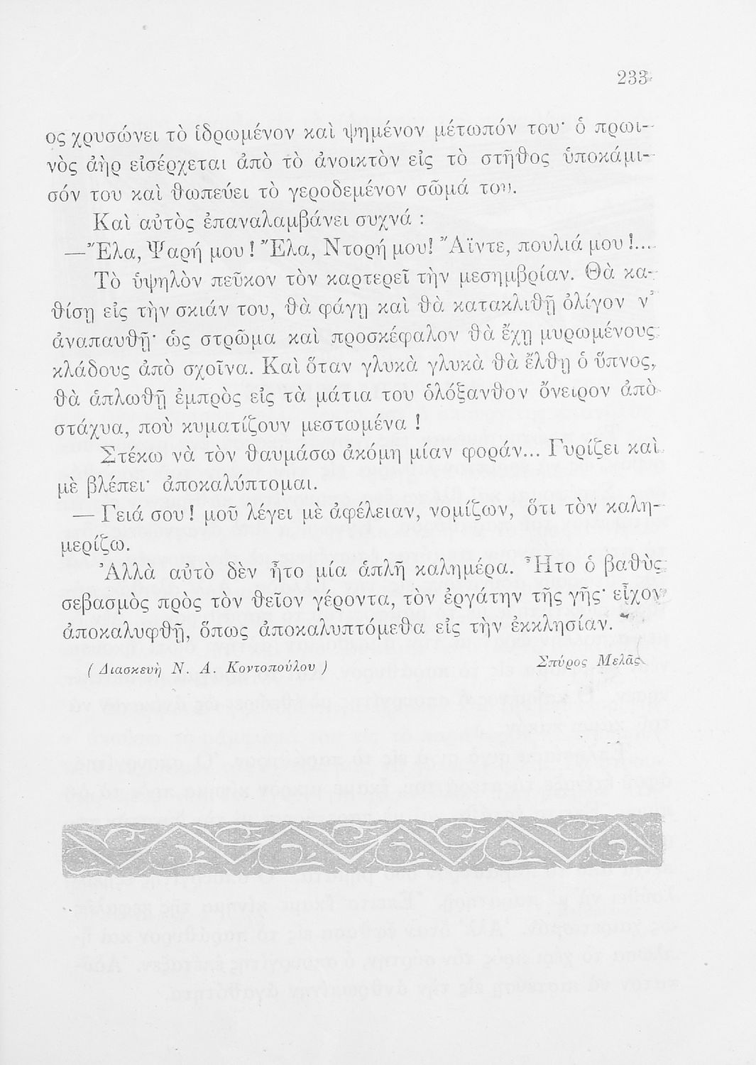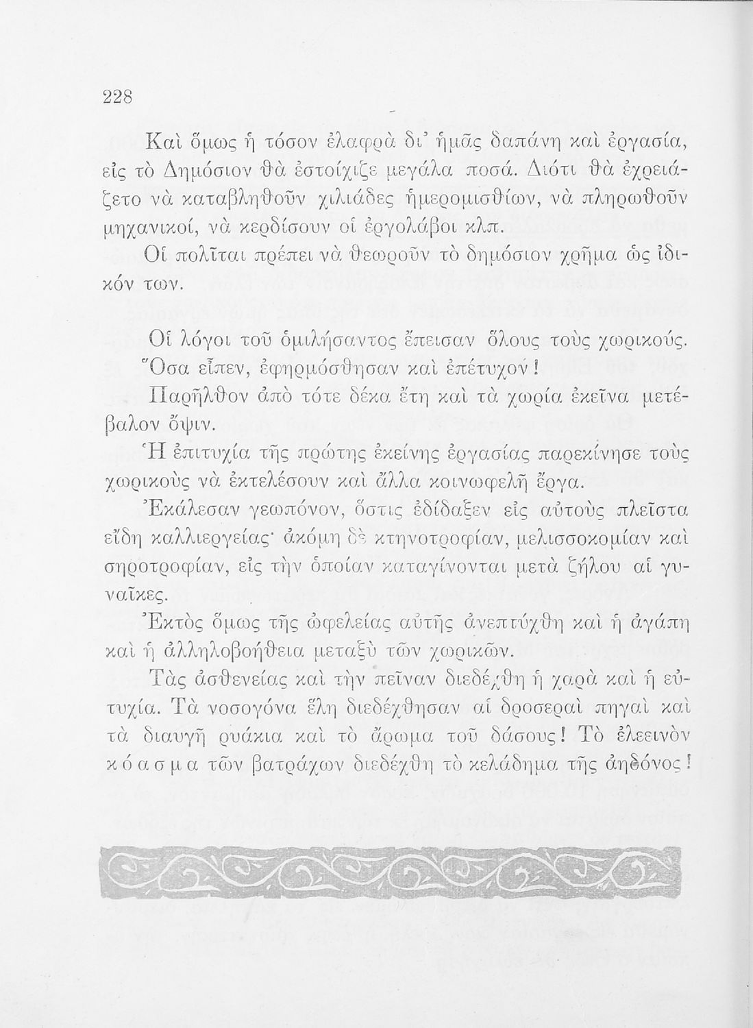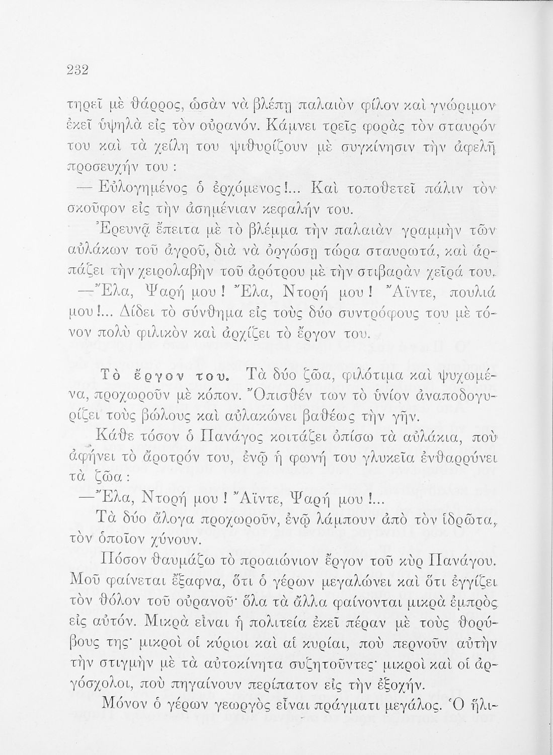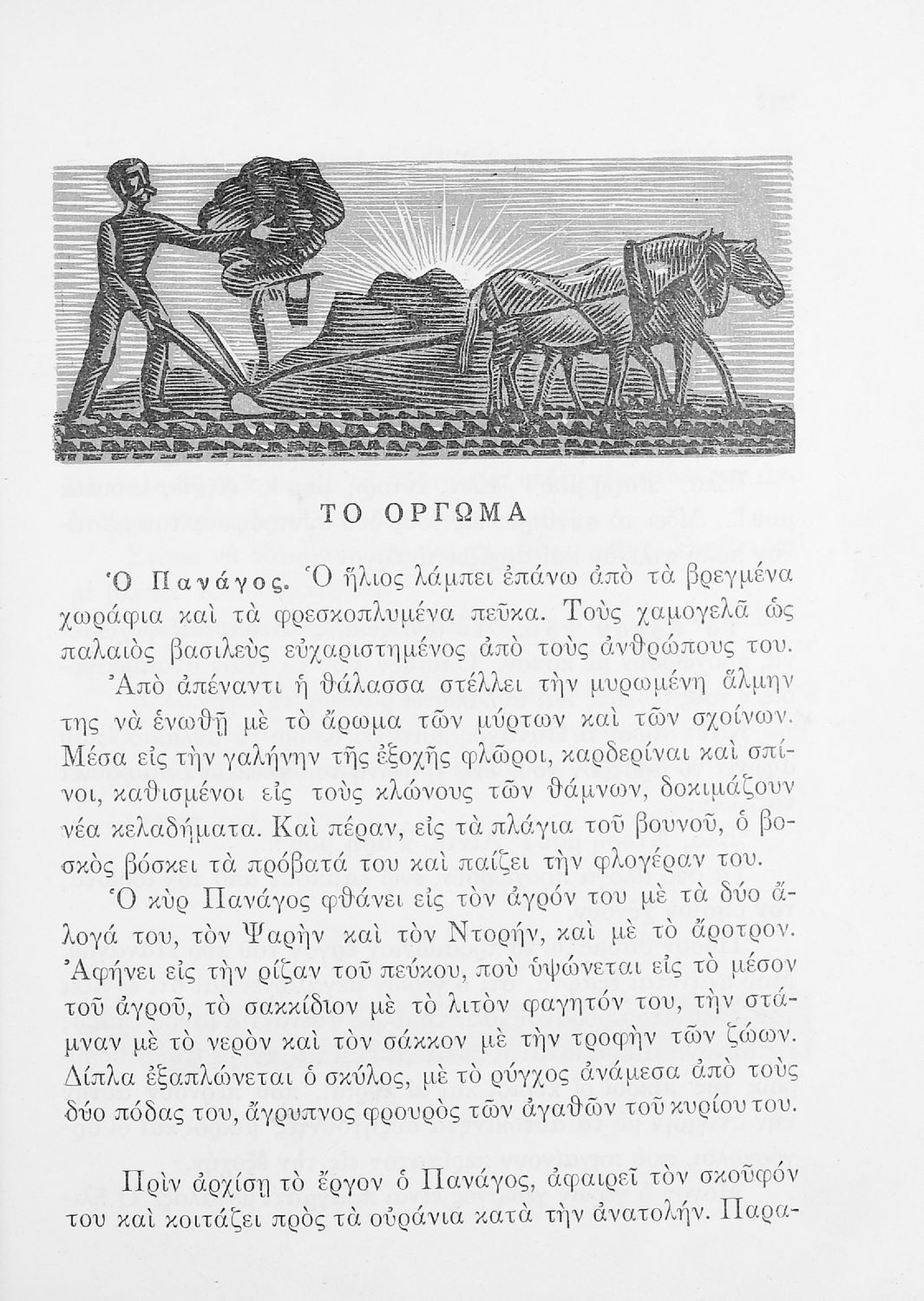 Αναγνωστικό Ε΄ Δημοτικού που περιλαμβάνει πεζογραφήματα εμπνευσμένα από την ελληνική φύση, την αγροτική ζωή και από το τρίπτυχο "Πατρίς- θρησκεία- οικογένεια".