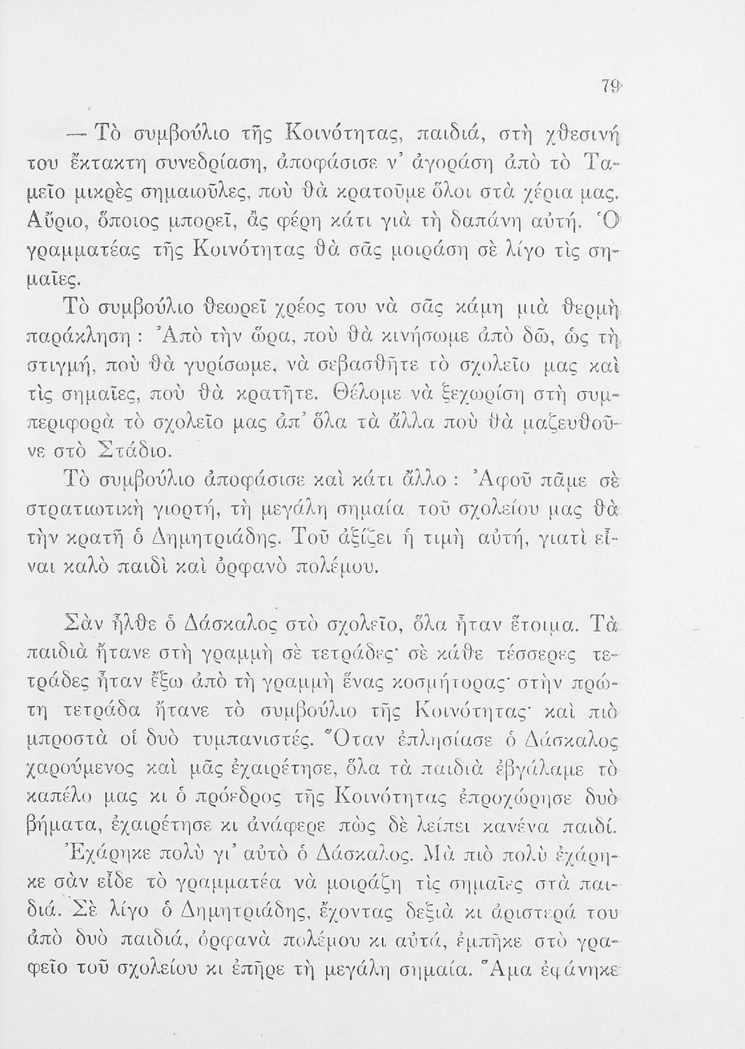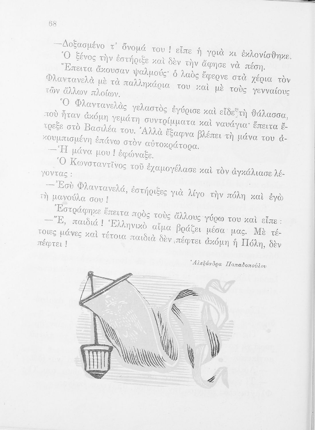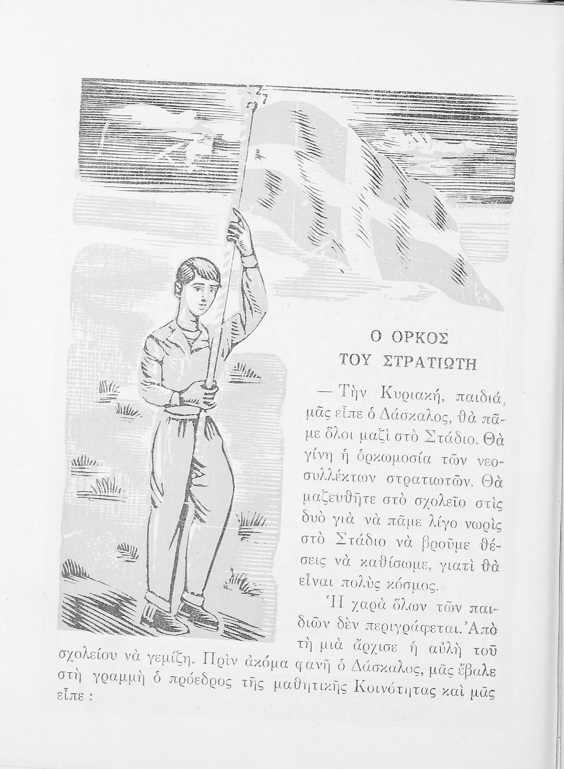 Αναγνωστικό Ε΄ Δημοτικού που περιλαμβάνει πεζογραφήματα εμπνευσμένα από την ελληνική φύση, την αγροτική ζωή και από το τρίπτυχο "Πατρίς- θρησκεία- οικογένεια".