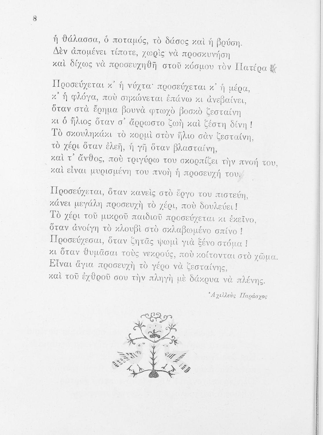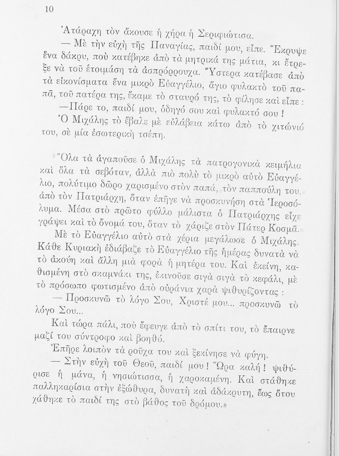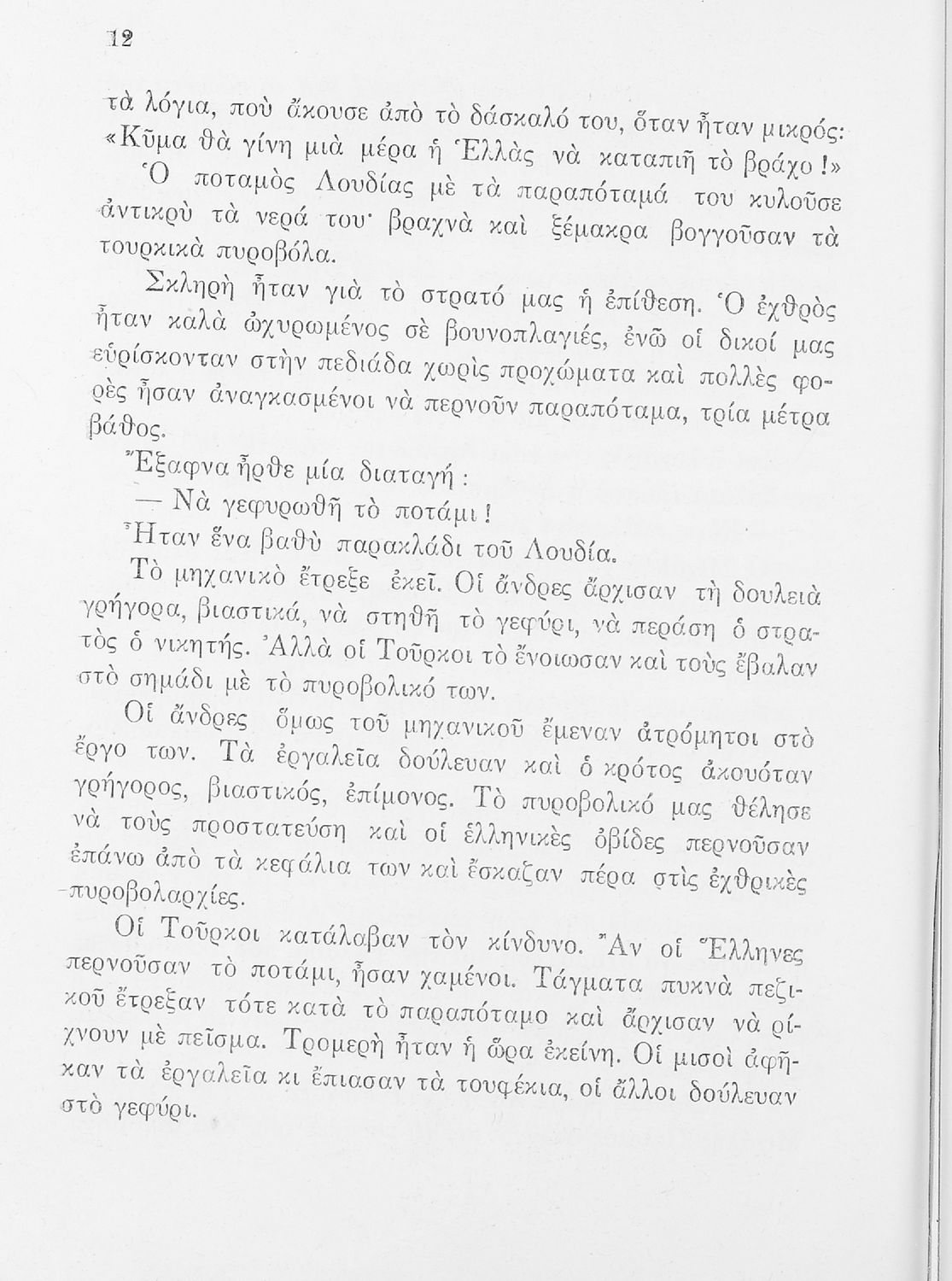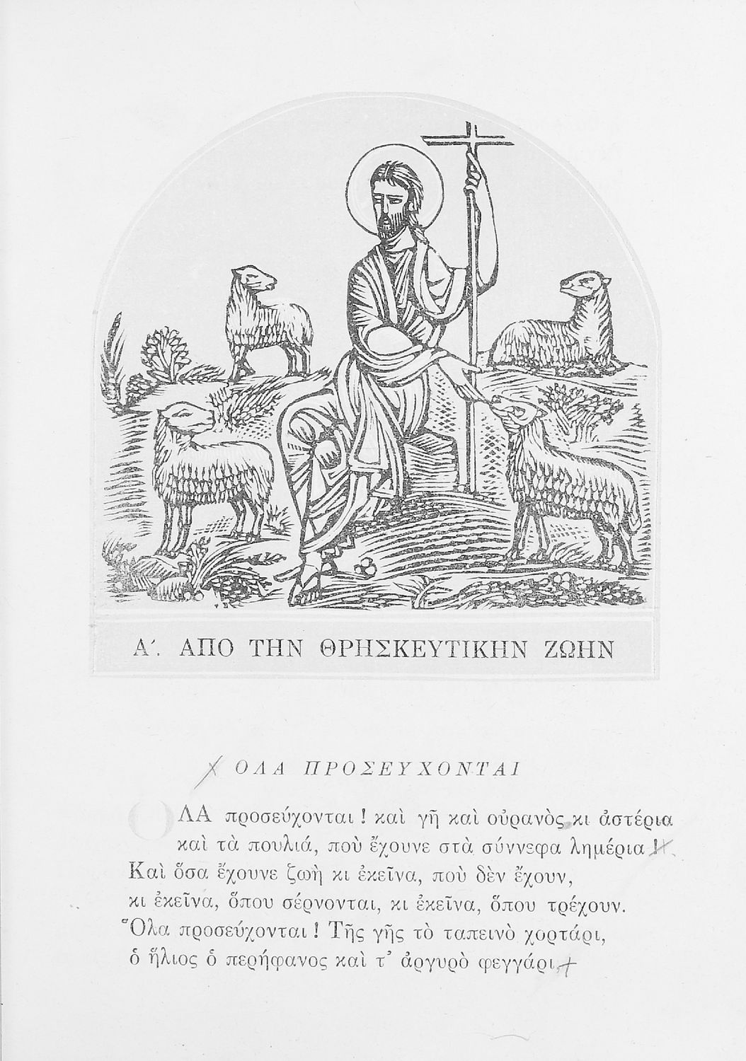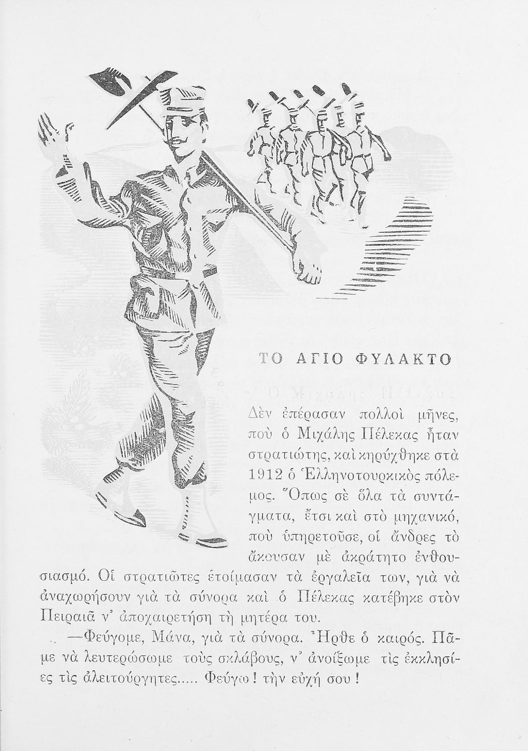 Αναγνωστικό Ε΄ Δημοτικού που περιλαμβάνει πεζογραφήματα εμπνευσμένα από την ελληνική φύση, την αγροτική ζωή και από το τρίπτυχο "Πατρίς- θρησκεία- οικογένεια".