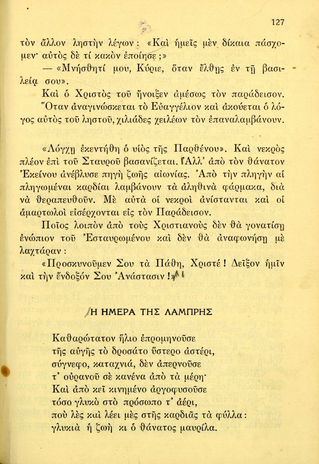 Σχετιζόμενοι όροι:  Πολέμης, Βιζυηνός, Κυριακή, προσευχή