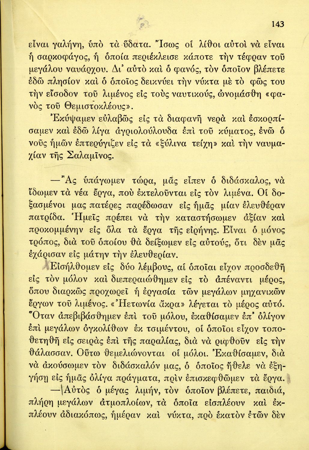 Αναγνωστικό Γ' Δημοτικού που περιέχει πεζά και ποιήματα εμπνευσμένα από τη θρησκευτική, εθνική, κοινωνική και ατομική ζωή, και την ελληνική φύση, ιστορία και μυθολογία.