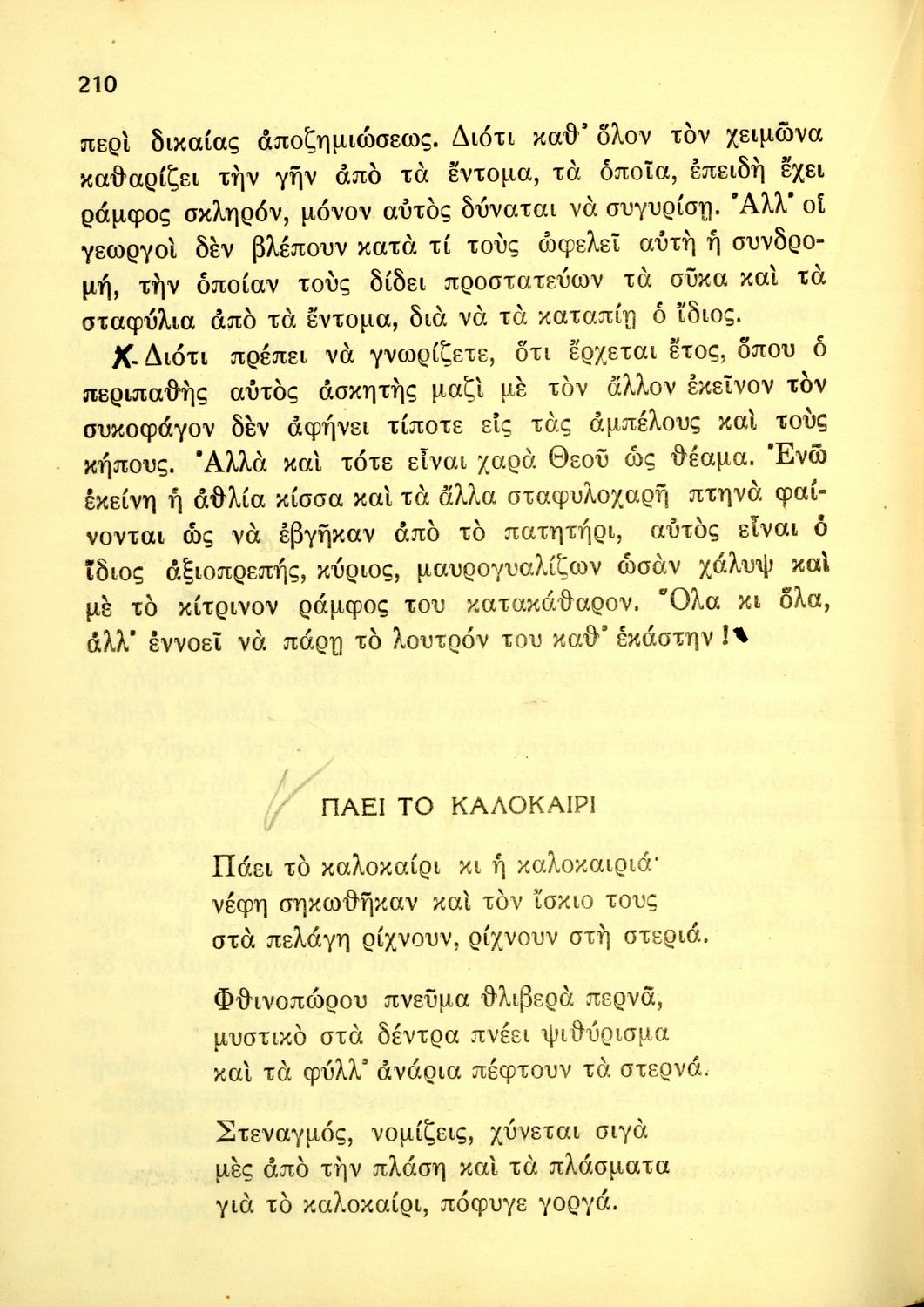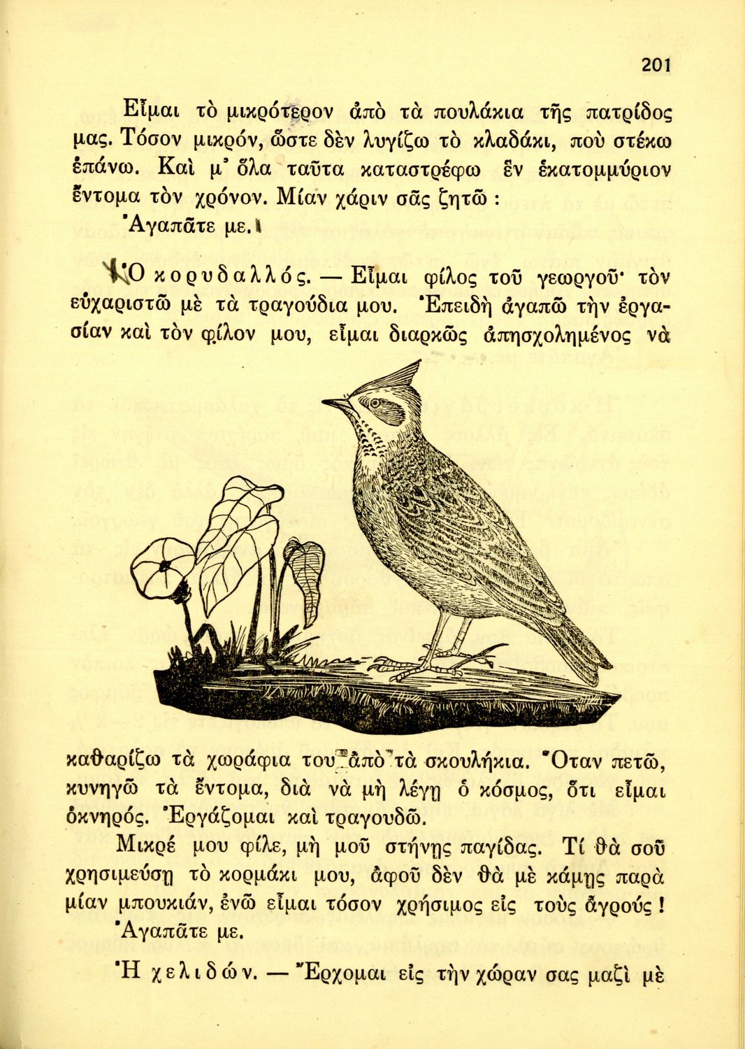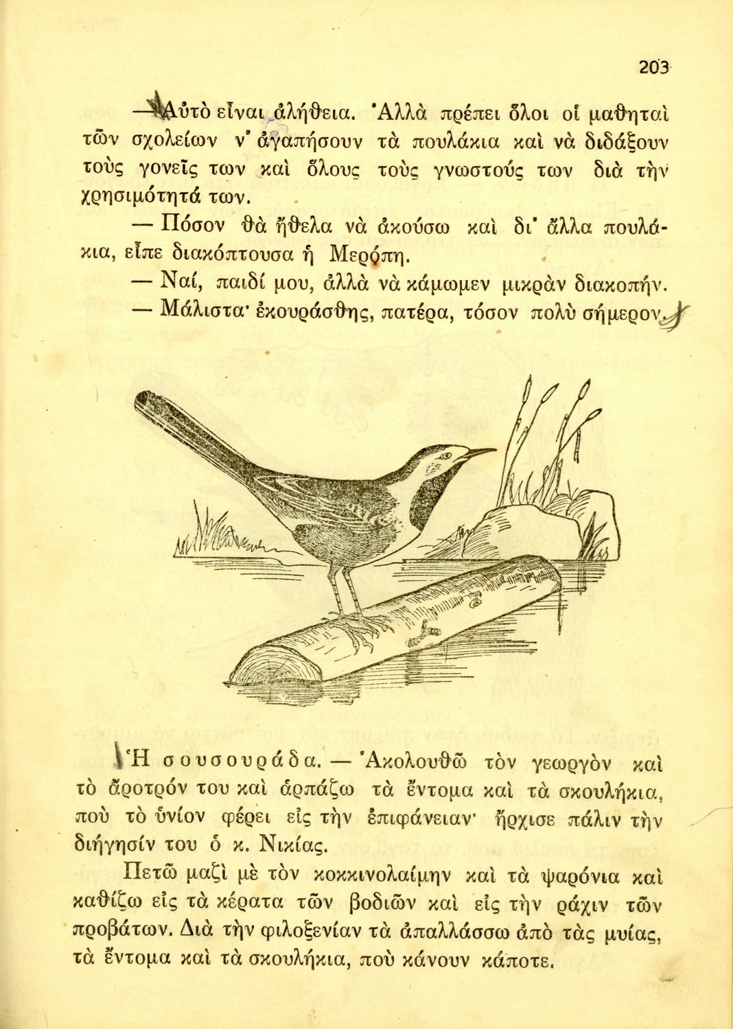 Αναγνωστικό Γ' Δημοτικού που περιέχει πεζά και ποιήματα εμπνευσμένα από τη θρησκευτική, εθνική, κοινωνική και ατομική ζωή, και την ελληνική φύση, ιστορία και μυθολογία.