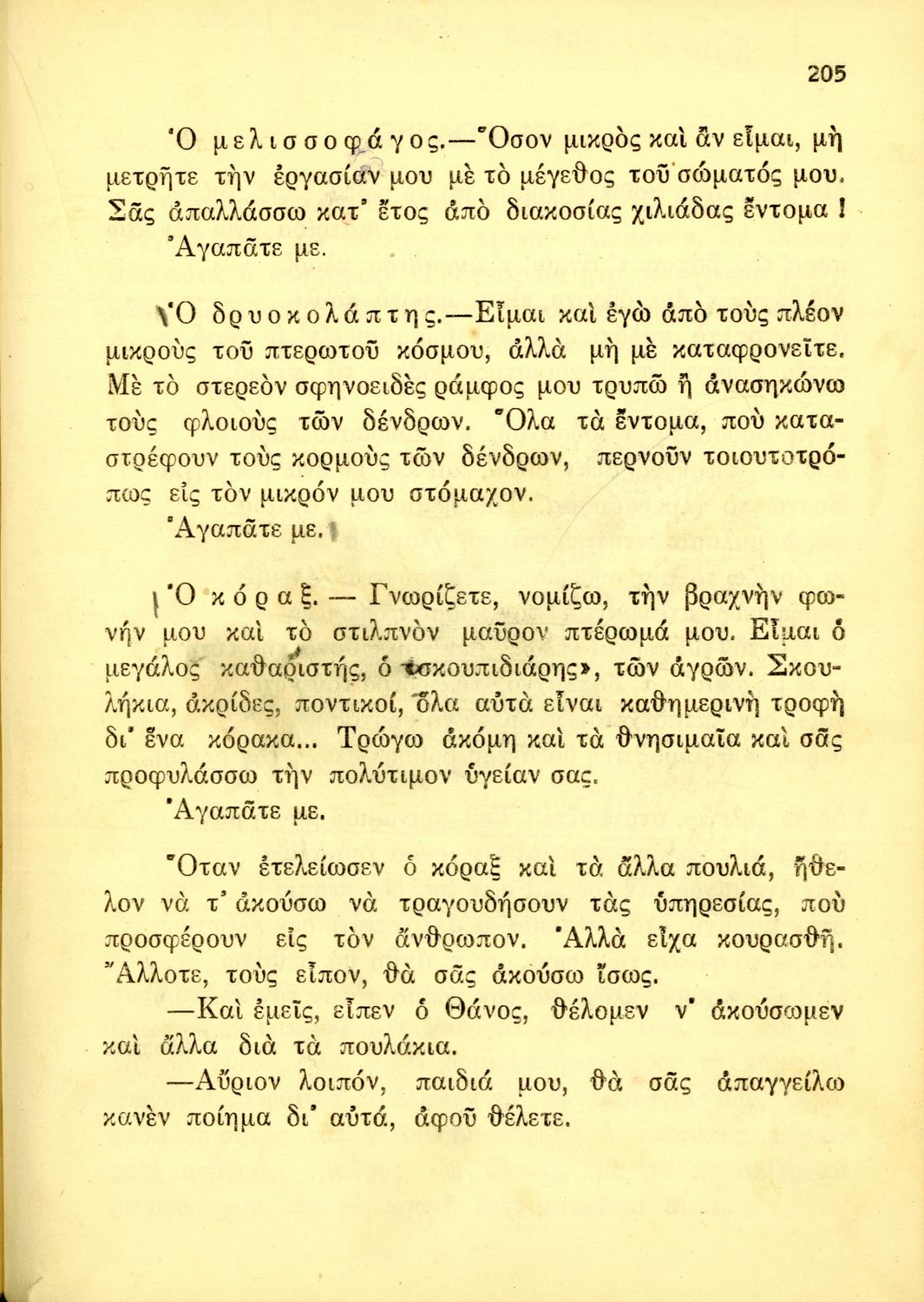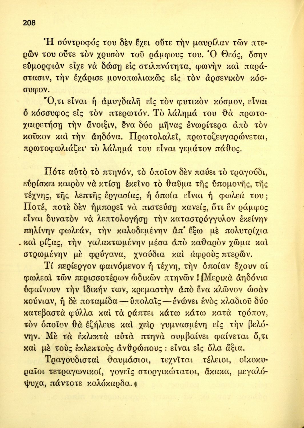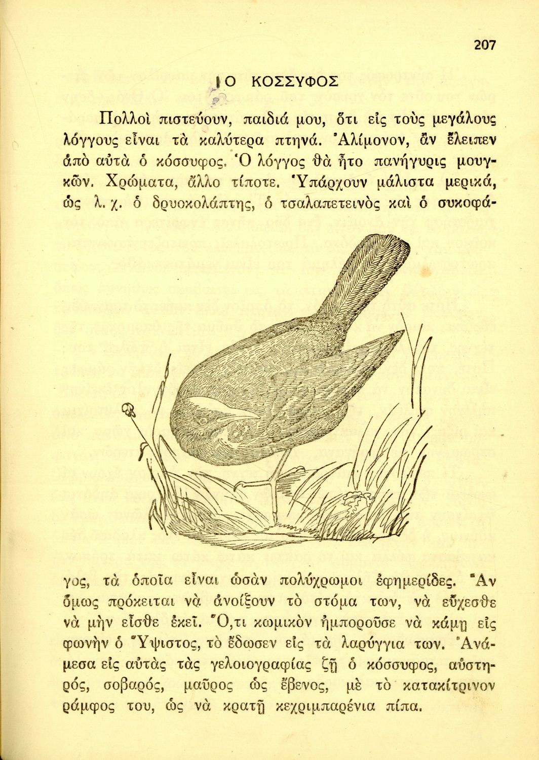 Αναγνωστικό Γ' Δημοτικού που περιέχει πεζά και ποιήματα εμπνευσμένα από τη θρησκευτική, εθνική, κοινωνική και ατομική ζωή, και την ελληνική φύση, ιστορία και μυθολογία.