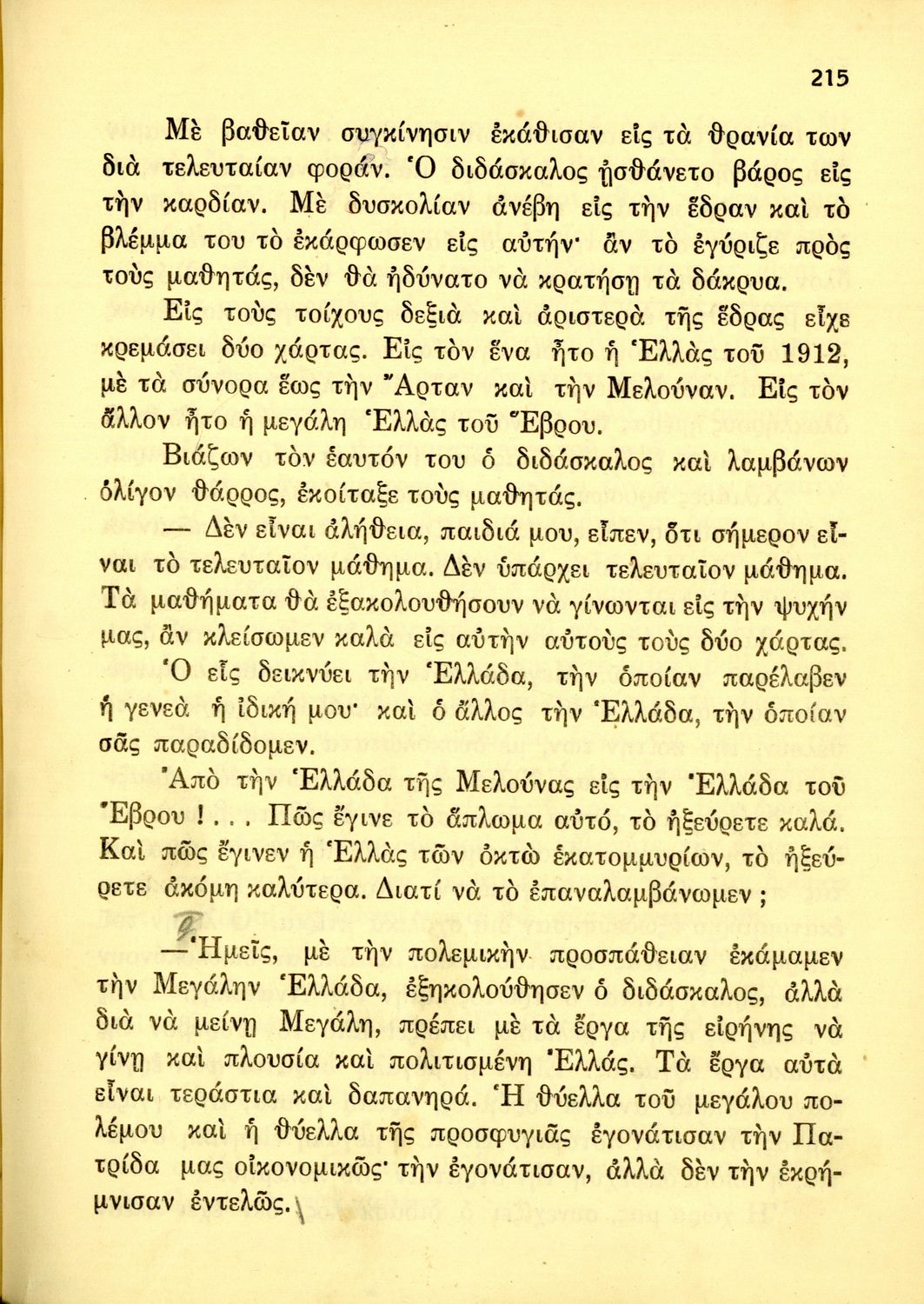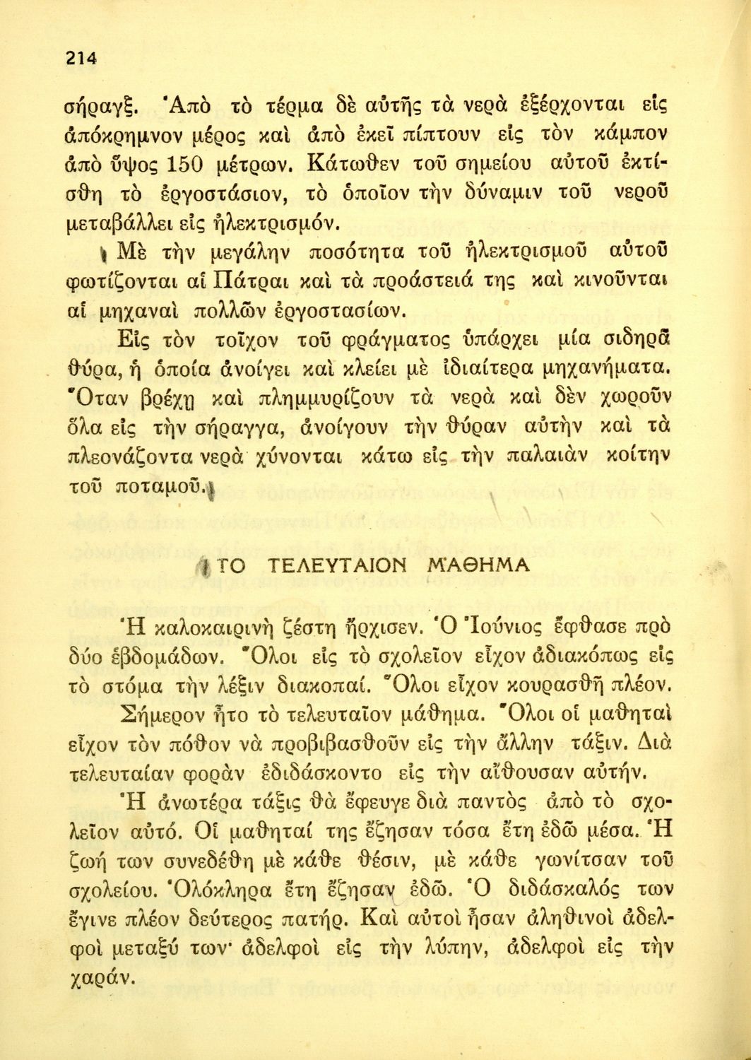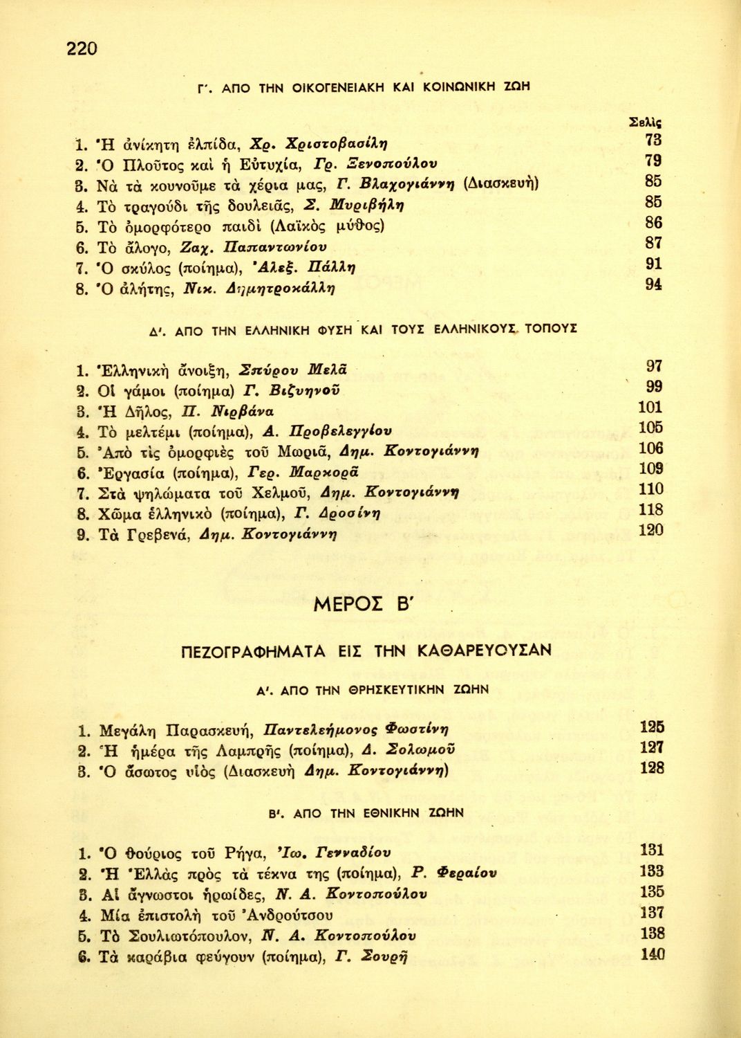 Αναγνωστικό ΣΤ΄ Δημοτικού που περιλαμβάνει πεζά και ποιήματα εμπνευσμένα από τη θρησκευτική, εθνική, οικογενειακή και κοινωνική ζωή, και την ελληνική φύση.