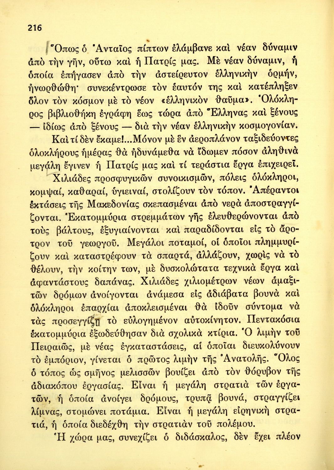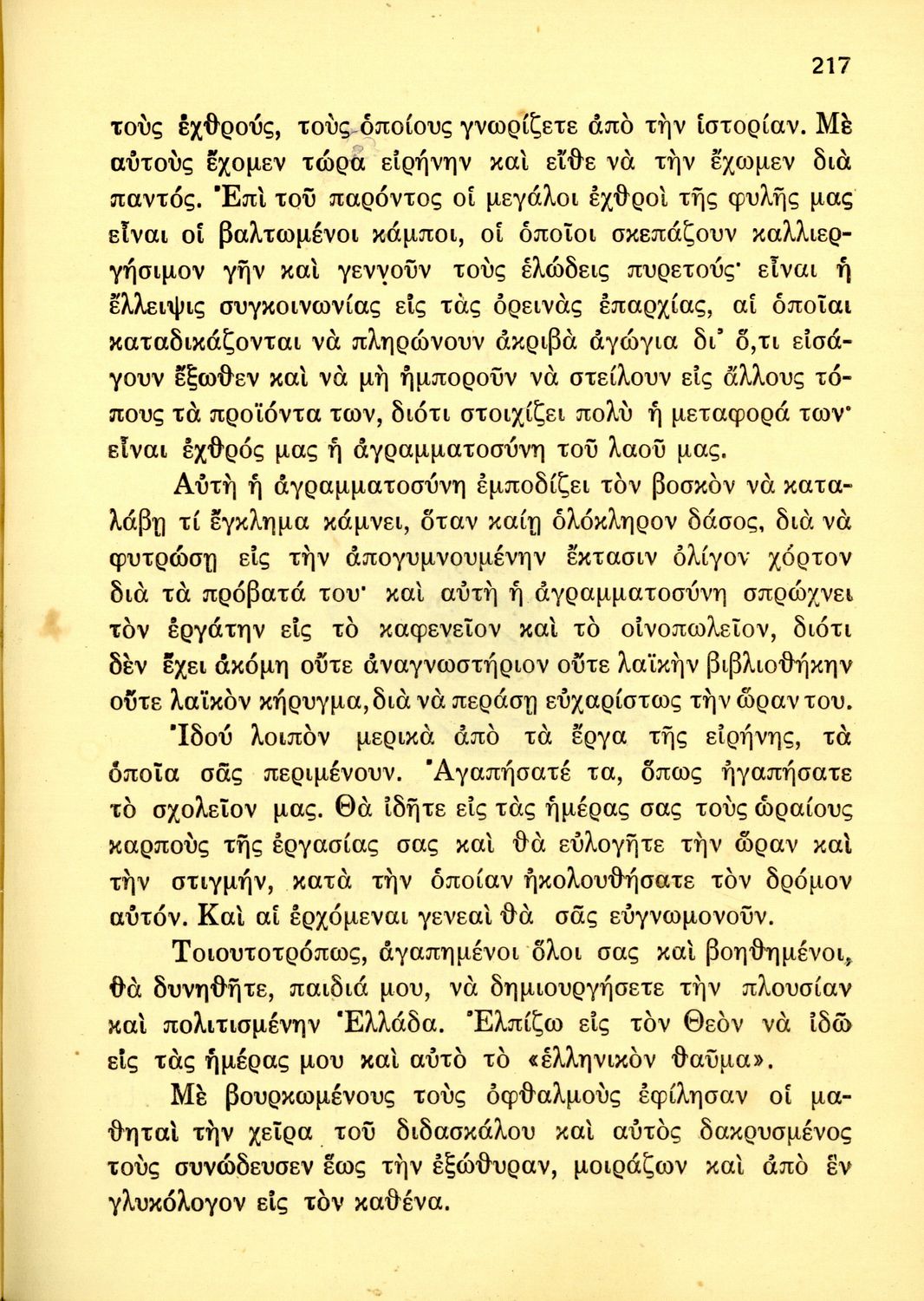 Αναγνωστικό ΣΤ΄ Δημοτικού που περιλαμβάνει πεζά κείμενα και ποιήματα με περιεχόμενο εθνικό, θρησκευτικό και ηθικό.