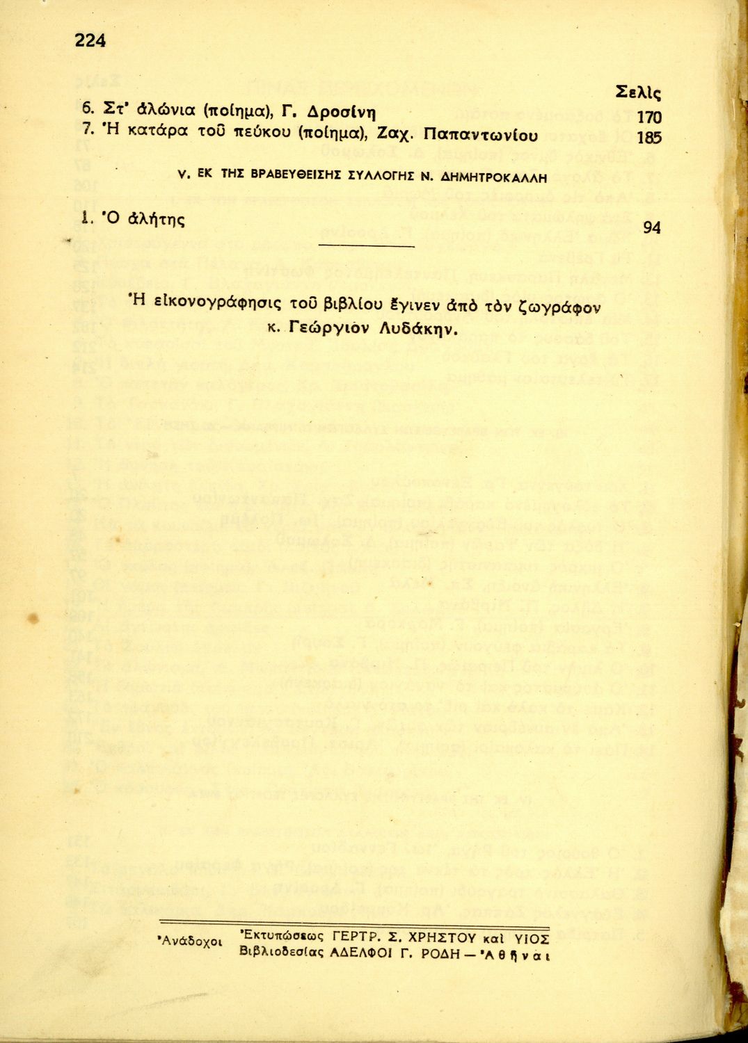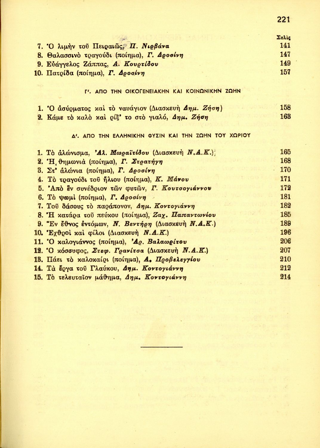 Αναγνωστικό ΣΤ΄ Δημοτικού που περιλαμβάνει πεζά και ποιήματα εμπνευσμένα από τη θρησκευτική, εθνική, οικογενειακή και κοινωνική ζωή, και την ελληνική φύση.