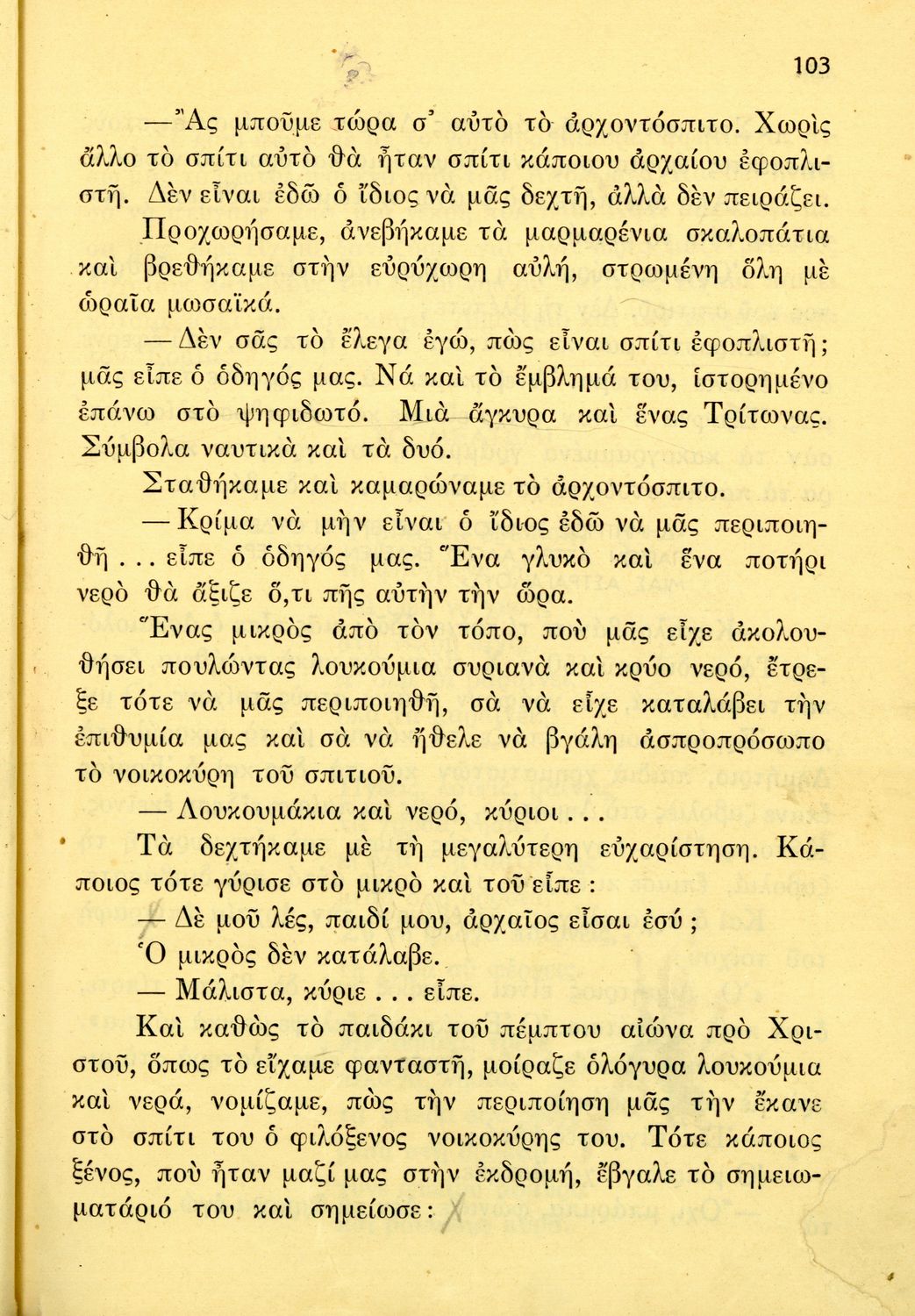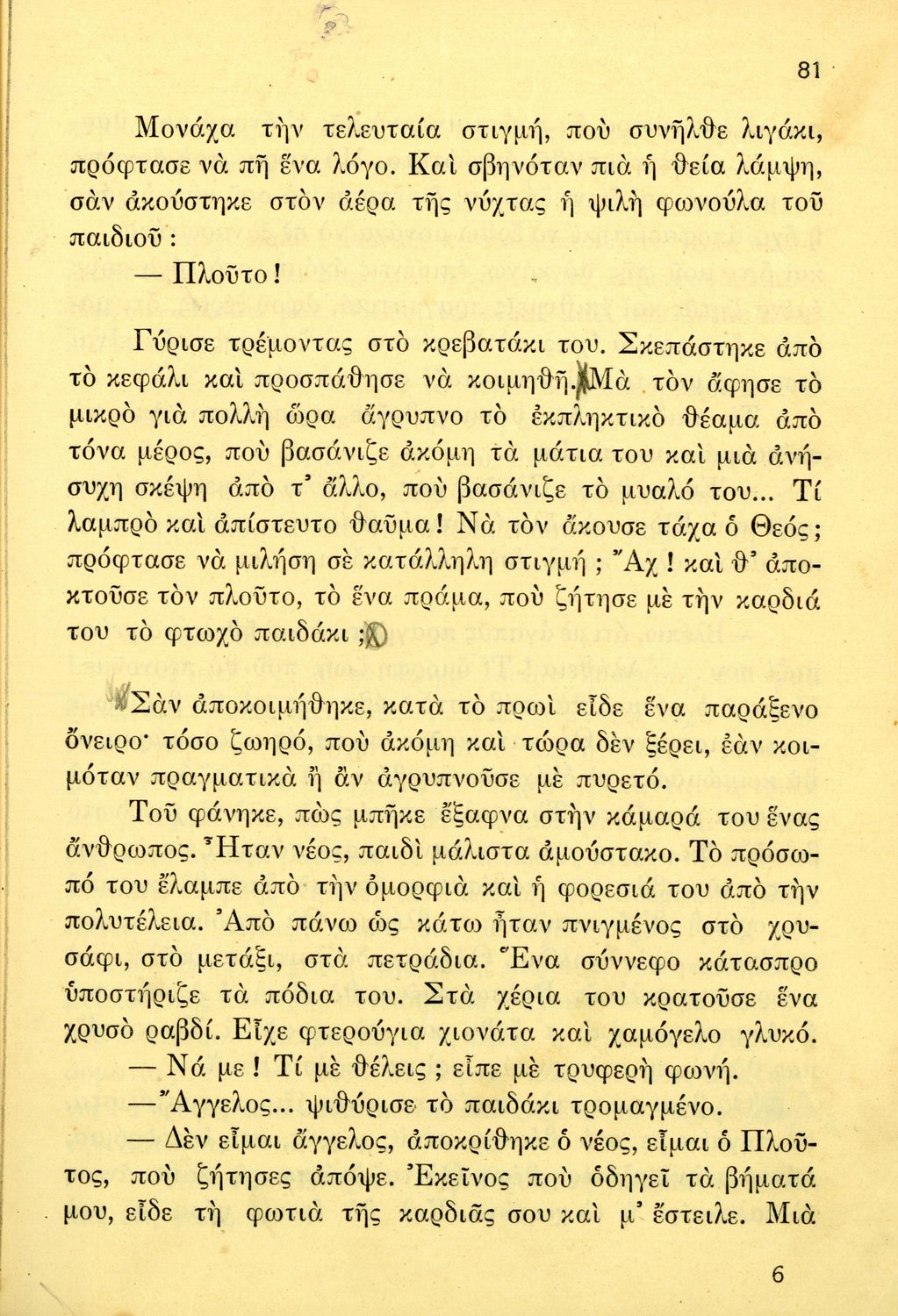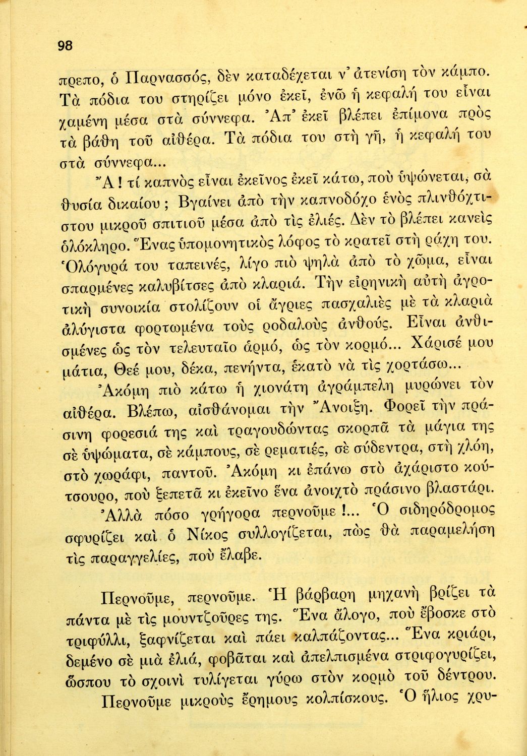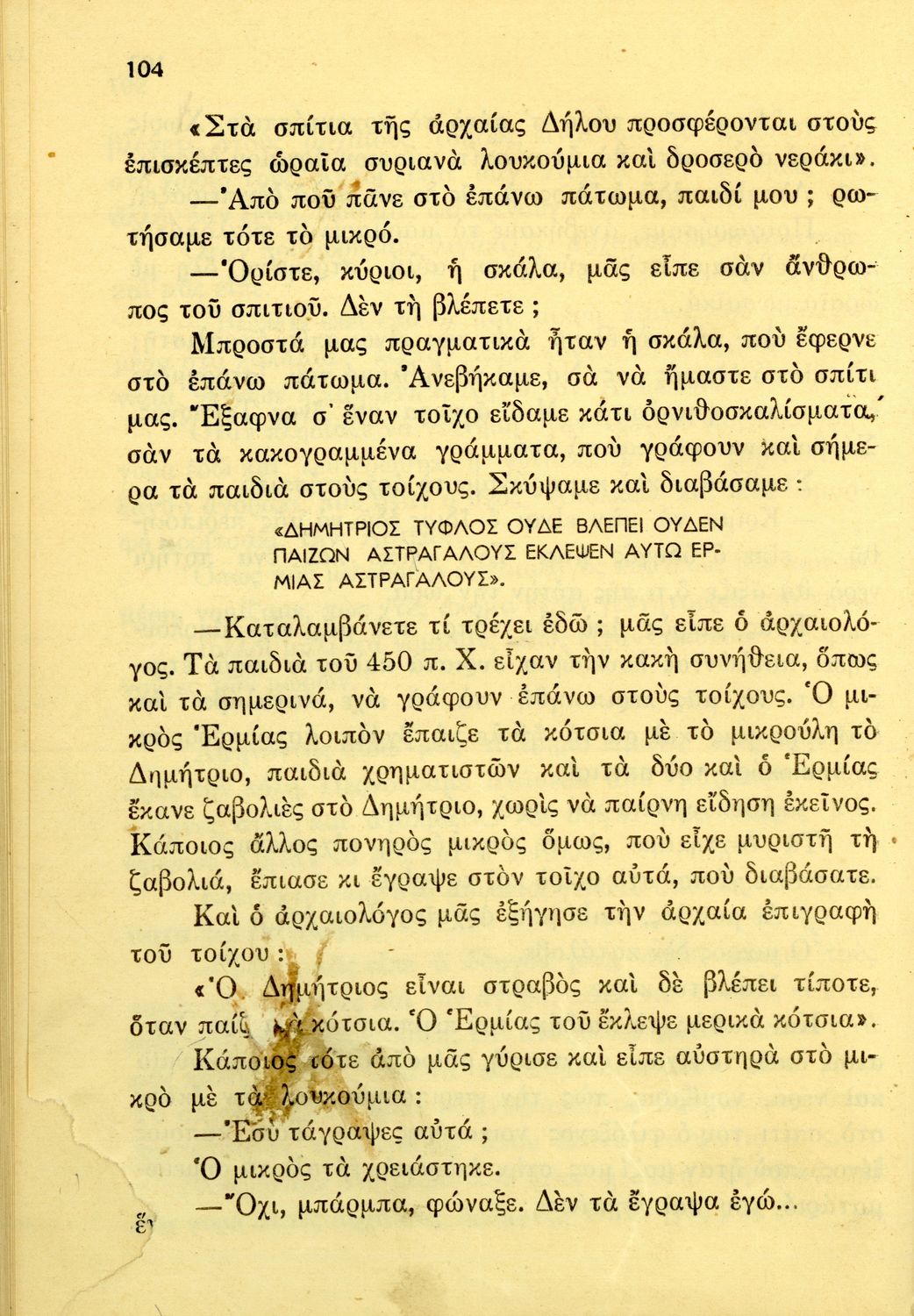 Αναγνωστικό ΣΤ΄ Δημοτικού που περιλαμβάνει πεζά και ποιήματα εμπνευσμένα από τη θρησκευτική, εθνική, οικογενειακή και κοινωνική ζωή, και την ελληνική φύση.