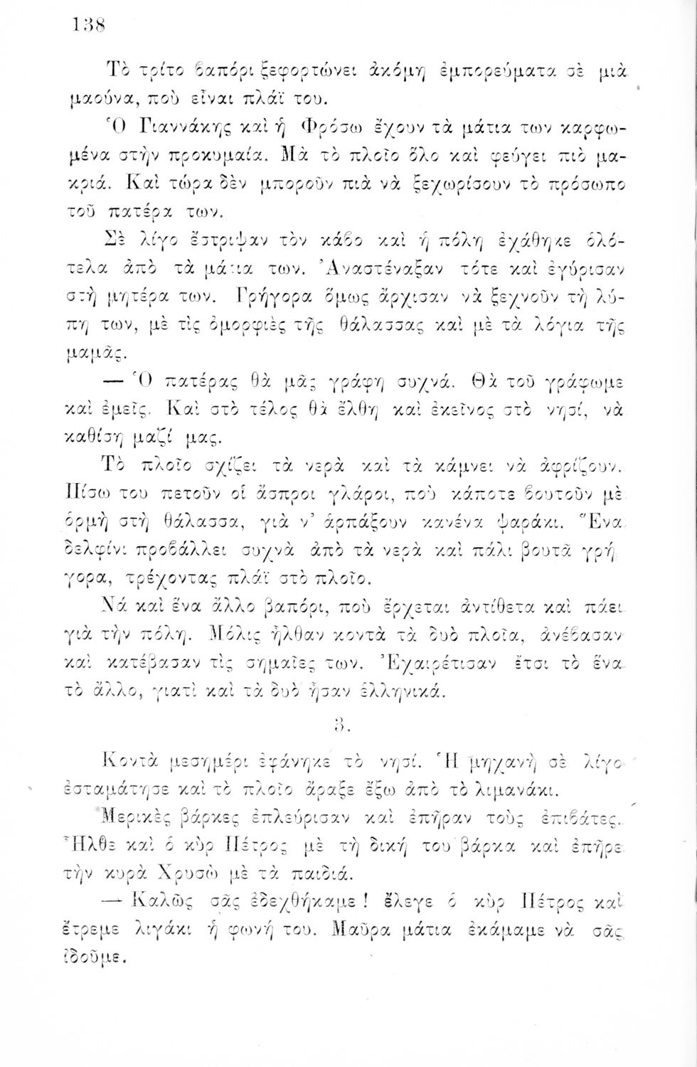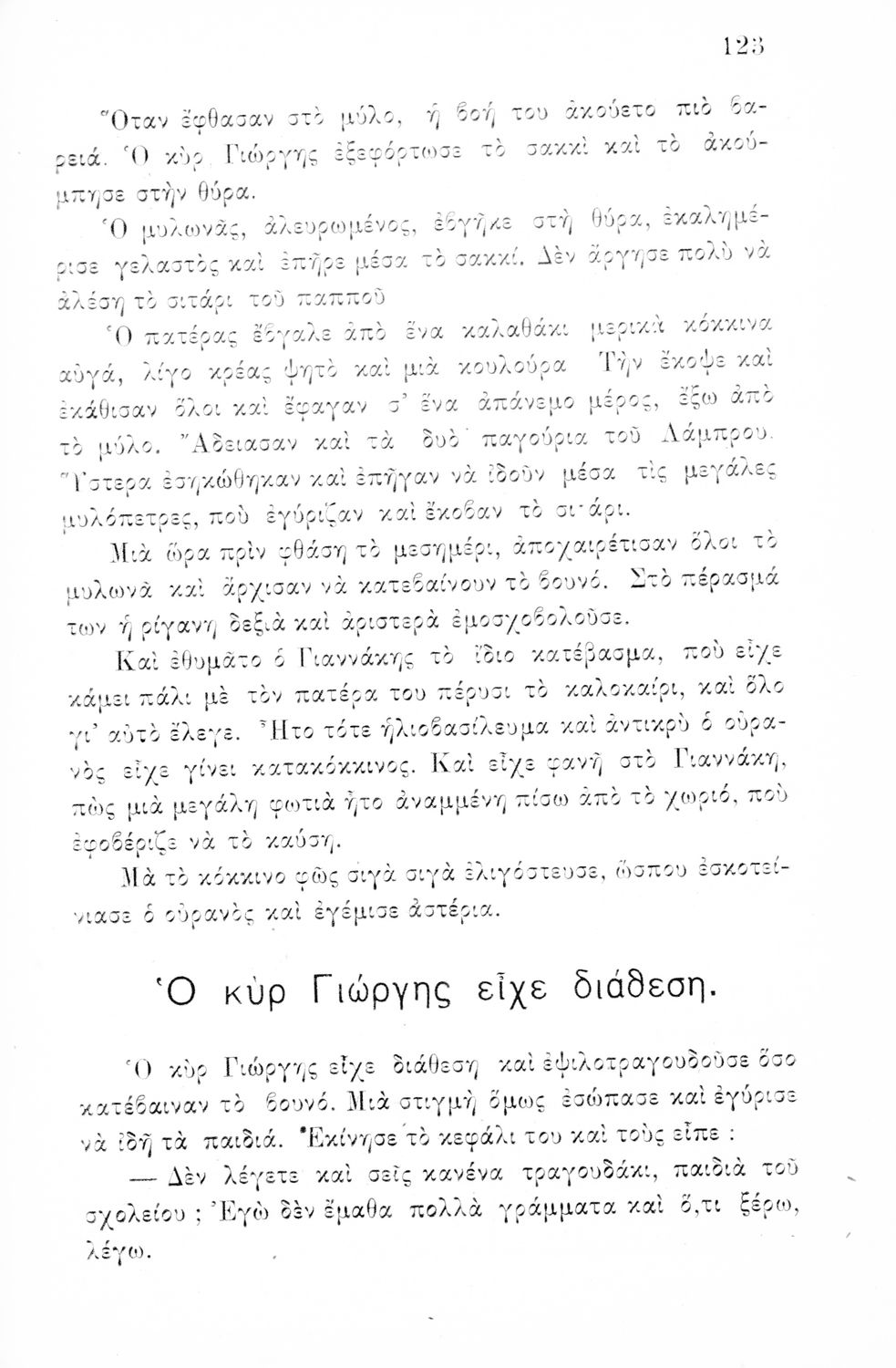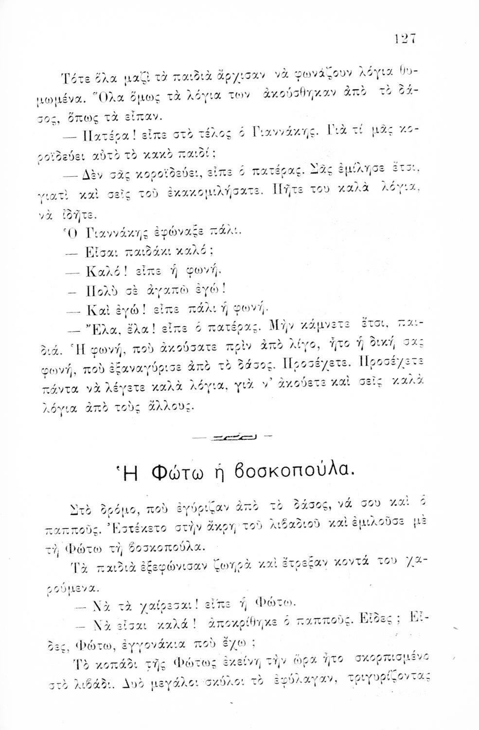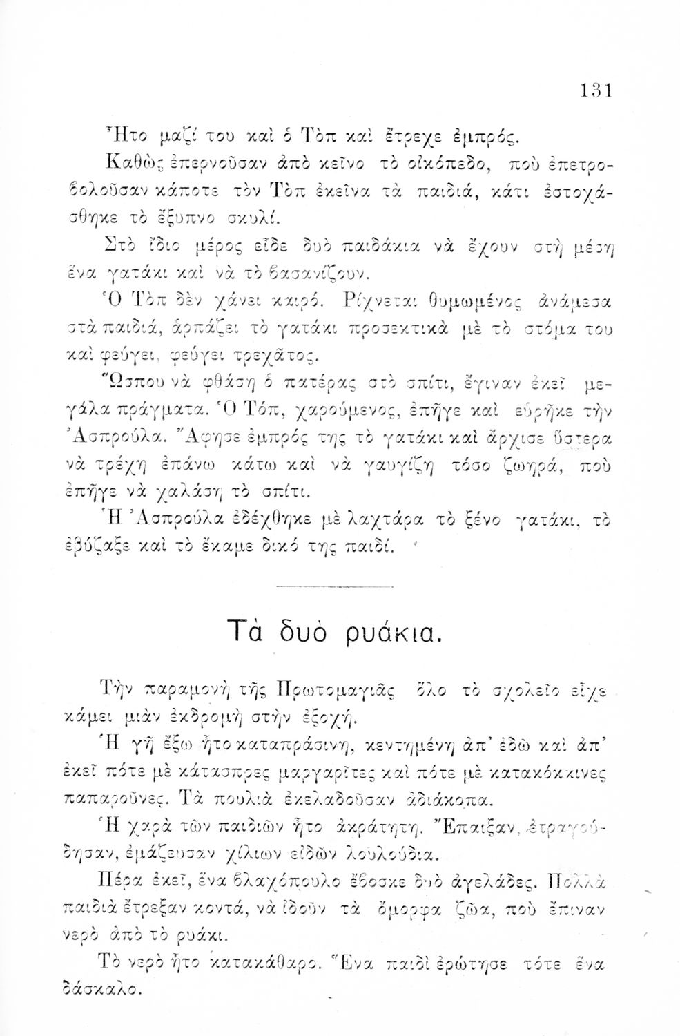 520 ## _aΑναγνωστικό Β΄ Δημοτικού που περιλαμβάνει πεζογραφήματα και ποιήματα από την οικογενειακή και την κοινωνική ζωή των παιδιών, από την ελληνική ύπαιθρο, από τις ελληνικές εορτές και από τις 4 εποχές του χρόνου. Διαφοροποιείται αισθητά από τα βιβλία της επόμενης περιόδου που εμμένουν αρκετά στο τρίπτυχο "Πατρίς-θρησκεία-οικογένεια".