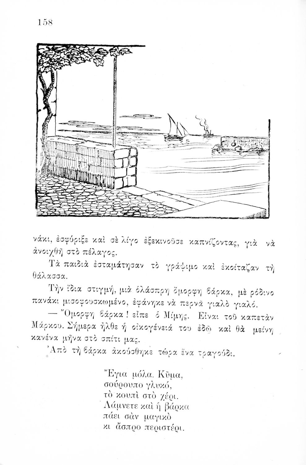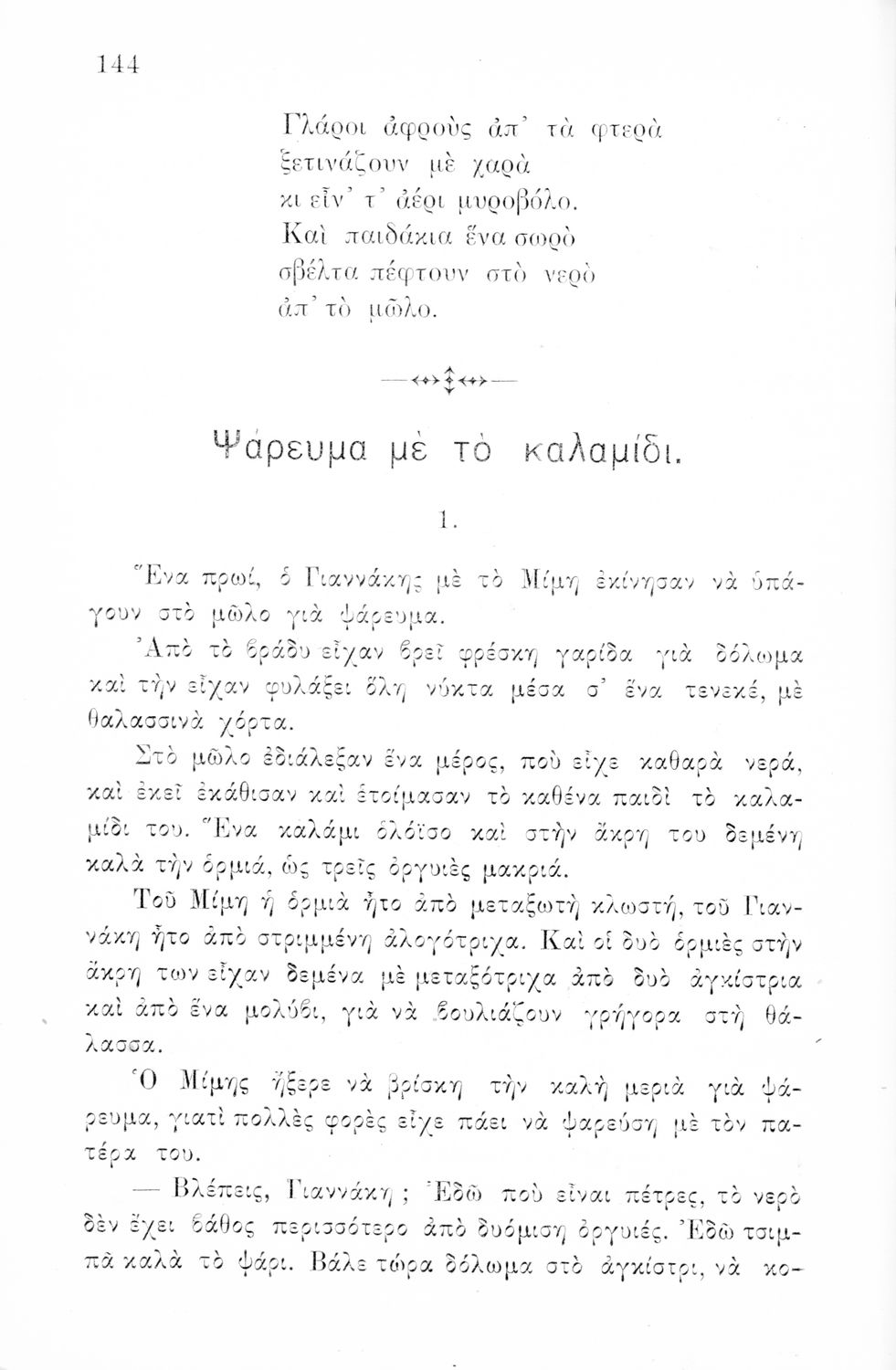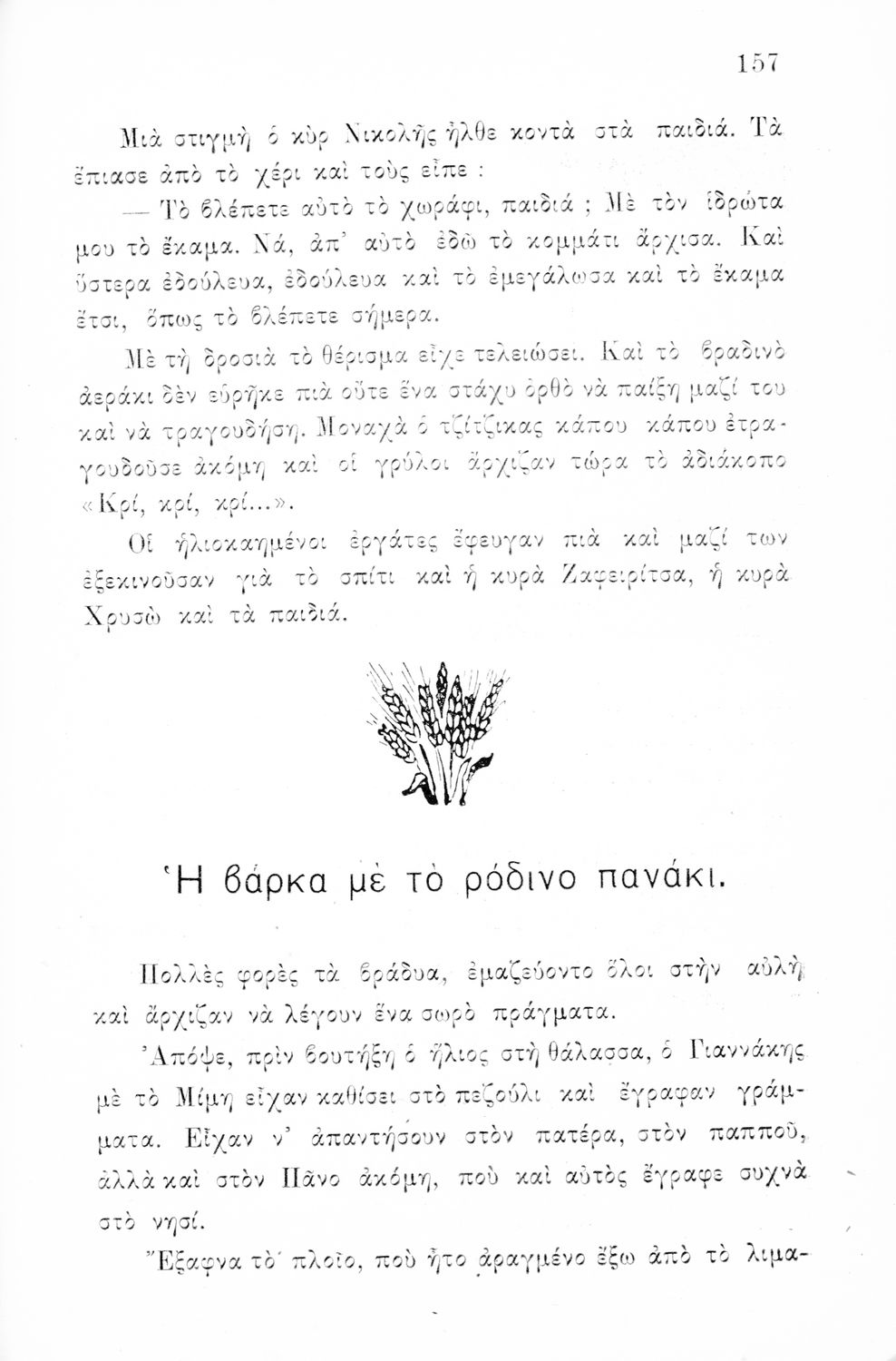 Αναγνωστικό Β΄ Δημοτικού που αποτελείται από πεζά γραμμένα σε καθαρεύουσα και ποιήματα σε δημοτική εμπνευσμένα από την οικογένεια, τη θρησκεία, την πατρίδα, την ελληνική φύση και ύπαιθρο, την αγάπη για τα ζώα,