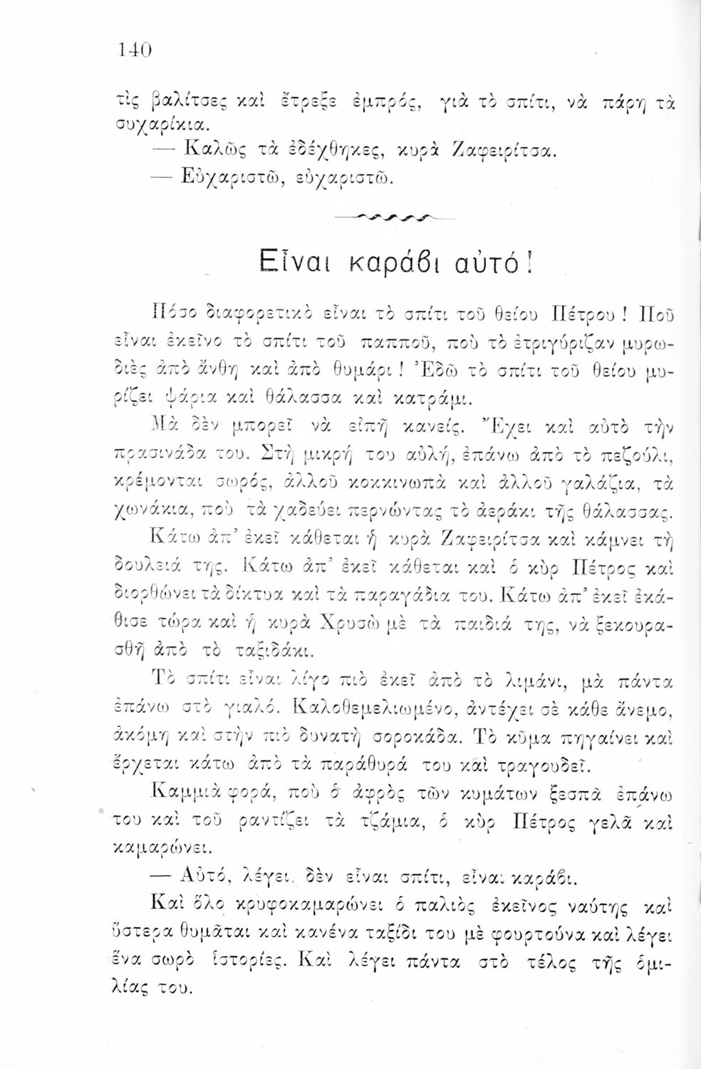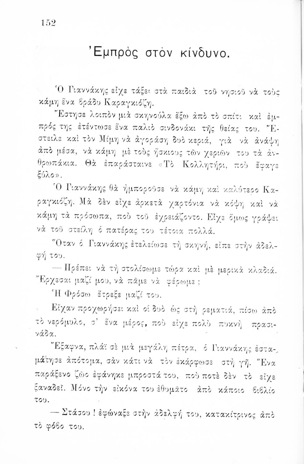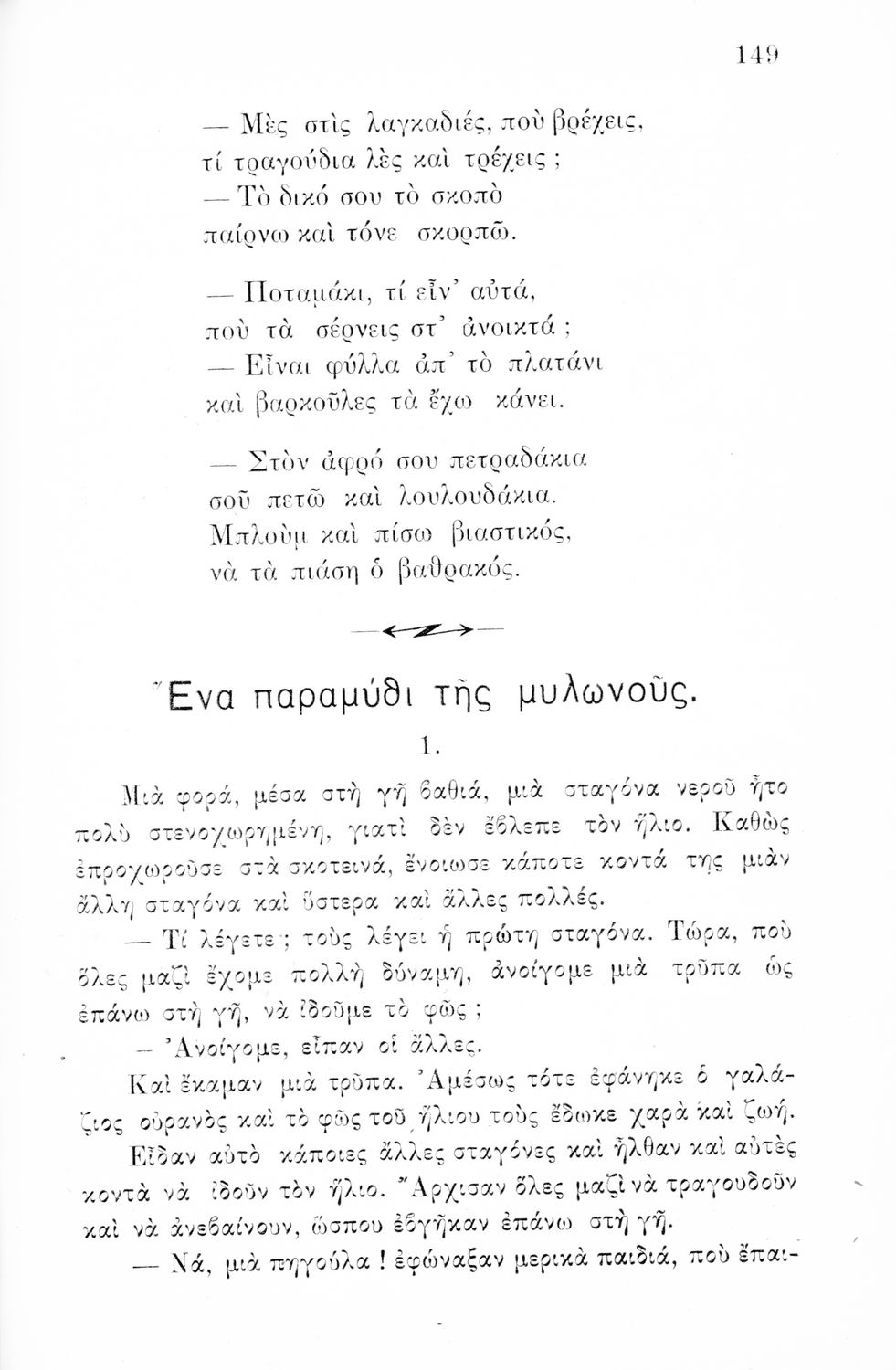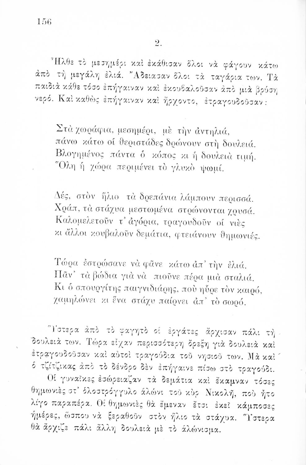 Αναγνωστικό Β΄ Δημοτικού που αποτελείται από πεζά γραμμένα σε καθαρεύουσα και ποιήματα σε δημοτική εμπνευσμένα από την οικογένεια, τη θρησκεία, την πατρίδα, την ελληνική φύση και ύπαιθρο, την αγάπη για τα ζώα,
