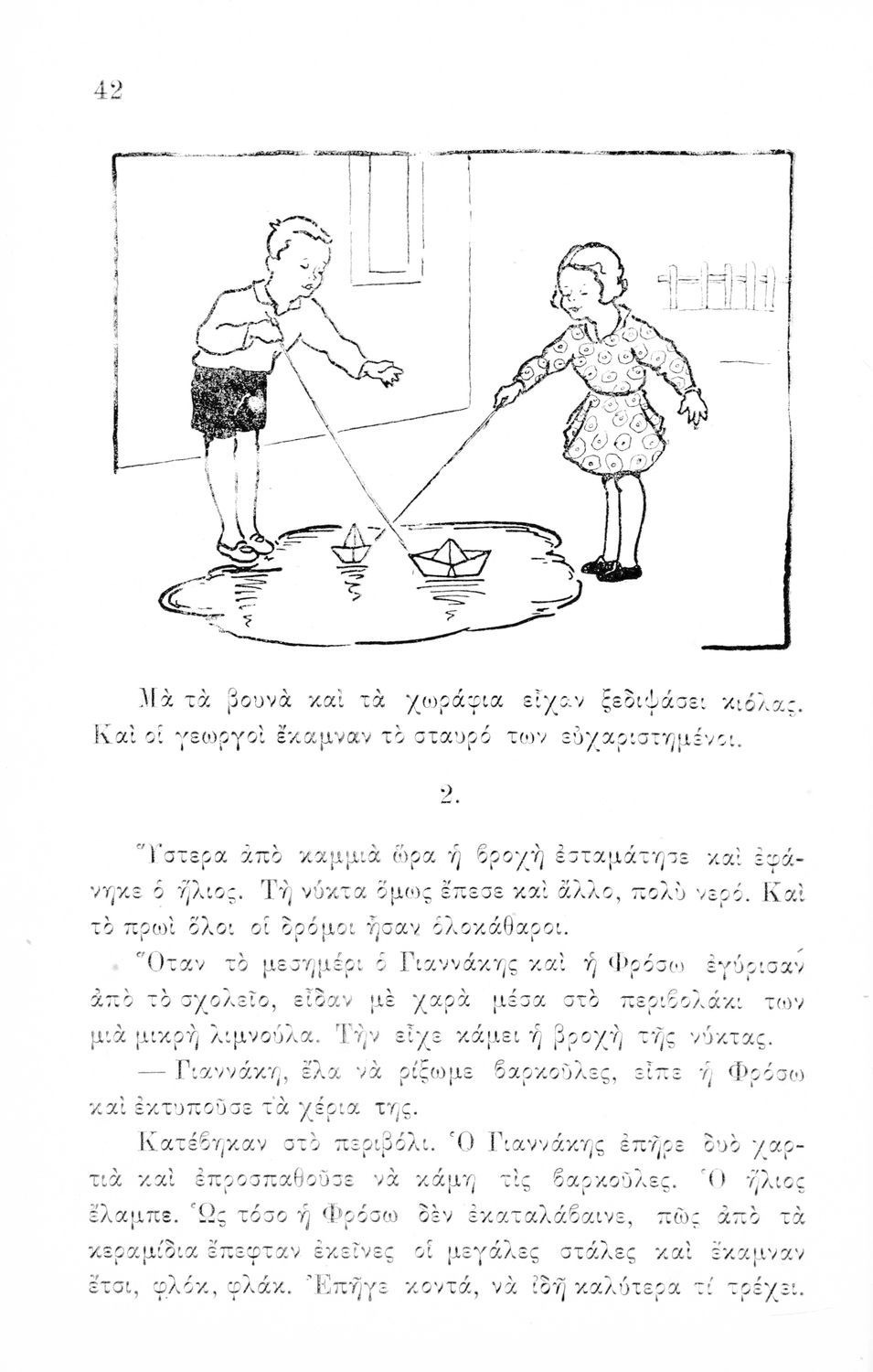 Αναγνωστικό Β΄ Δημοτικού που περιλαμβάνει πεζογραφήματα και ποιήματα από την οικογενειακή και την κοινωνική ζωή των παιδιών, από την ελληνική ύπαιθρο, από τις ελληνικές εορτές και από τις 4 εποχές του χρόνου. Διαφοροποιείται αισθητά από τα βιβλία της επόμενης περιόδου που εμμένουν αρκετά στο τρίπτυχο "Πατρίς-θρησκεία-οικογένεια".