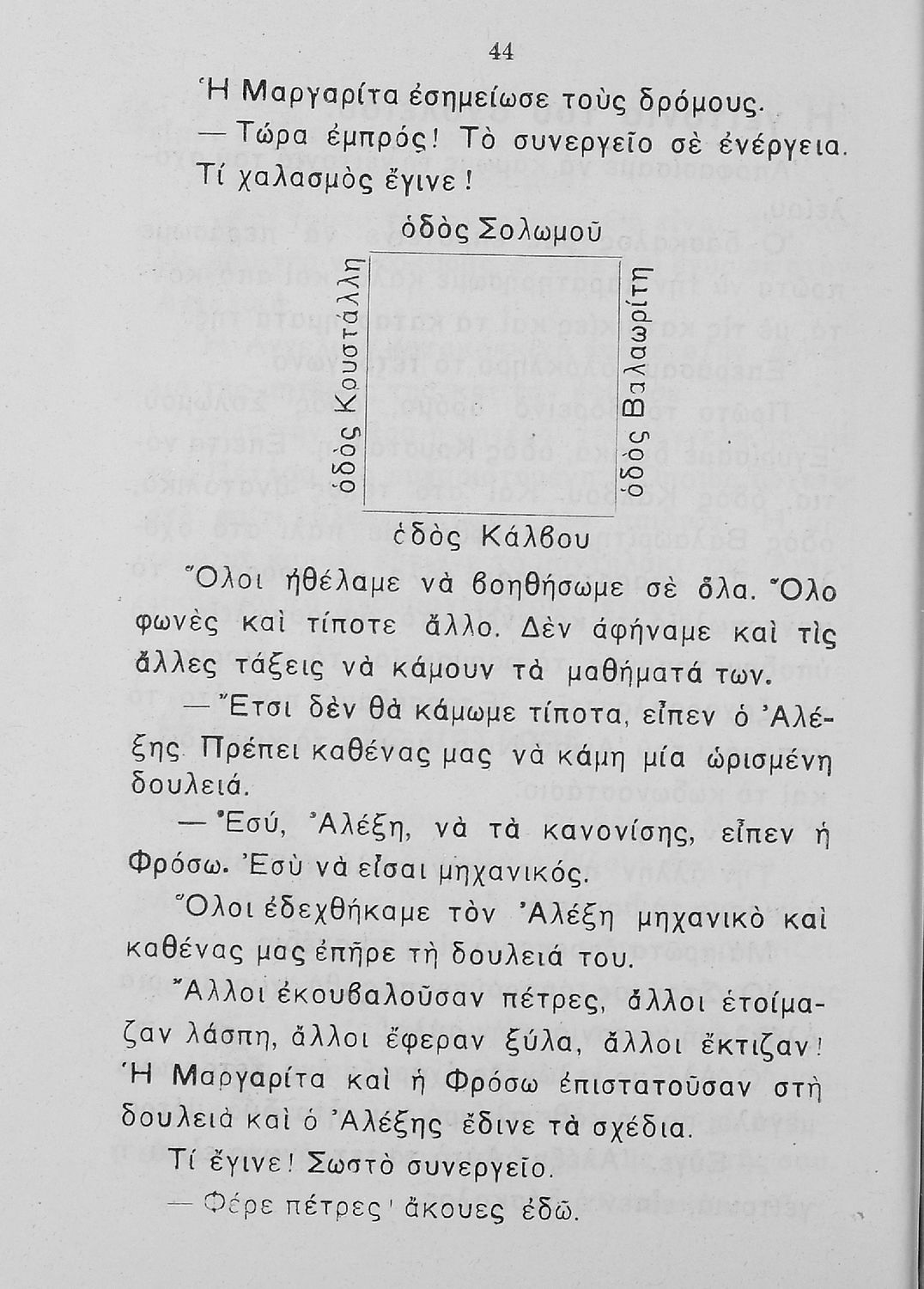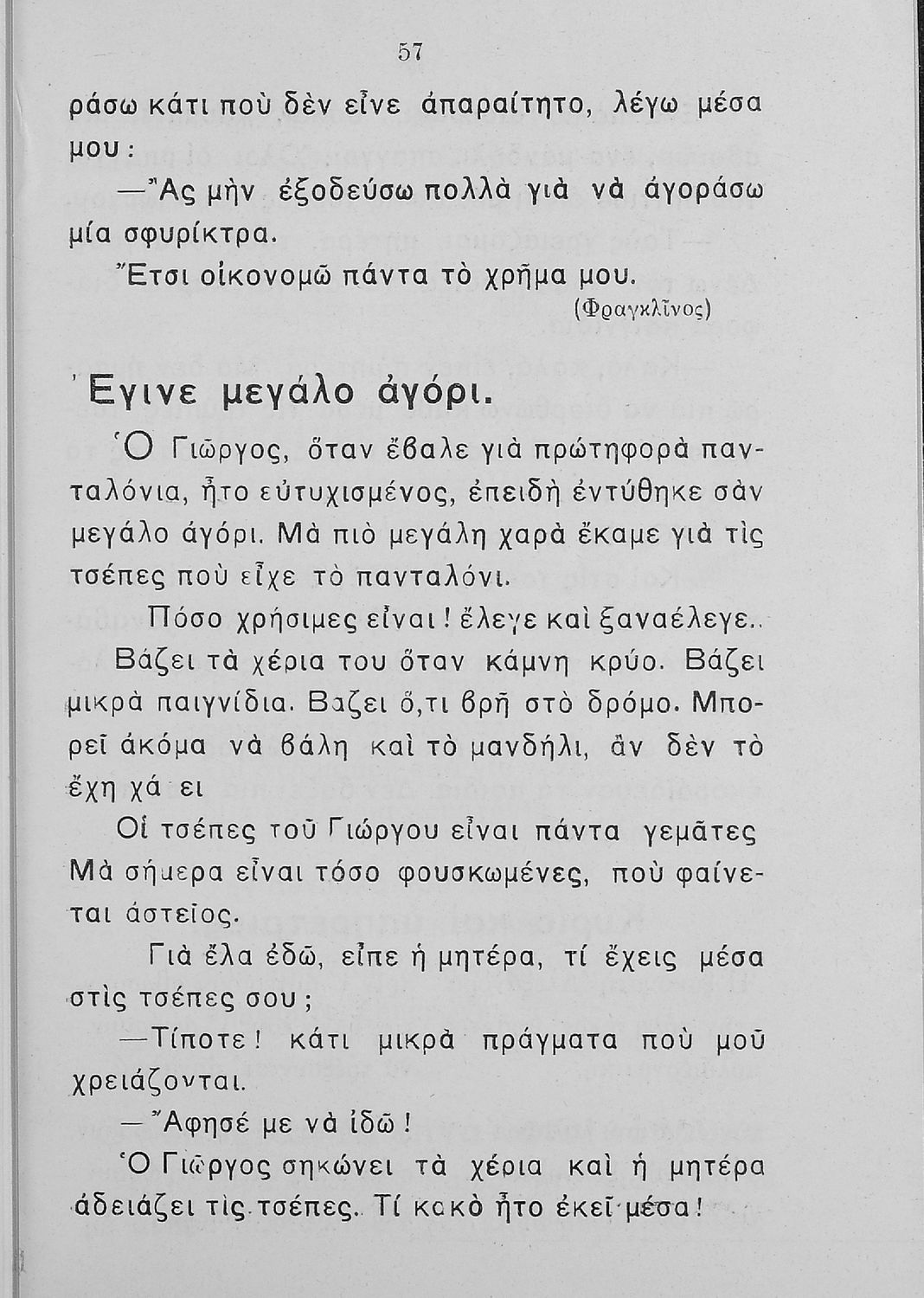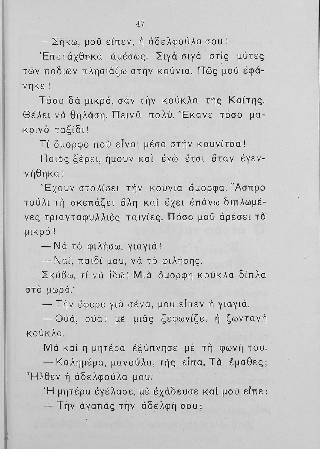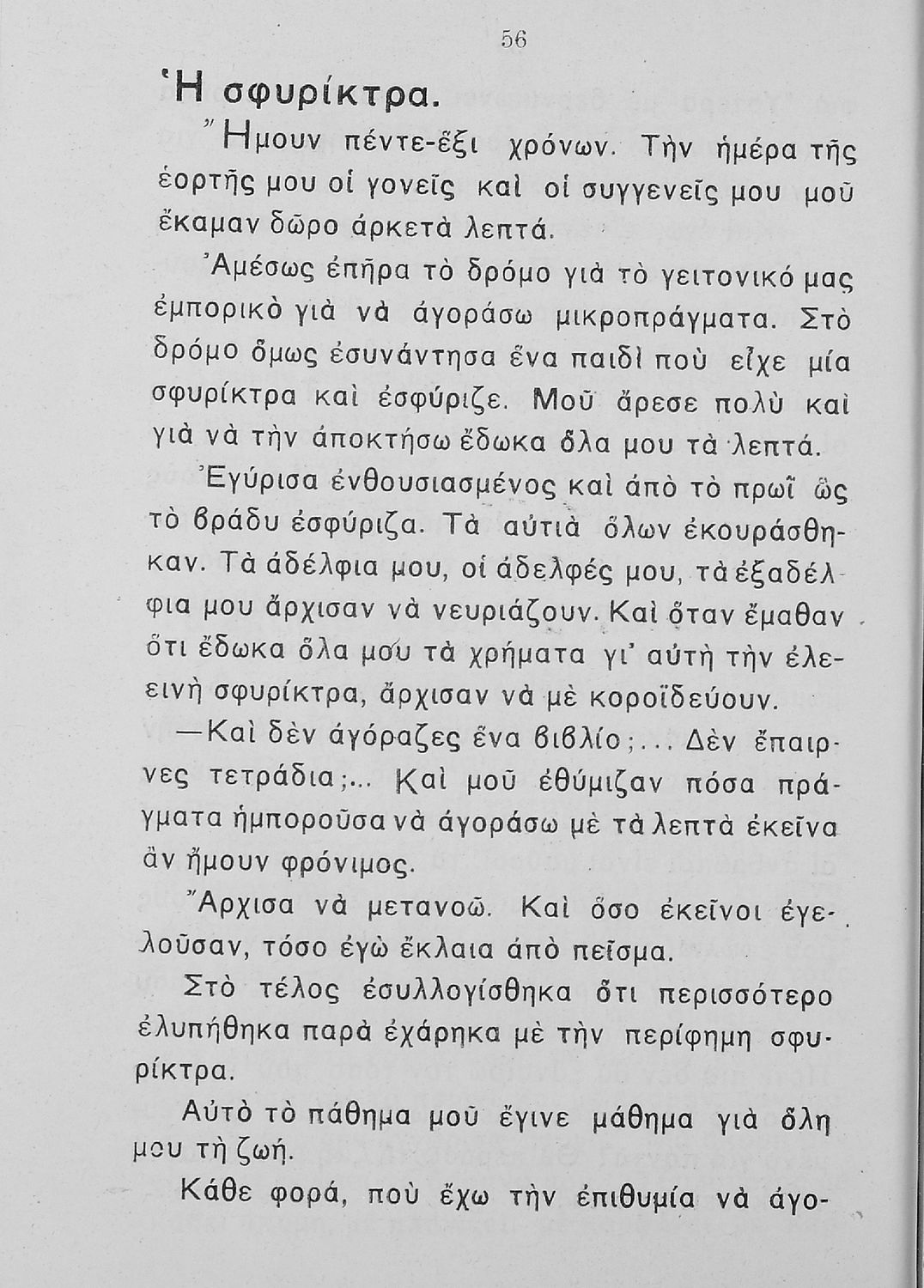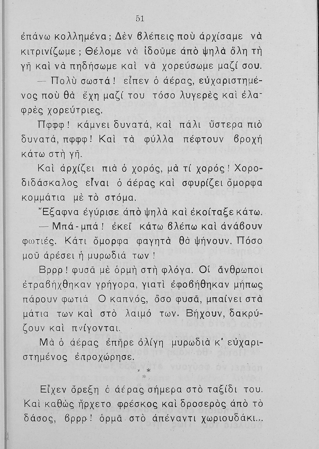 Αναγνωστικό Β΄ Δημοτικού που περιλαμβάνει πεζογραφήματα και ποιήματα από την οικογενειακή και την κοινωνική ζωή των παιδιών, από την ελληνική ύπαιθρο, από τις ελληνικές εορτές και από τις 4 εποχές του χρόνου. Διαφοροποιείται αισθητά από τα βιβλία της επόμενης περιόδου που εμμένουν αρκετά στο τρίπτυχο "Πατρίς-θρησκεία-οικογένεια".