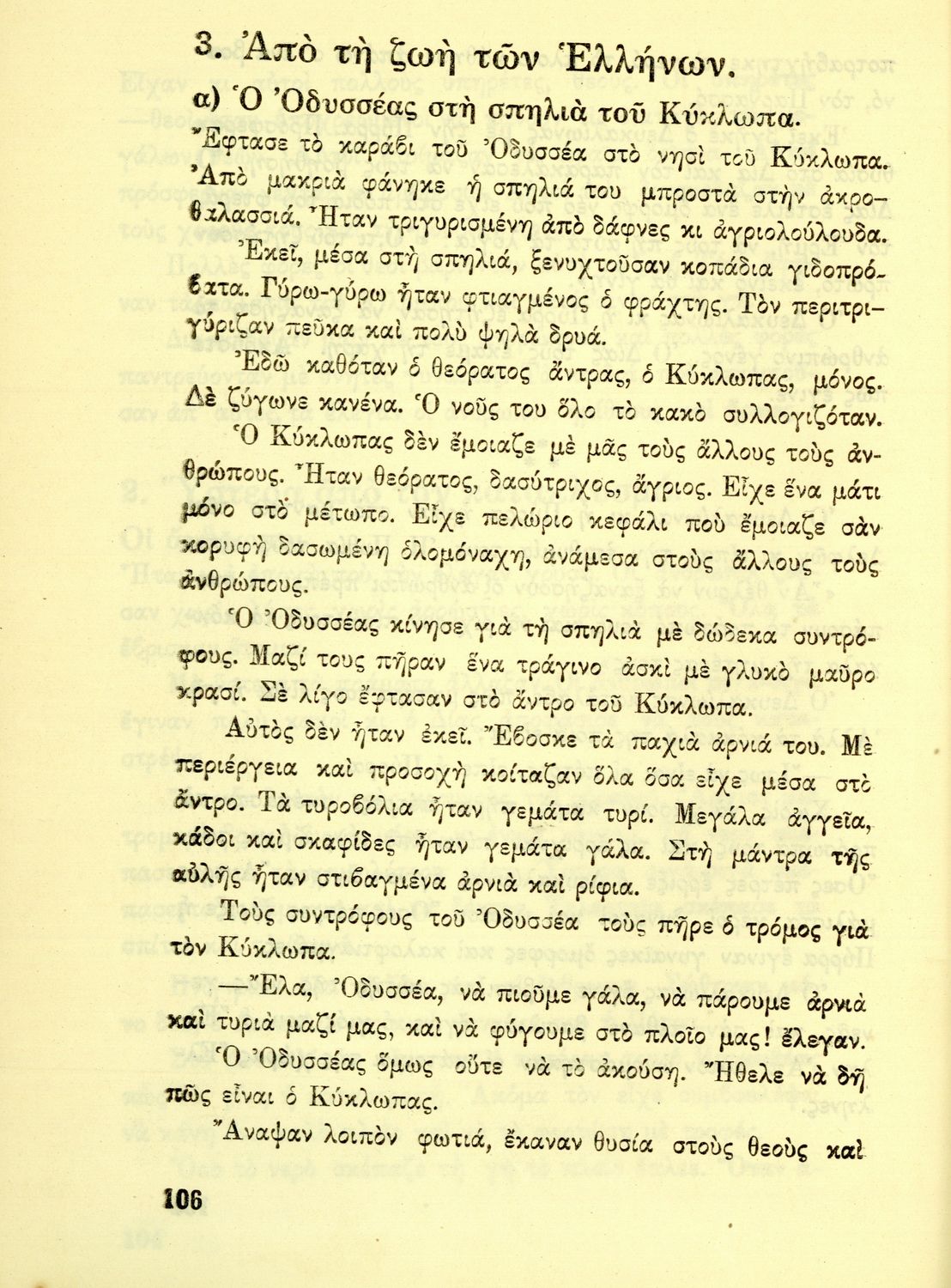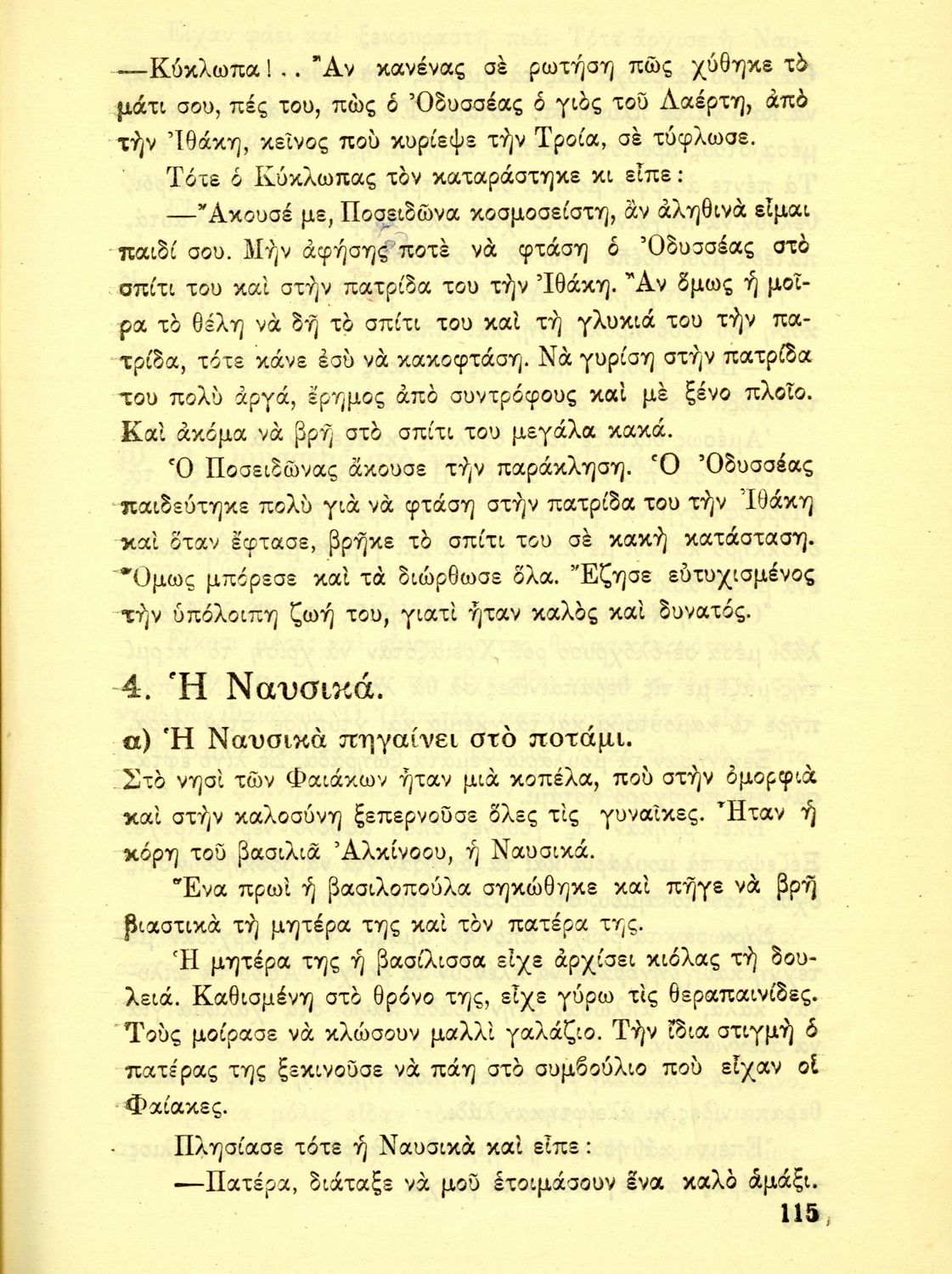 Αναγνωστικό Δ΄ Δημοτικού που περιλαμβάνει θέματα από την θρησκευτική, οικογενειακή και σχολική ζωή του παιδιού, την ελληνική μυθολογία και ιστορία και τη ζωή των ζώων.