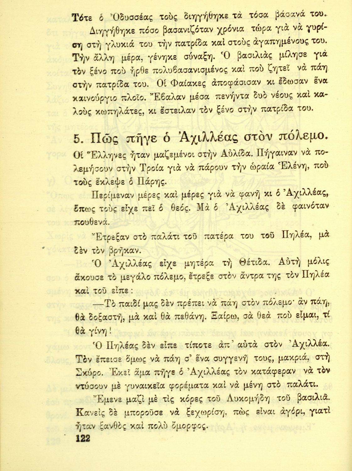 Αναγνωστικό Ε΄ Δημοτικού που περιέχει πεζά και ποιήματα εμπνευσμένα από τη θρησκευτική, εθνική, κοινωνική ζωή καθώς και από τις ασχολίες των Ελλήνων, την αρχαία και σύγχρονη ελληνική ιστορία και τον πολιτισμό.