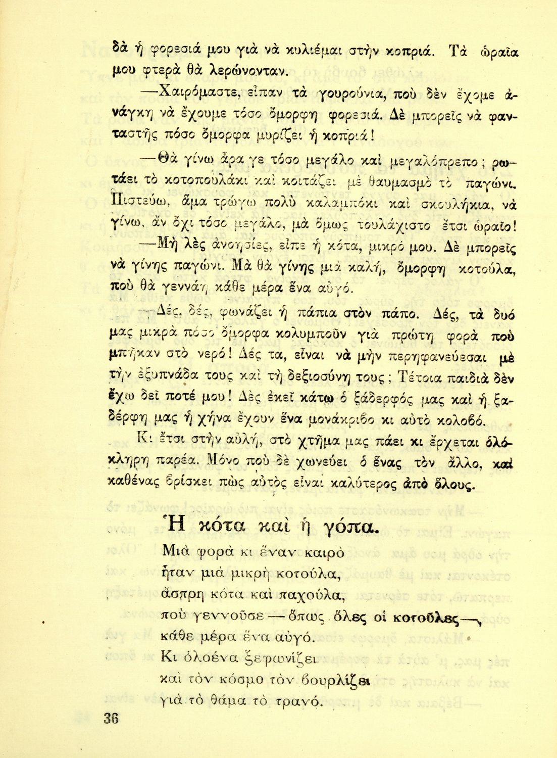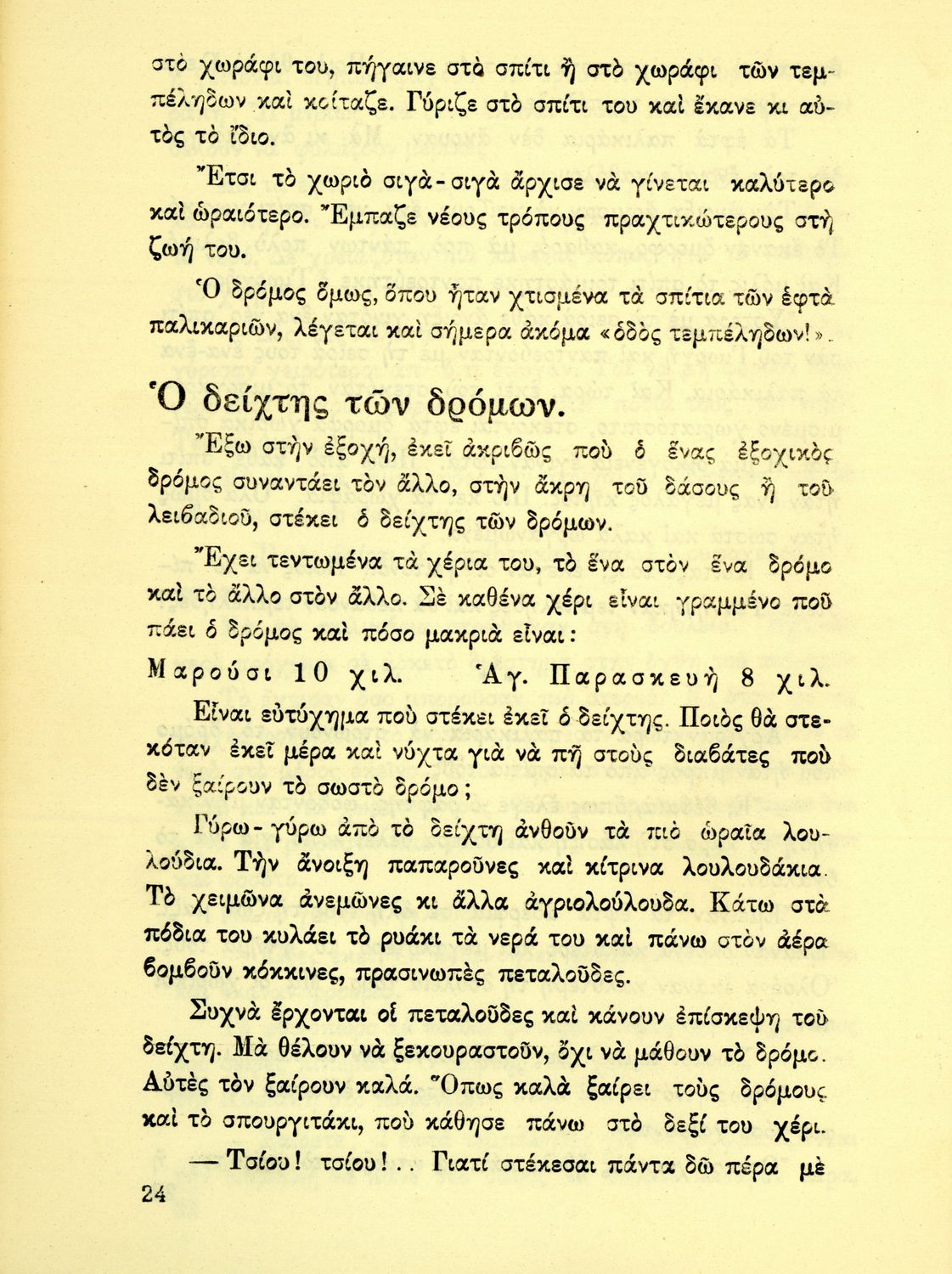 Αναγνωστικό Δ΄ Δημοτικού που περιλαμβάνει θέματα από την θρησκευτική, οικογενειακή και σχολική ζωή του παιδιού, την ελληνική μυθολογία και ιστορία και τη ζωή των ζώων.