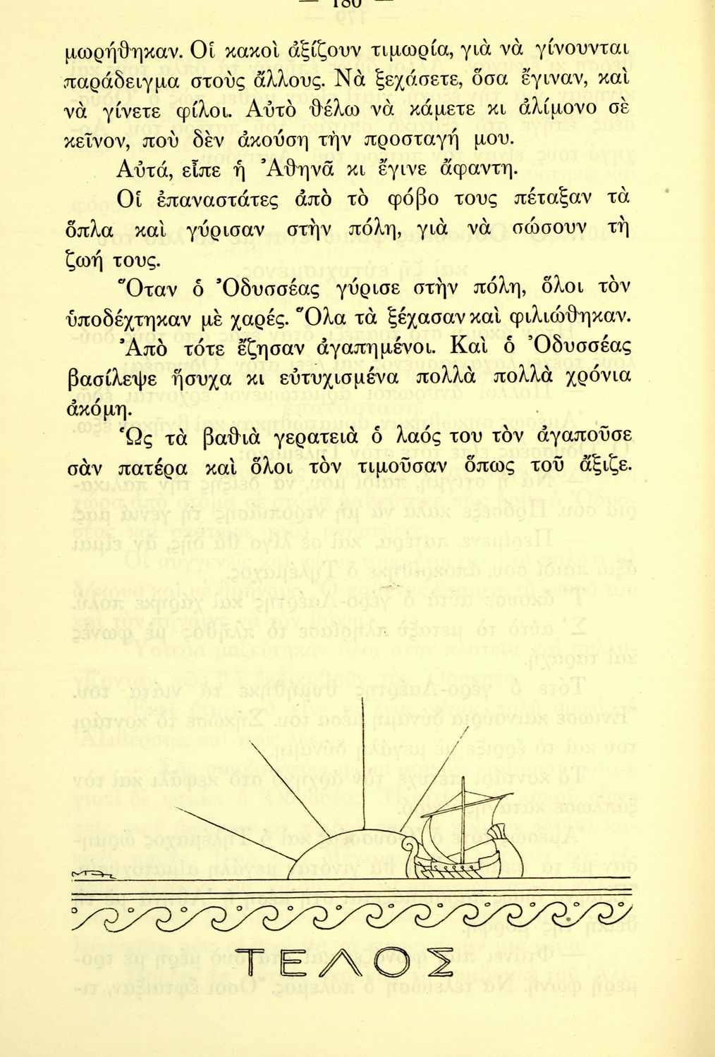 Αναγνωστικό Γ' Δημοτικού που εξιστορεί τις περιπέτειες του Οδυσσέα. Περιέχει παράρτημα με ποιήματα εμπνευσμένα από τον εθνικό, θρησκευτικό και κοινωνικό βίο, τα επαγγέλματα και τις καθημερινές ασχολίες, την αγάπη για την φύση και το περιβάλλον.