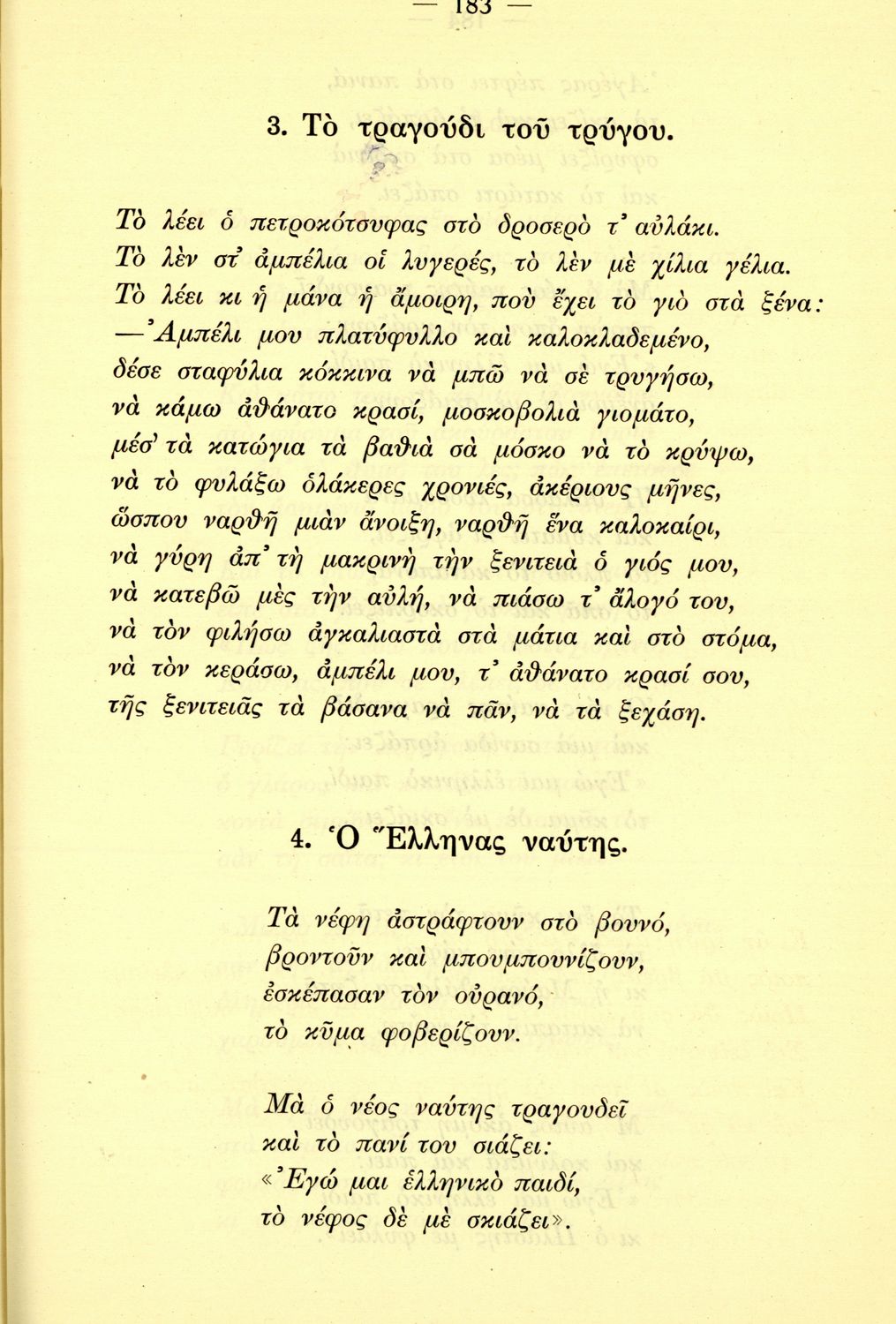 Σχολικό εγχειρίδιο Γλώσσας για τη Γ' Δημοτικού. Προοριζόταν για αναγνωστικό των μαθητών της Γ' Δημοτικού. Στο κείμενο υπάρχουν αριθμοί σε παρενθέσεις που παραπέμπουν σε ποιήματα και δημοτικά τραγούδια που ...