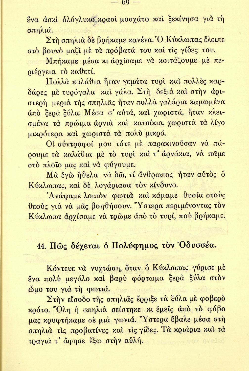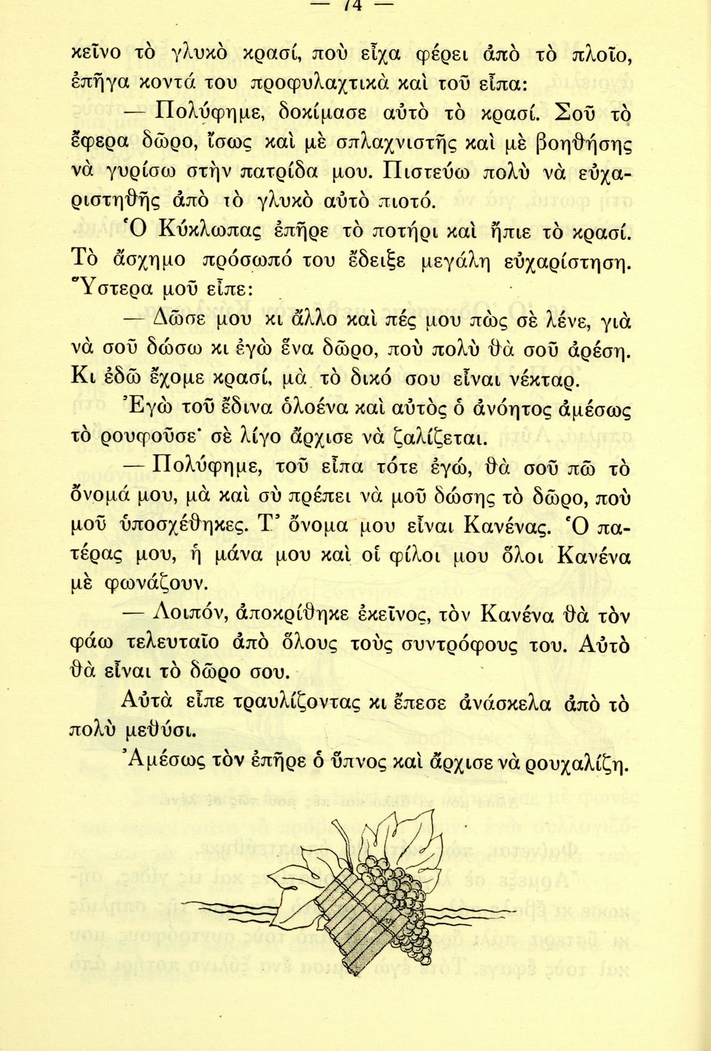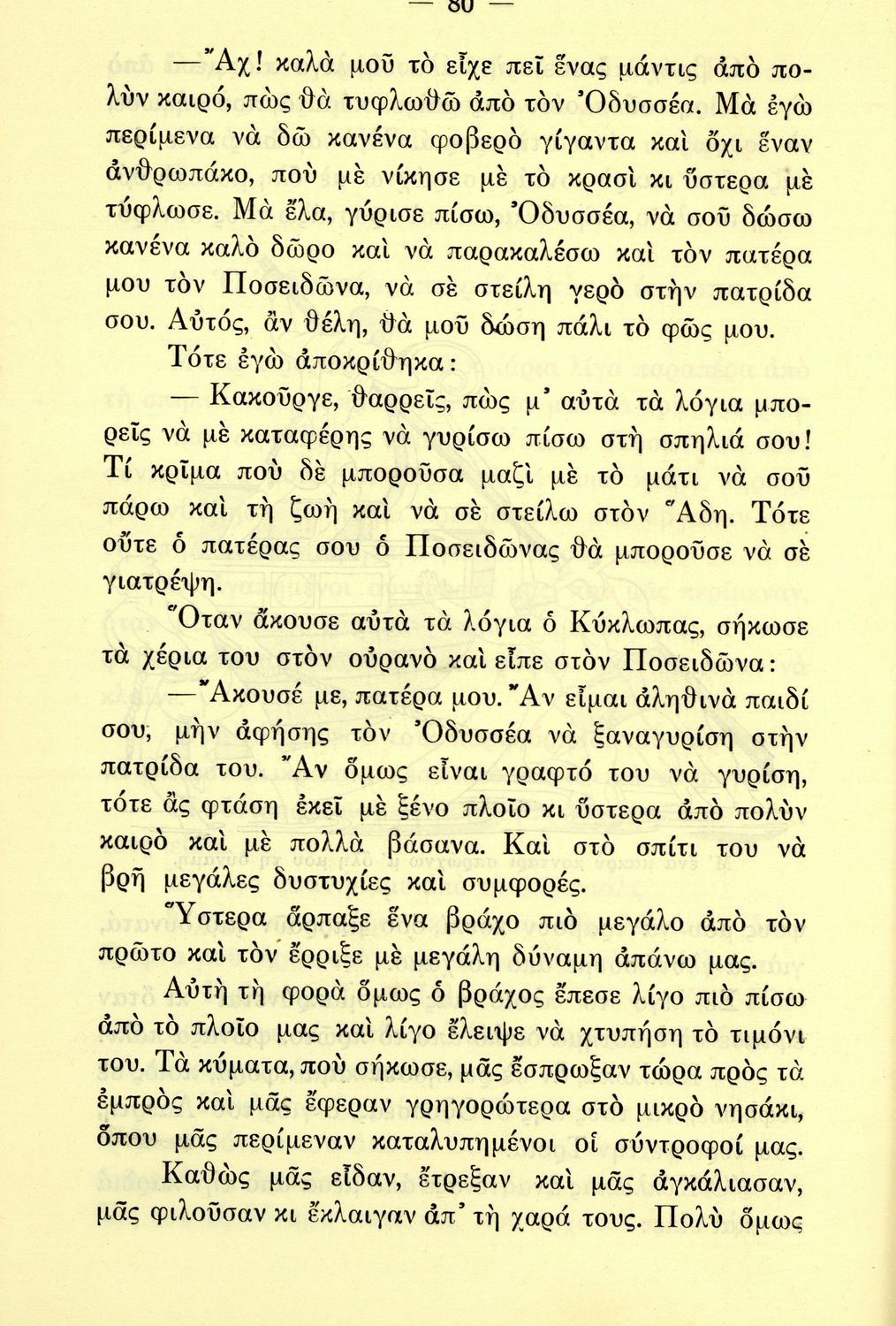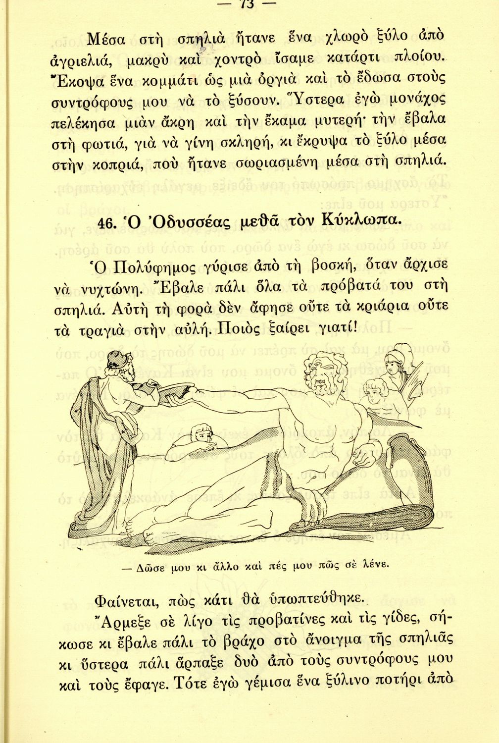 Αναγνωστικό Γ' Δημοτικού που εξιστορεί τις περιπέτειες του Οδυσσέα. Περιέχει παράρτημα με ποιήματα εμπνευσμένα από τον εθνικό, θρησκευτικό και κοινωνικό βίο, τα επαγγέλματα και τις καθημερινές ασχολίες, την αγάπη για την φύση και το περιβάλλον.