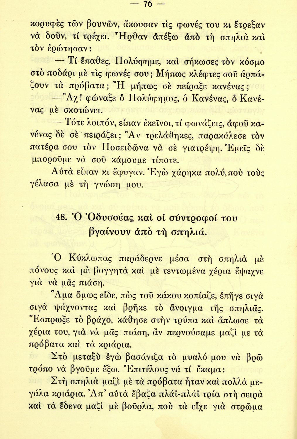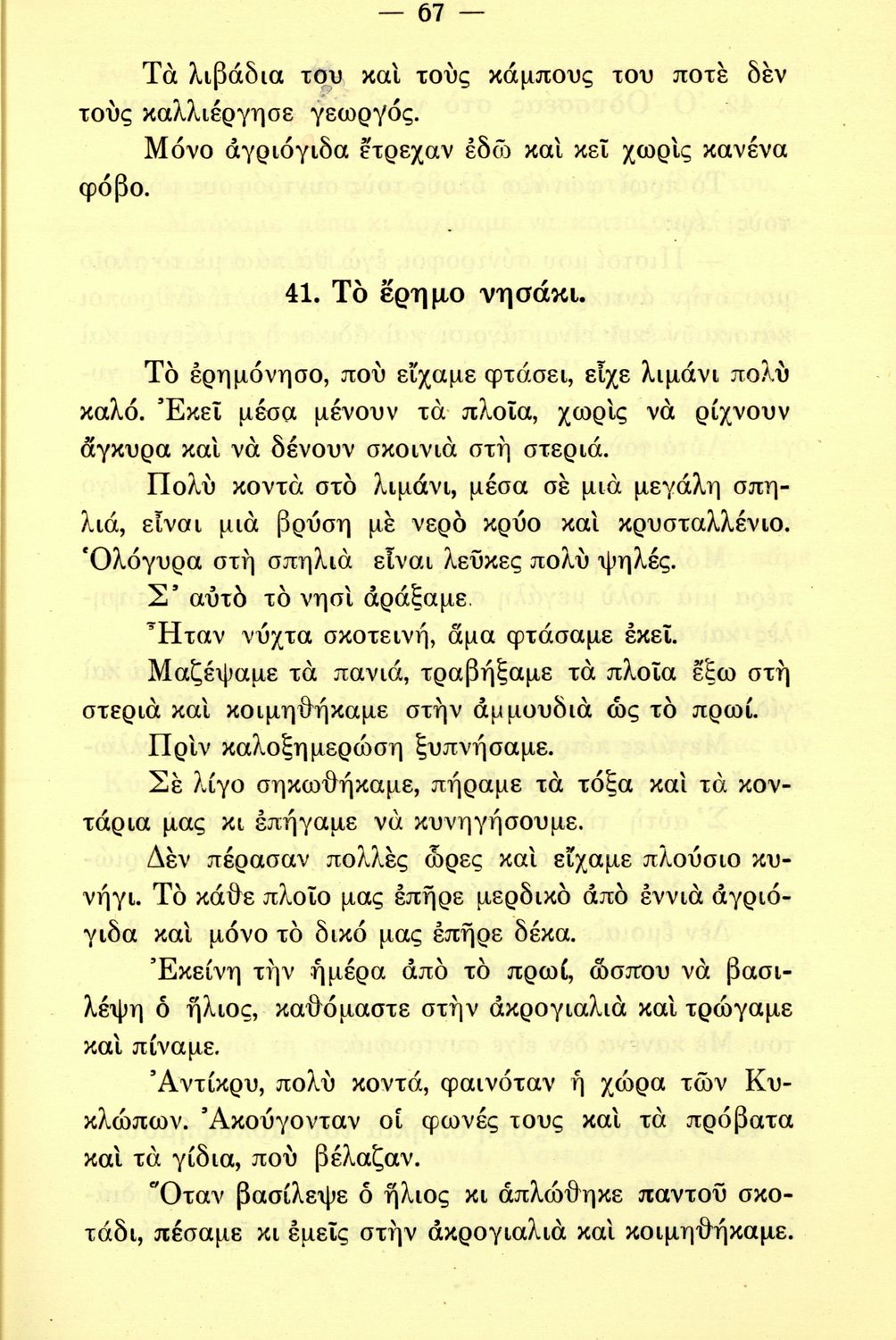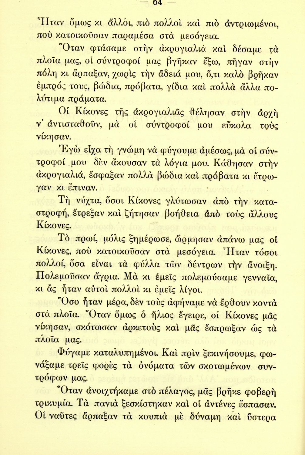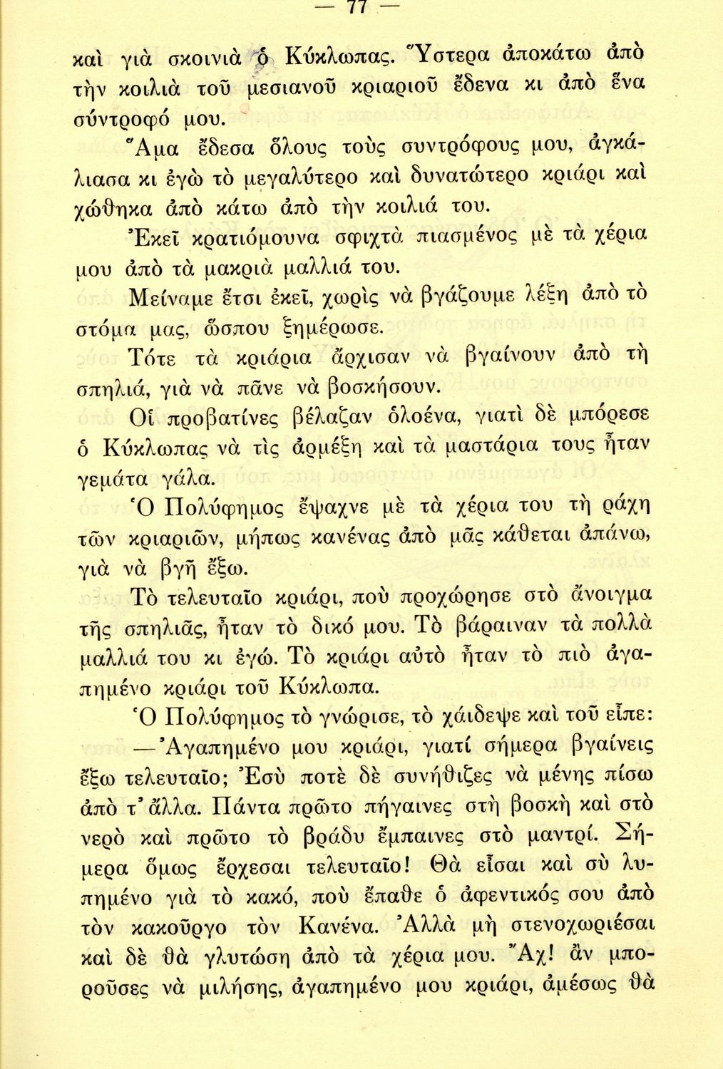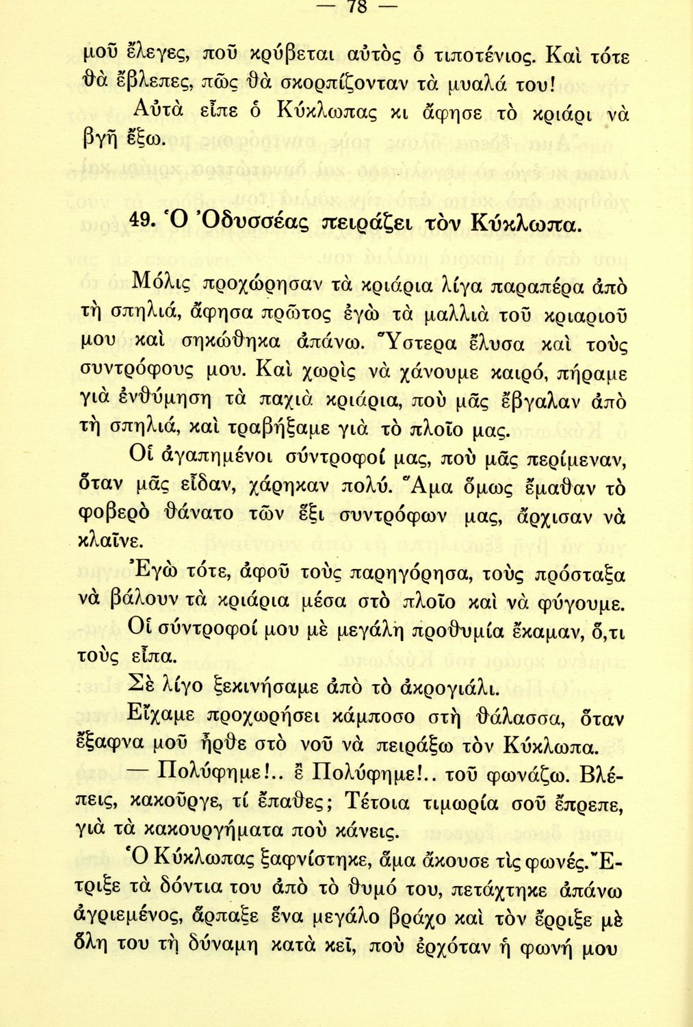 Αναγνωστικό Γ' Δημοτικού που εξιστορεί τις περιπέτειες του Οδυσσέα. Περιέχει παράρτημα με ποιήματα εμπνευσμένα από τον εθνικό, θρησκευτικό και κοινωνικό βίο, τα επαγγέλματα και τις καθημερινές ασχολίες, την αγάπη για την φύση και το περιβάλλον.