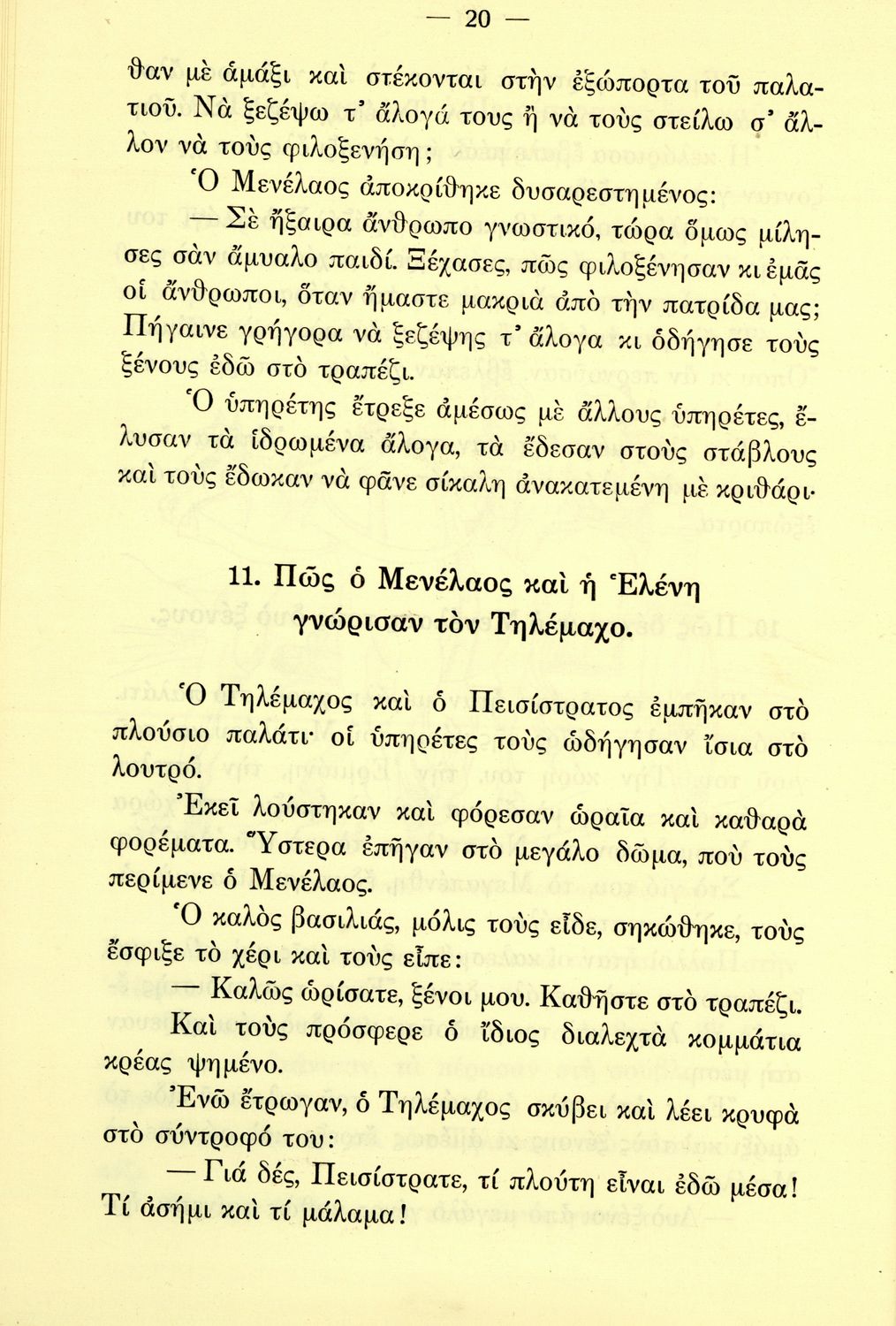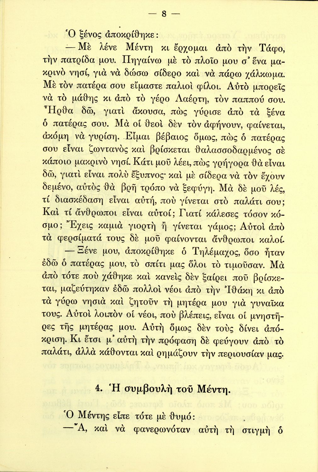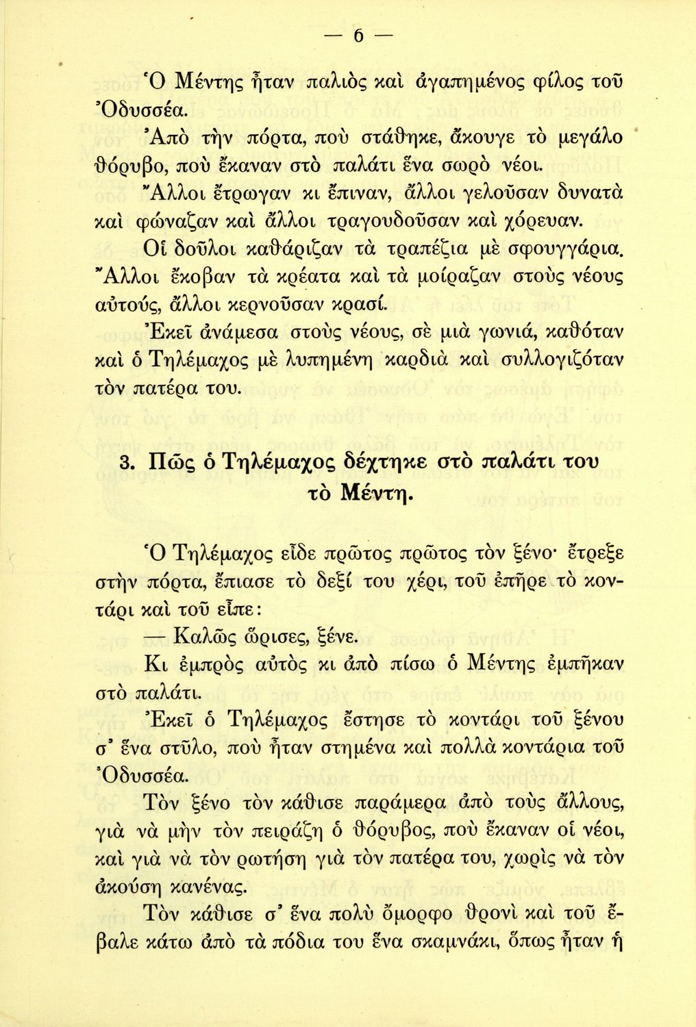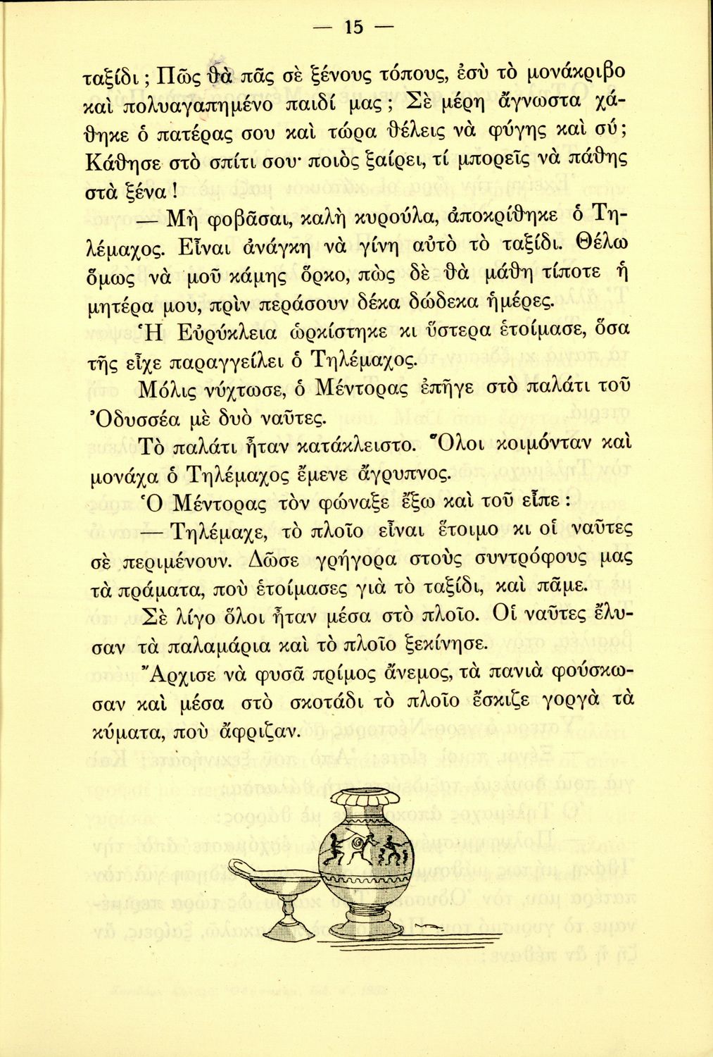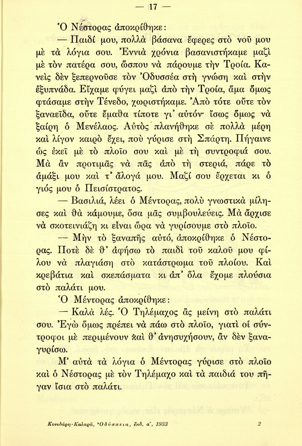 Αναγνωστικό Γ' Δημοτικού που εξιστορεί τις περιπέτειες του Οδυσσέα. Περιέχει παράρτημα με ποιήματα εμπνευσμένα από τον εθνικό, θρησκευτικό και κοινωνικό βίο, τα επαγγέλματα και τις καθημερινές ασχολίες, την αγάπη για την φύση και το περιβάλλον.