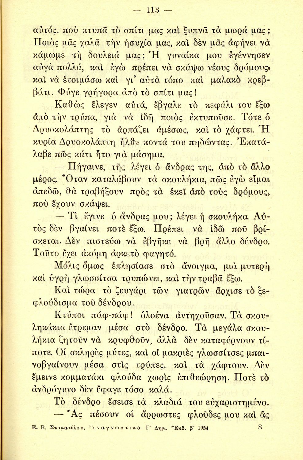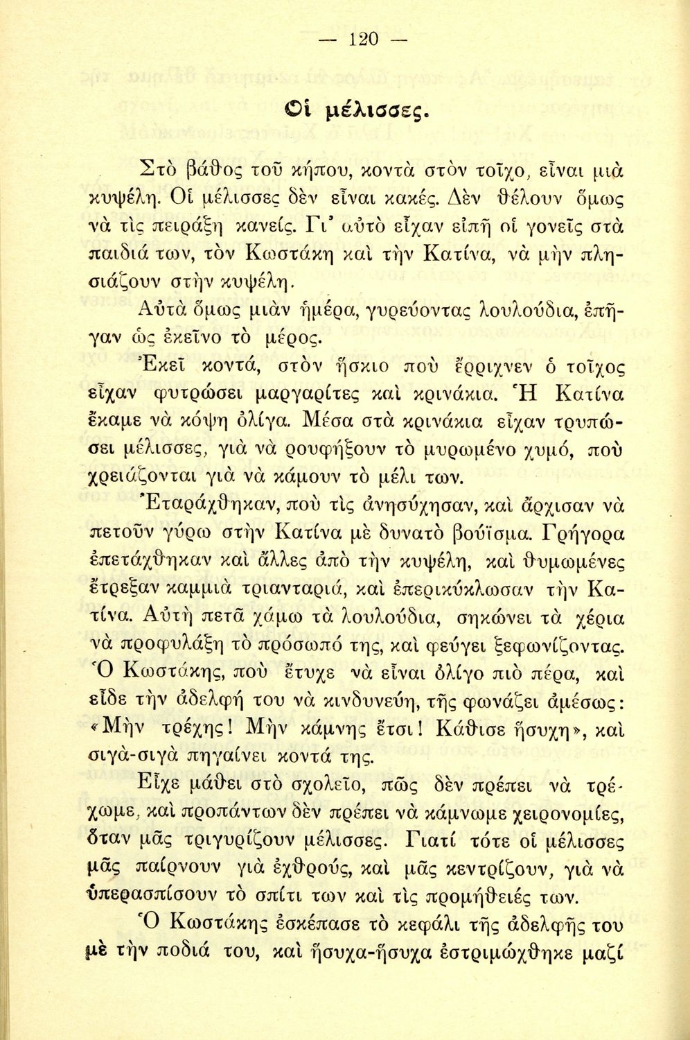 Αναγνωστικό Γ΄ Δημοτικού που περιλαμβάνει ποιήματα και πεζά με θέματα όπως η καλή και κακή συναναστροφή, η φρόνηση, η οκνηρία, η φιλανθρωπία και η πίστη στο Θεό