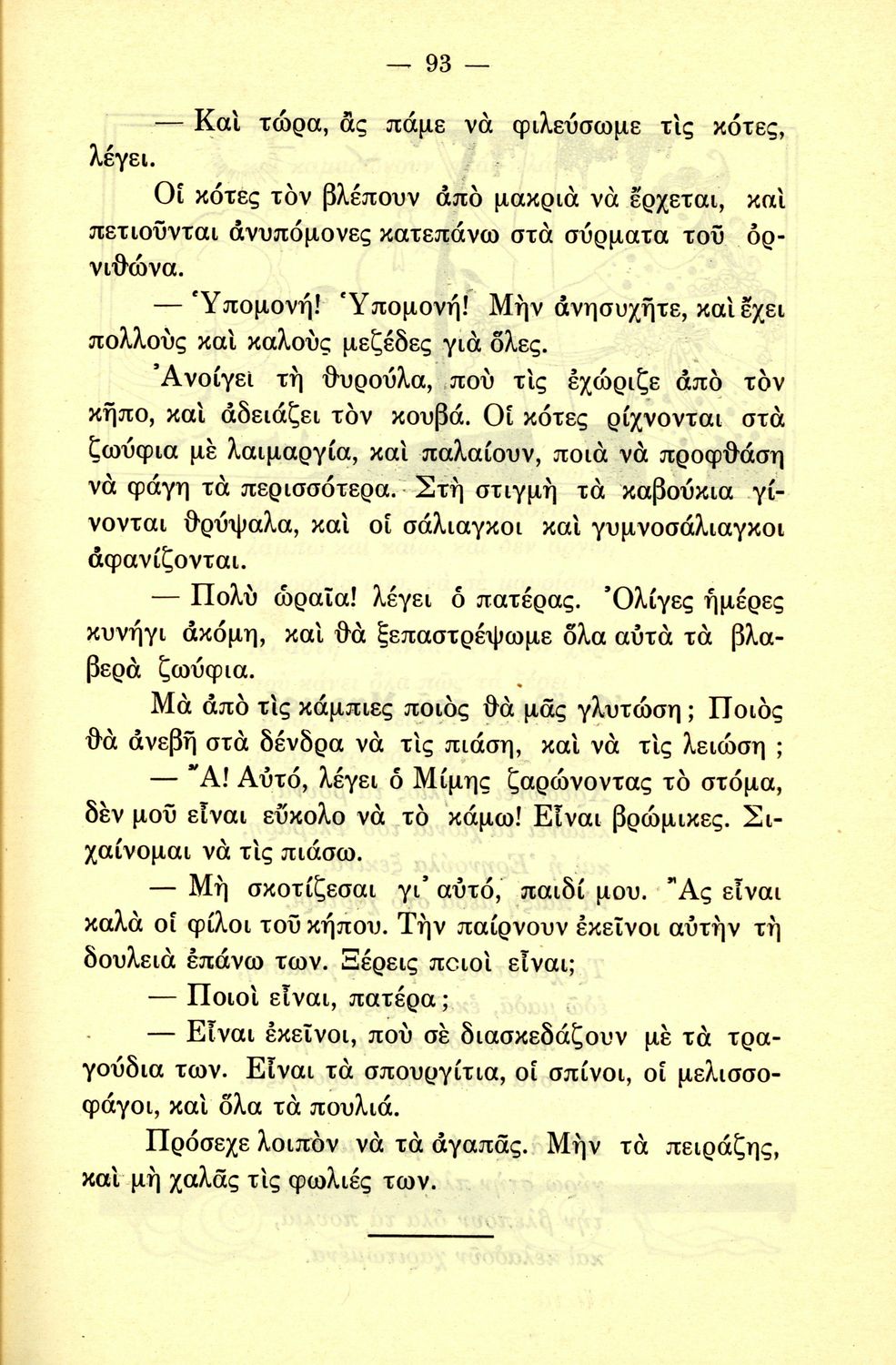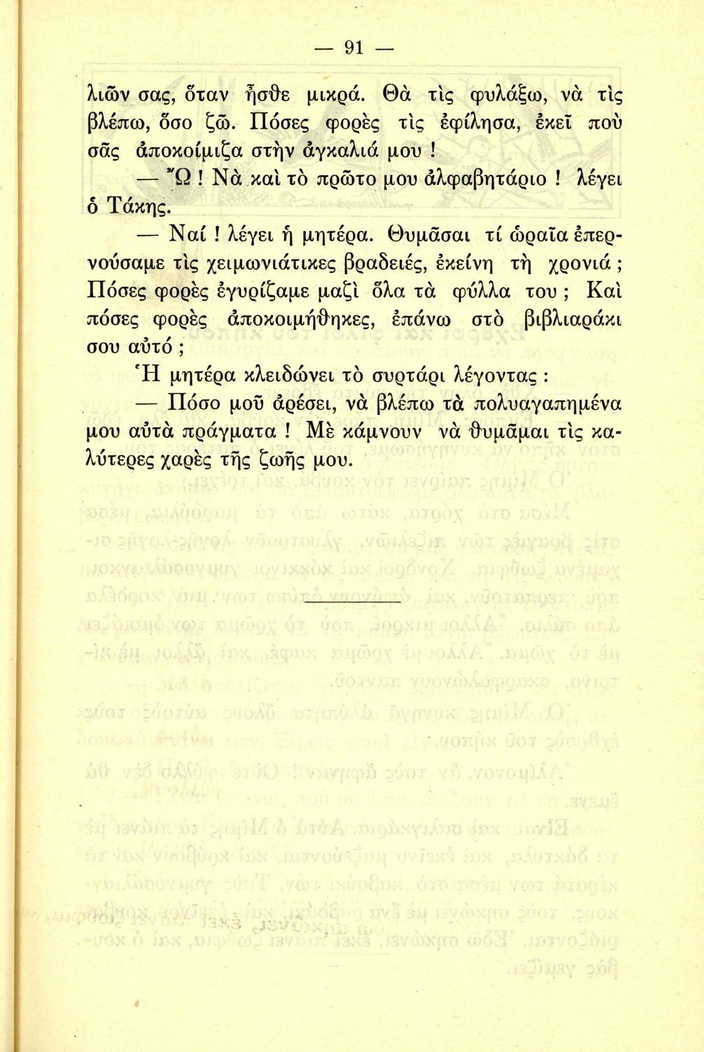 Αναγνωστικό Γ΄ Δημοτικού που περιλαμβάνει ποιήματα και πεζά με θέματα όπως η καλή και κακή συναναστροφή, η φρόνηση, η οκνηρία, η φιλανθρωπία και η πίστη στο Θεό