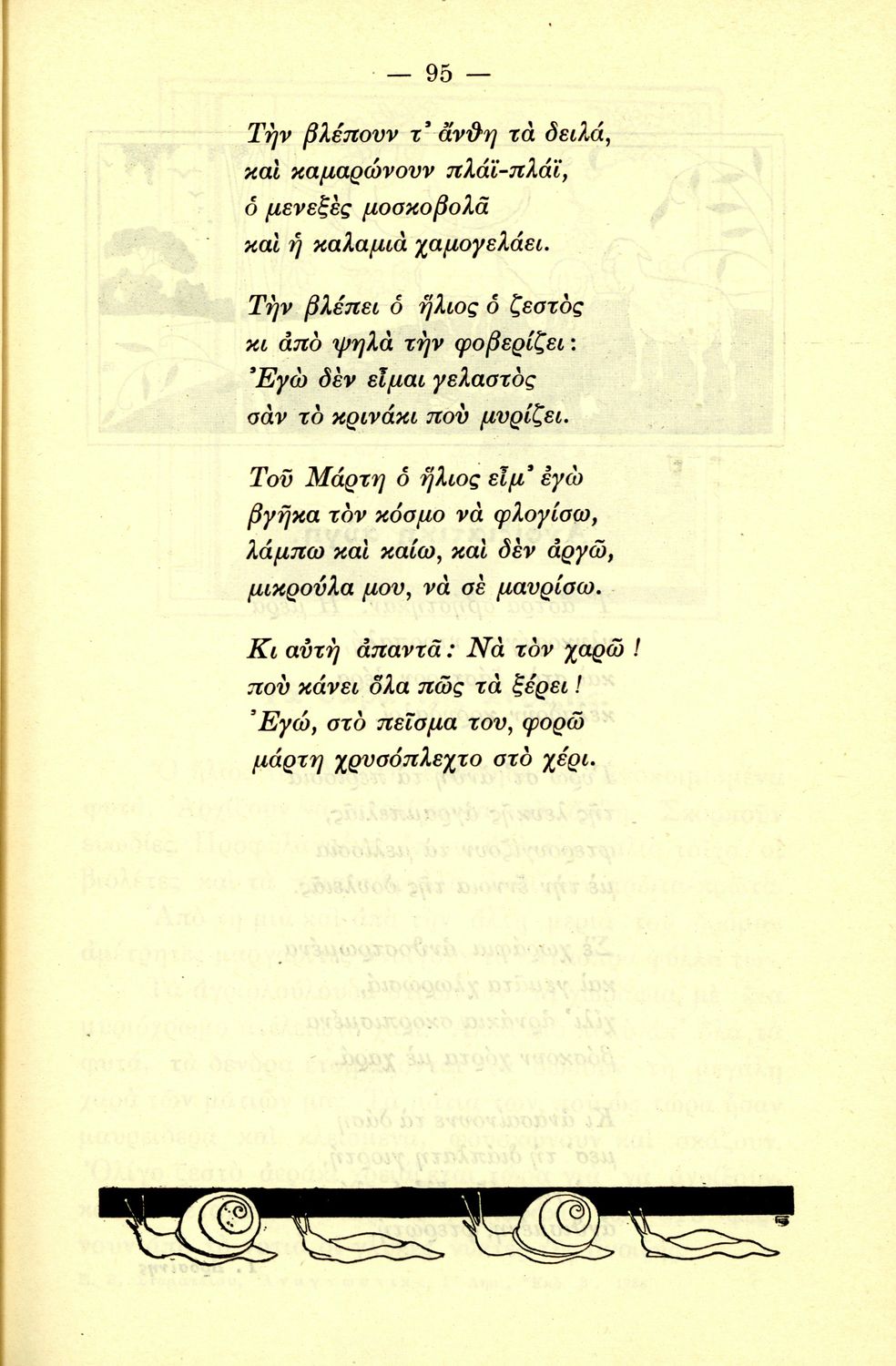 Αναγνωστικό Γ' Δημοτικού που περιλαμβάνει ποιήματα και πεζά με θέματα από την καθημερινή ζωή των Ελλήνων και την μυθολογία τους.