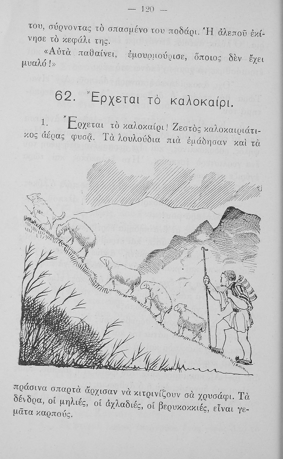 Αναγνωστικό Γ' Δημοτικού που περιέχει πεζά και ποιήματα ηθικοπλαστικού περιεχομένου εμπνευσμένα από την ελληνική φύση, την αρχαία ελληνική μυθολογία και ιστορία και τη θρησκευτική παράδοση,