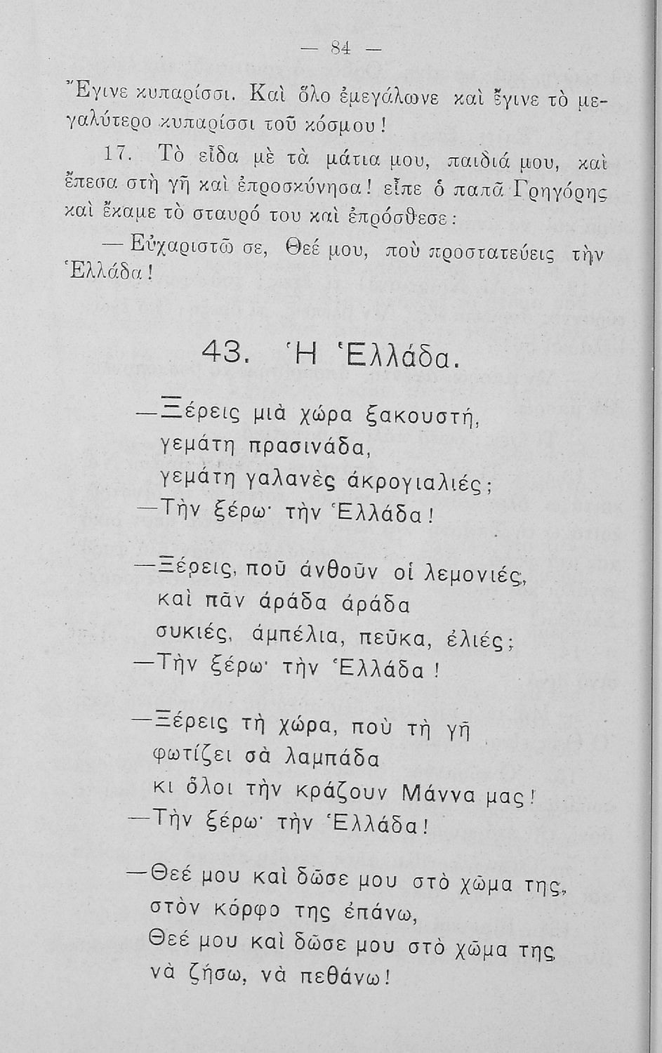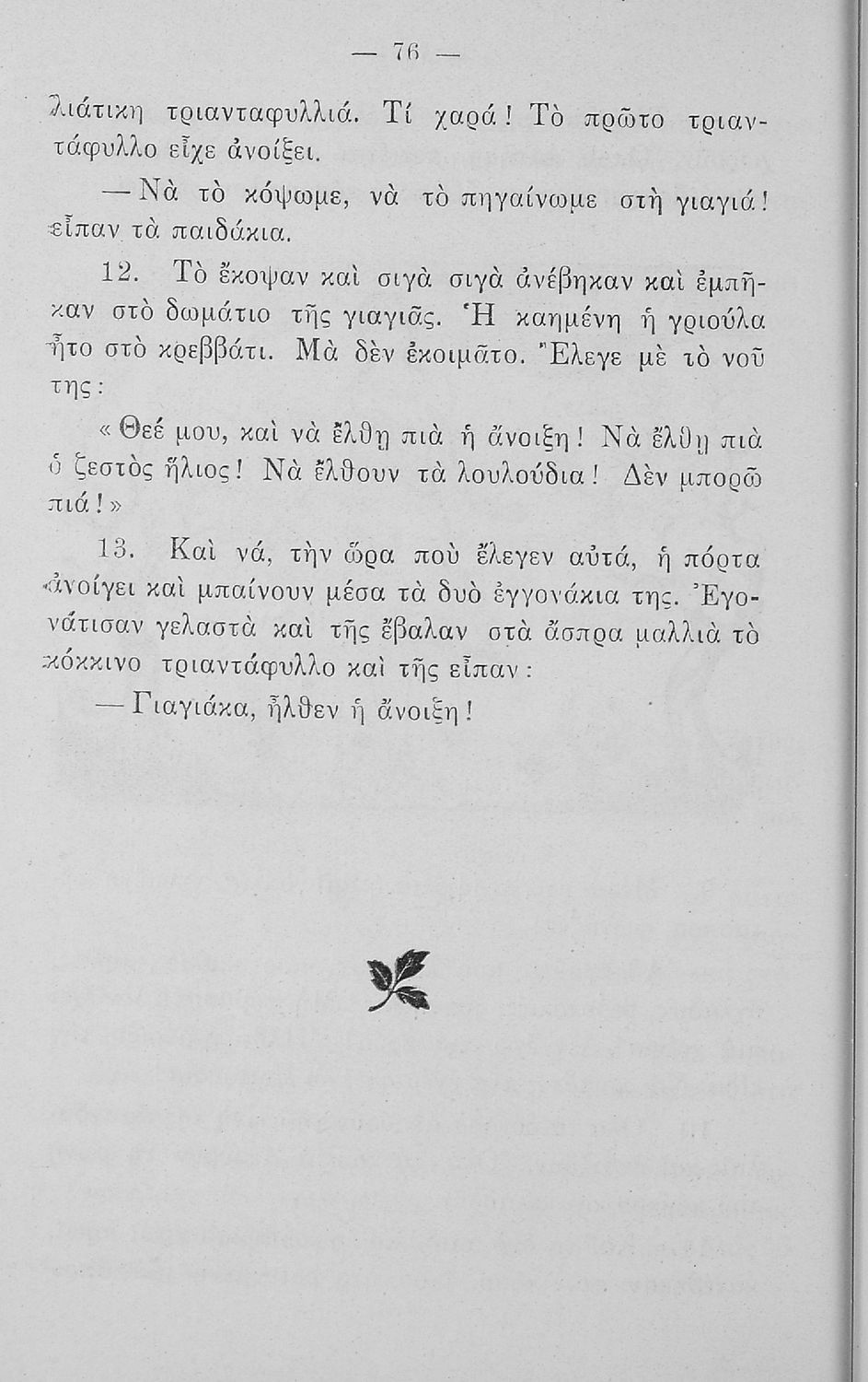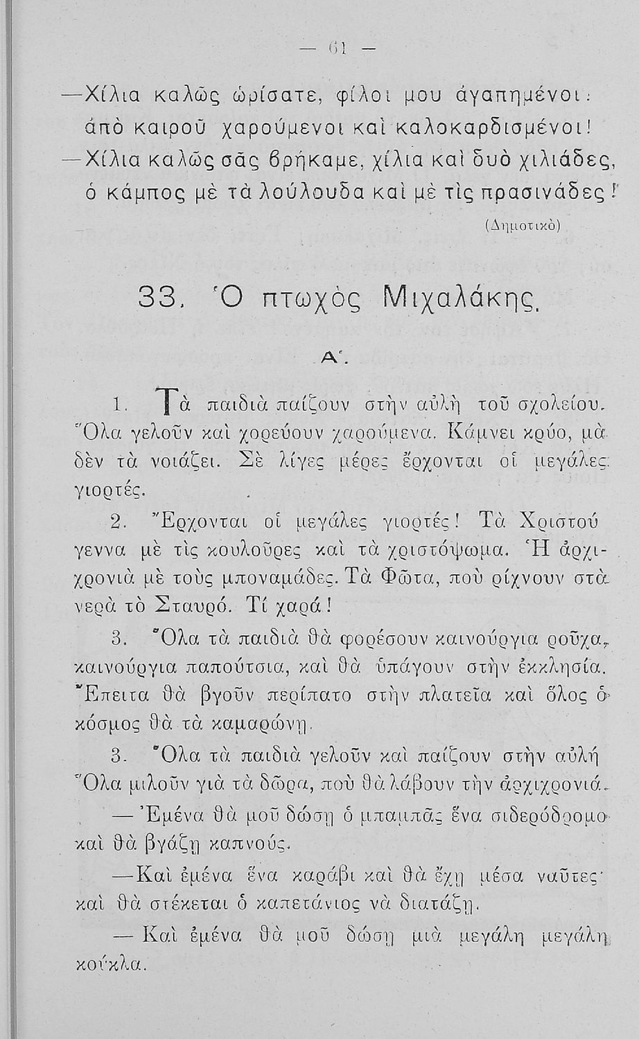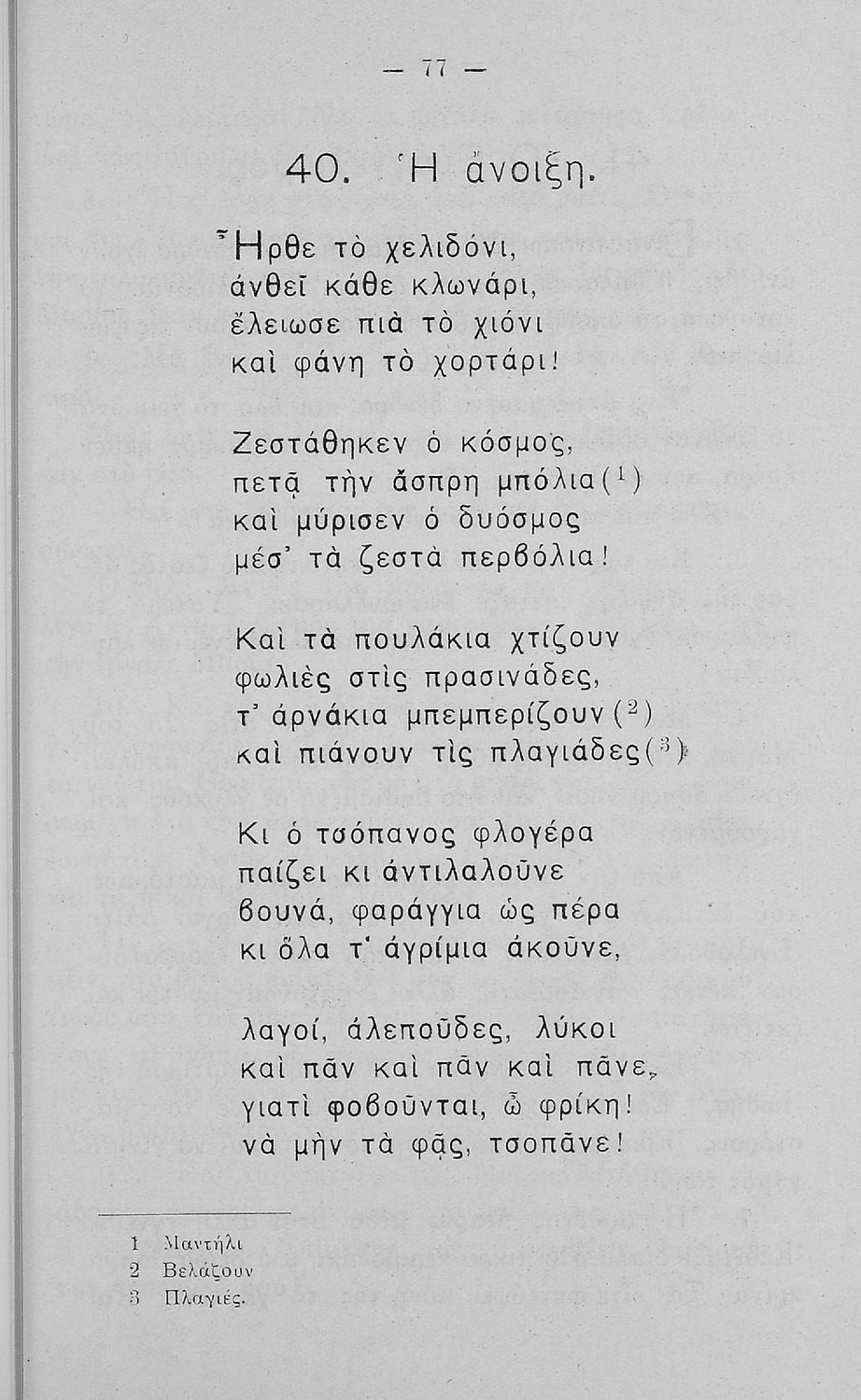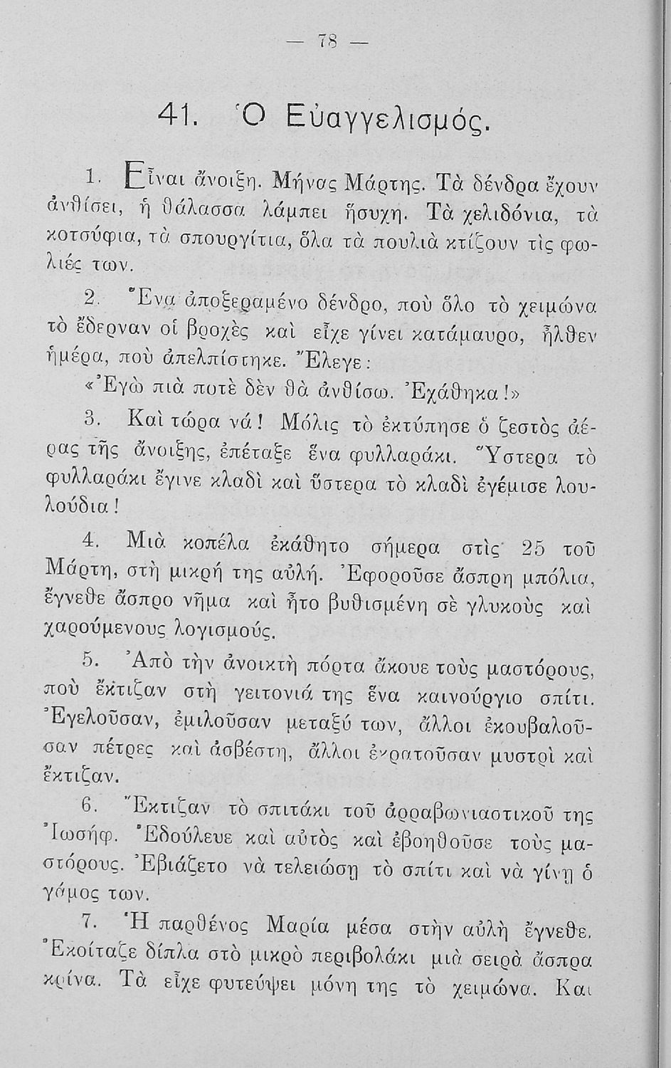 Αναγνωστικό Γ' Δημοτικού που περιέχει πεζά και ποιήματα ηθικοπλαστικού περιεχομένου εμπνευσμένα από τη θρησκευτική, εθνική, κοινωνική και ατομική ζωή, την ελληνική φύση, ιστορία και μυθολογία και την υγιεινή.