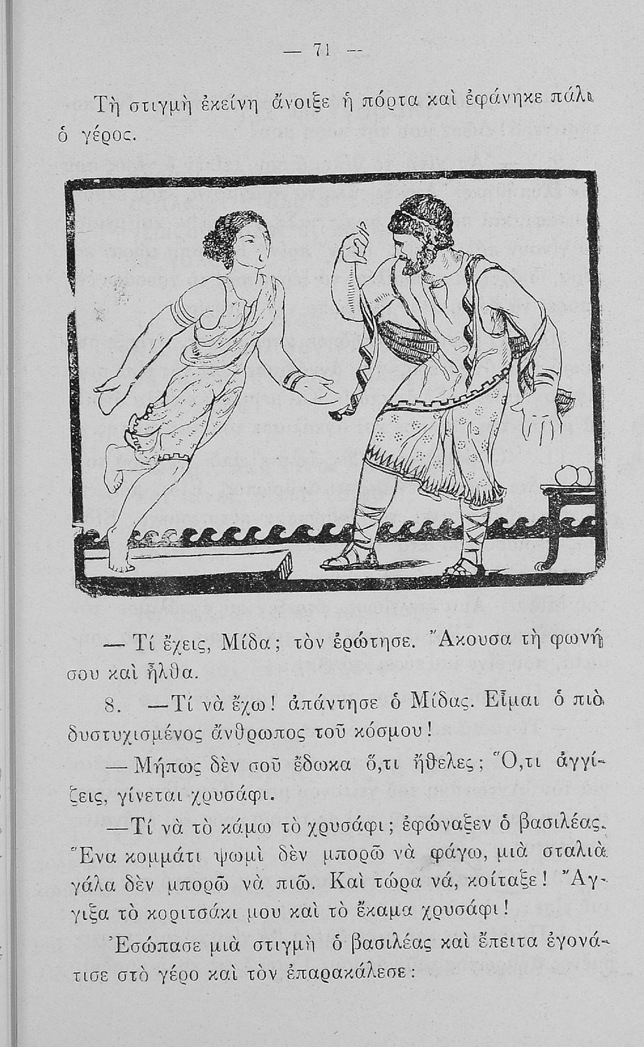 Σχολικό εγχειρίδιο Αρχαίων Ελληνικών για τις Β΄ και Γ΄ Γυμνασίου που περιέχει κείμενα βασισμένα στην αρχαία ελληνική ιστορία και μυθολογία και γραμματικές, συντακτικές και ετυμολογικές παρατηρήσεις.