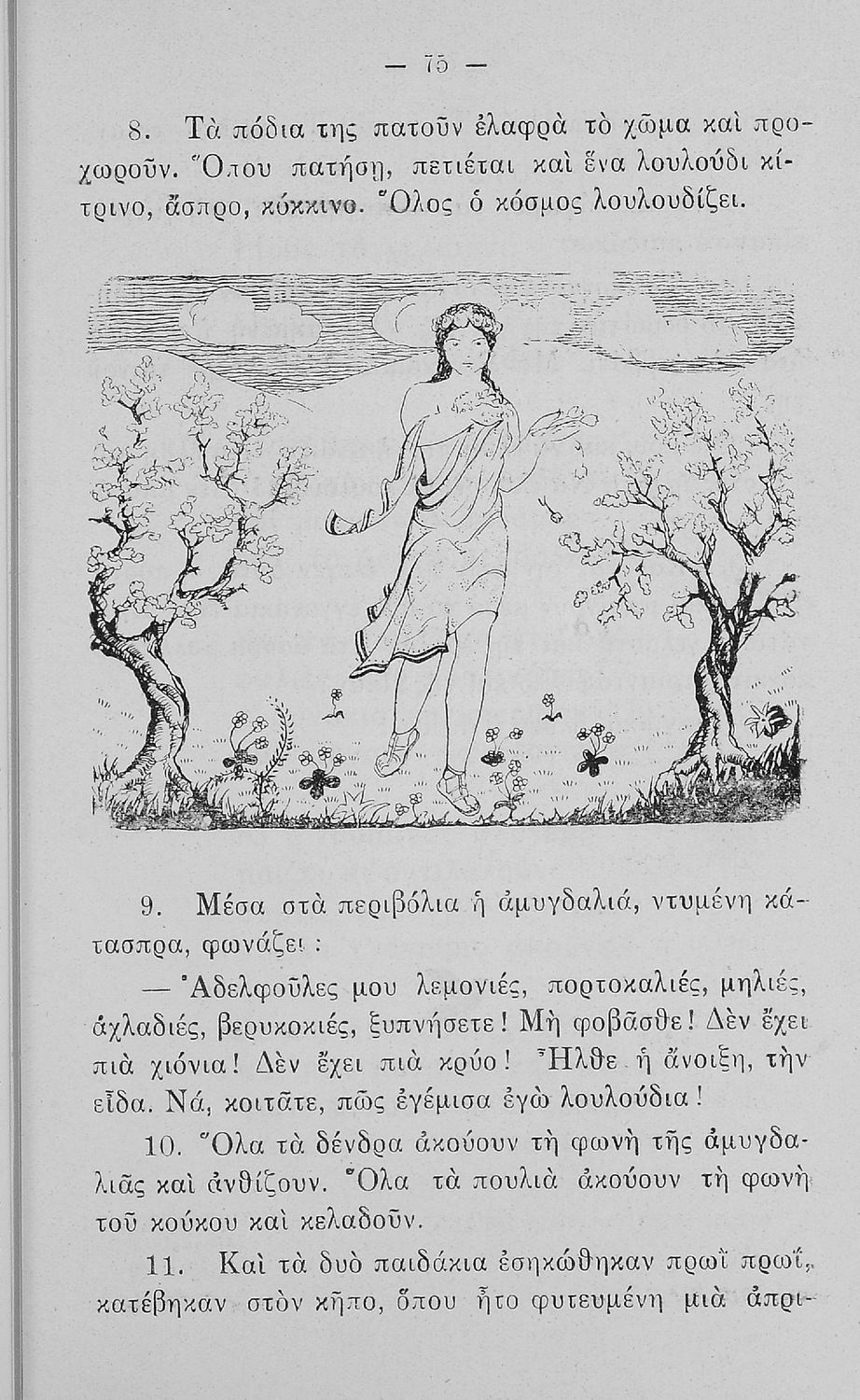 Αναγνωστικό Γ' Δημοτικού που περιέχει πεζά και ποιήματα ηθικοπλαστικού περιεχομένου εμπνευσμένα από την ελληνική φύση, την αρχαία ελληνική μυθολογία και ιστορία και τη θρησκευτική παράδοση,