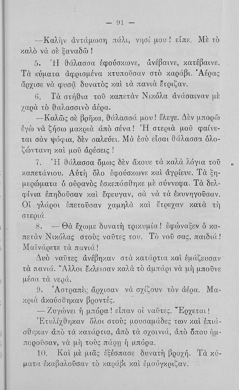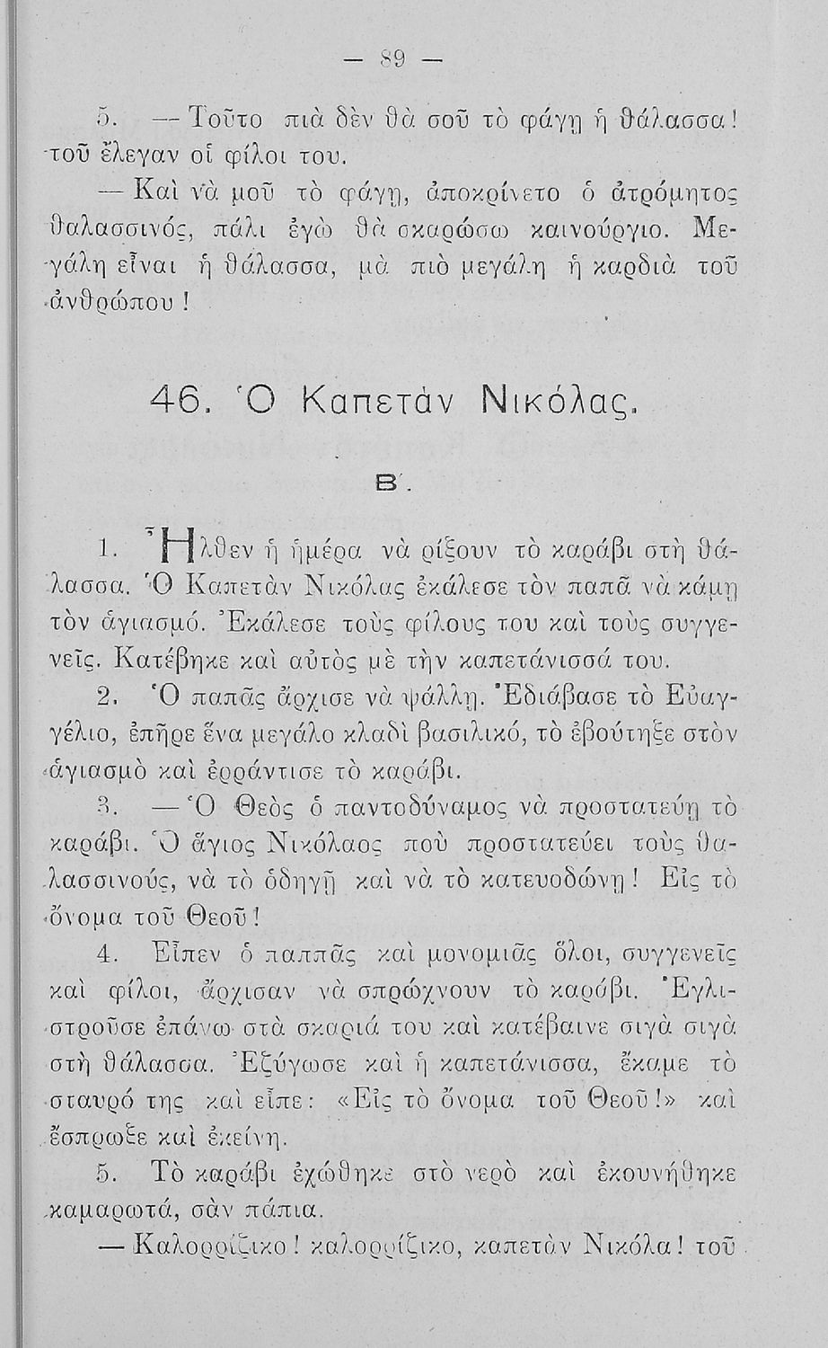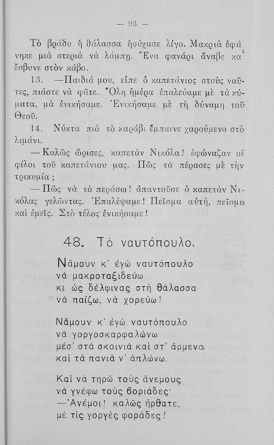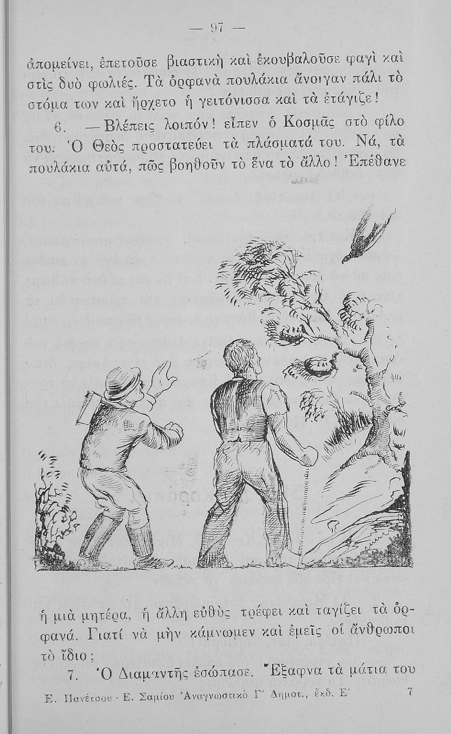 Βαθμίδα εκπαίδευσης: Πρωτοβάθμια Τάξη: Γ' Δημοτικού Μάθημα: Νέα Ελληνικά Γλώσσα: Καθαρεύουσα Παρουσίαση περιεχομένου: Αναγνωστικό Γ΄ Δημοτικού που περιλαμβάνει πεζά και ποιήματα εμπνευσμένα από την οικογενειακή ζωή, την ελληνική ύπαιθρο, τις θρησκευτικές παραδόσεις, τις 4 εποχές, τα επαγγέλματα και τις συνήθειες των Ελλήνων, την χλωρίδα και πανίδα της Ελλάδας, και την ελληνική μυθολογία. |