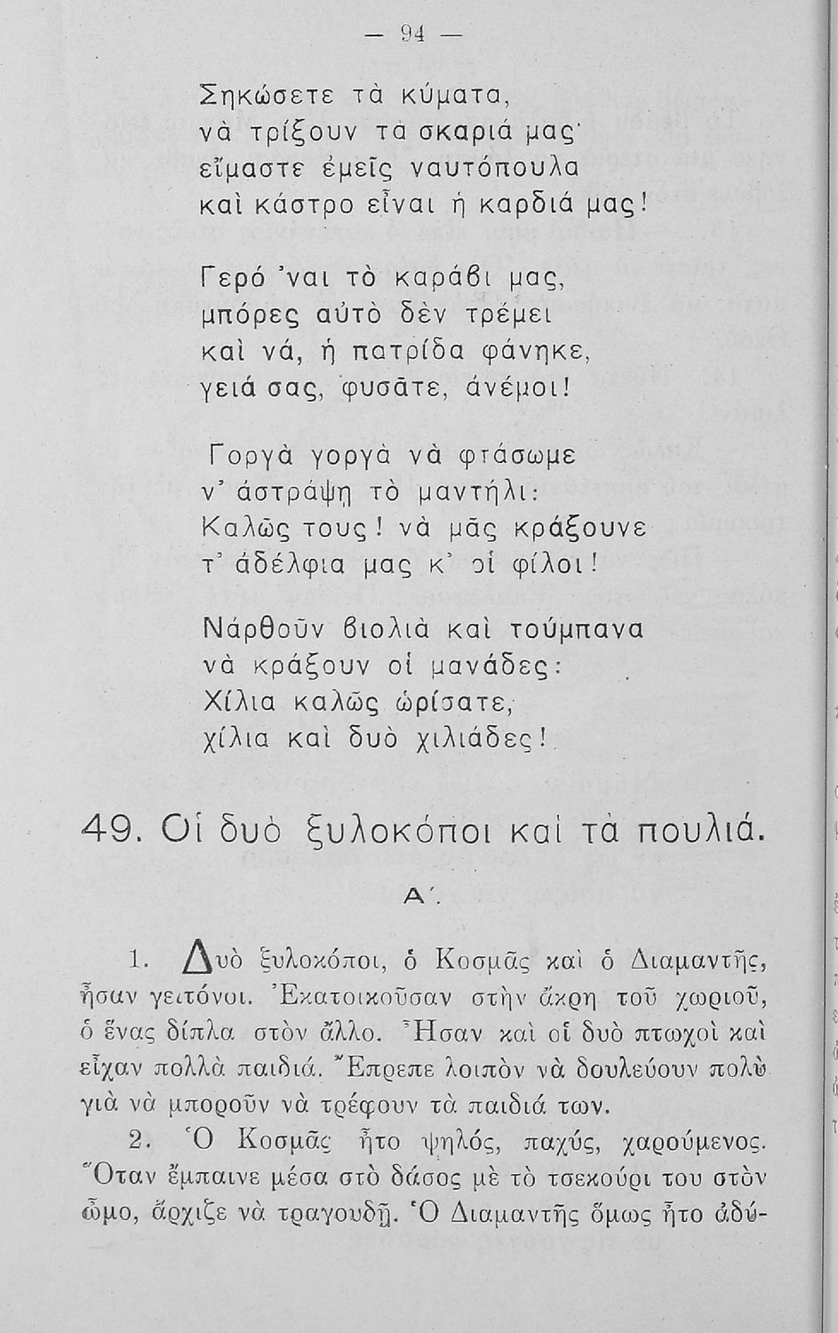 520 ## _aΑναγνωστικό Γ΄ Δημοτικού που περιλαμβάνει πεζά και ποιήματα εμπνευσμένα από την οικογενειακή ζωή, την ελληνική ύπαιθρο, τις θρησκευτικές παραδόσεις, τις 4 εποχές, τα επαγγέλματα και τις συνήθειες των Ελλήνων, την χλωρίδα και πανίδα της Ελλάδας, και την ελληνική μυθολογία.