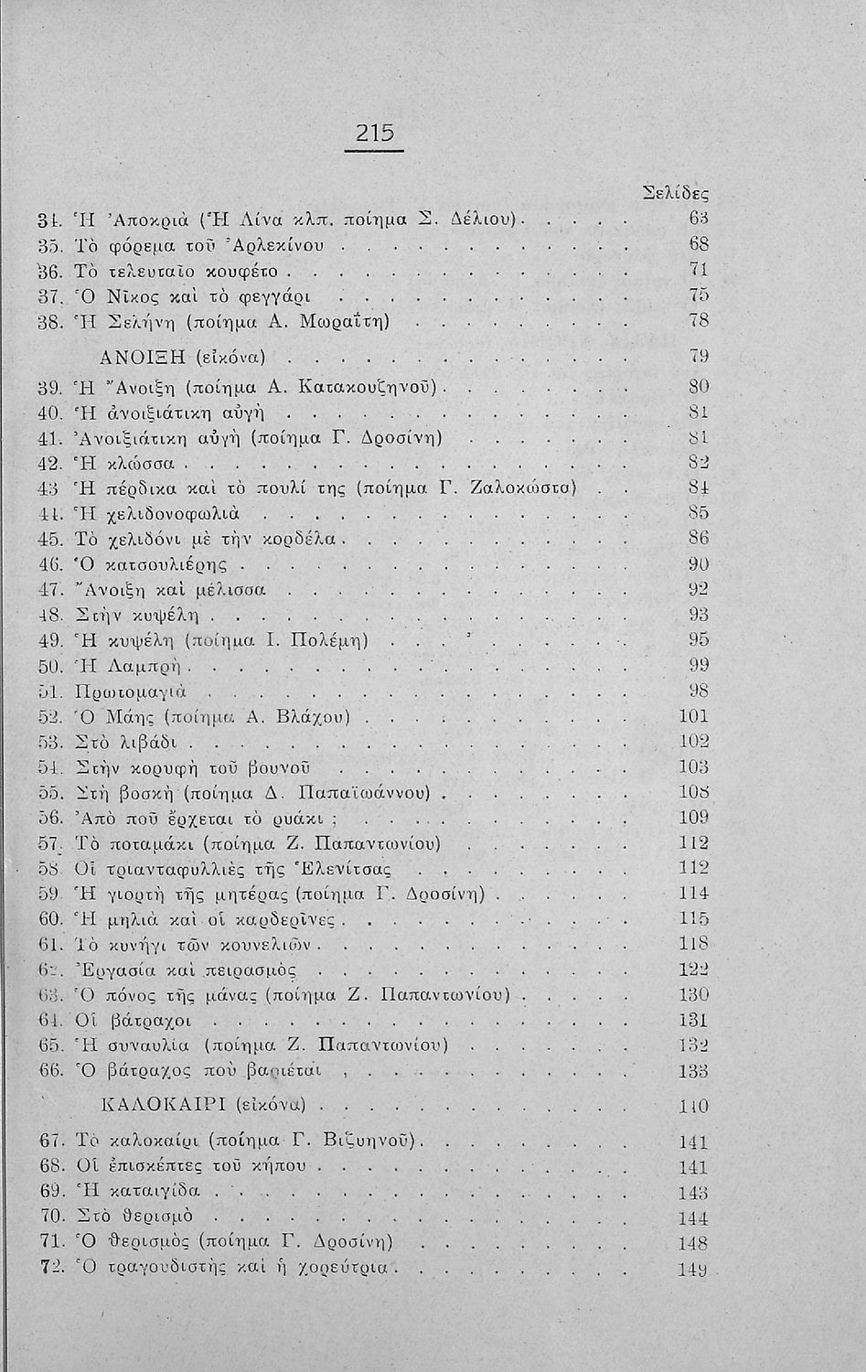 Σχολικό εγχειρίδιο Γλώσσας για τη Γ' Δημοτικού. Προοριζόταν για αναγνωστικό των μαθητών της Γ' Δημοτικού. Στο κείμενο υπάρχουν αριθμοί σε παρενθέσεις που παραπέμπουν σε ποιήματα και δημοτικά τραγούδια που ...