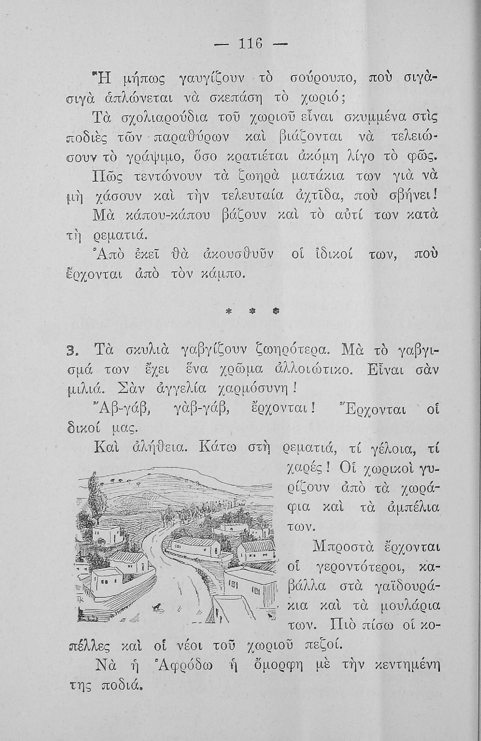 Αναγνωστικό Γ΄ Δημοτικού που περιλαμβάνει ποιήματα και πεζά με θέματα όπως η καλή και κακή συναναστροφή, η φρόνηση, η οκνηρία, η φιλανθρωπία και η πίστη στο Θεό