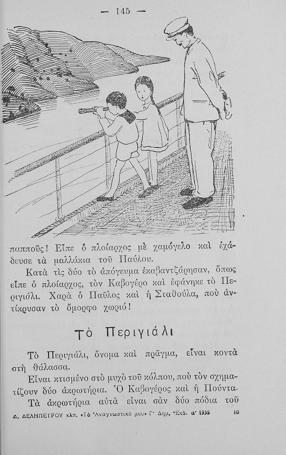 Αναγνωστικό για τους μαθητές της Γ' Δημοτικού. Περιέχει προσευχές, κείμενα με θέματα από τη φύση και την ελληνική μυθολογία.